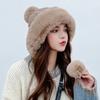 Gorro de lana para mujer, con forro polar, cálido y a la moda, con bola de pelo, bonito y elegante, para viajes al aire libre, para otoño e invierno