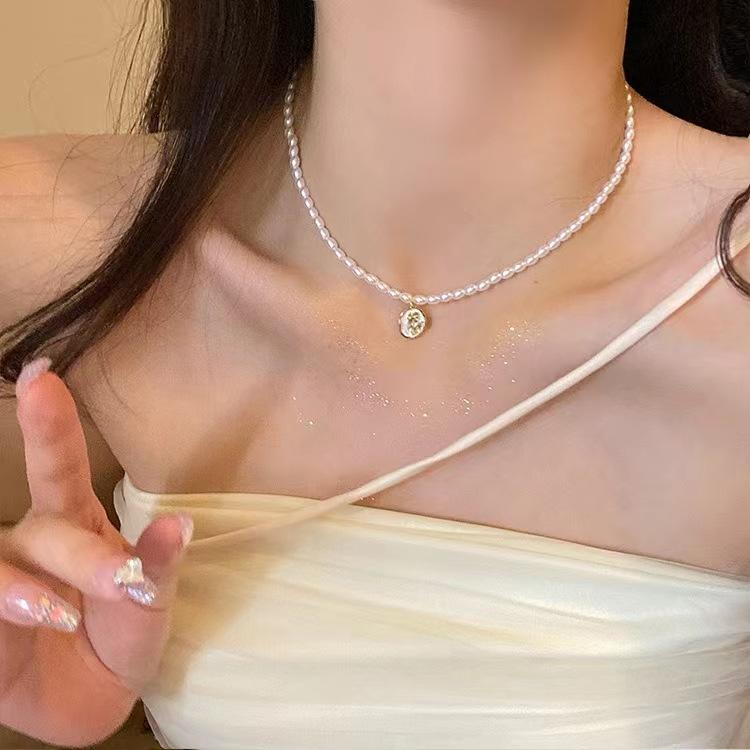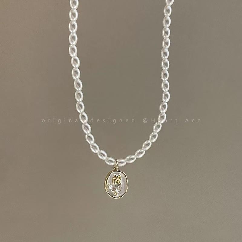 Collar de perlas de imitación estilo coreano, estilo vintage, estilo francés, ligero, de lujo, con cadena de clavícula y perlas, collar de rosas.