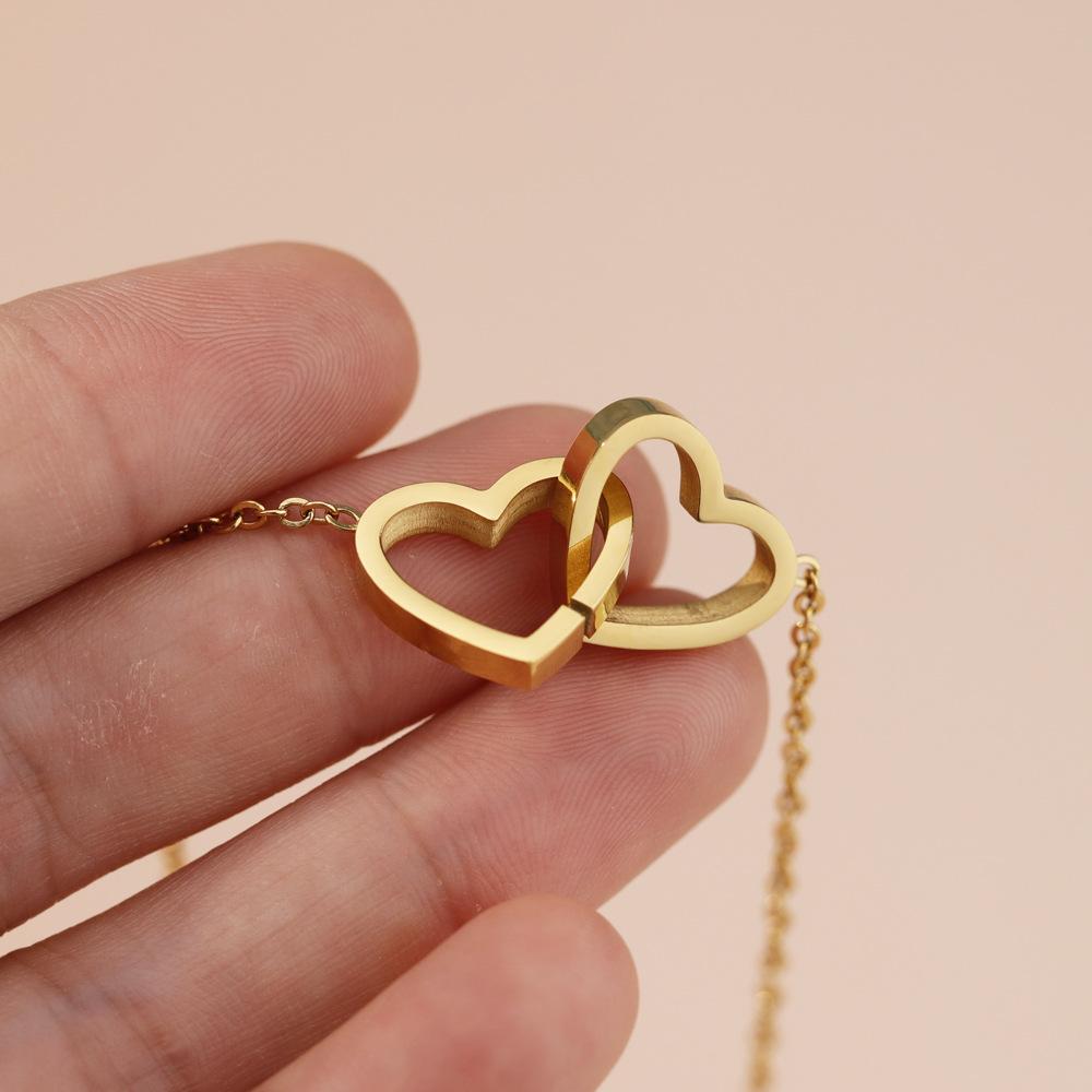 Steel color double love engraved necklace (remark engraving content when placing order), Golden double love en...