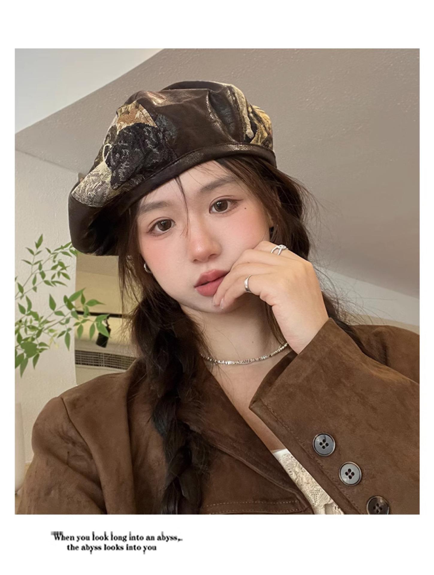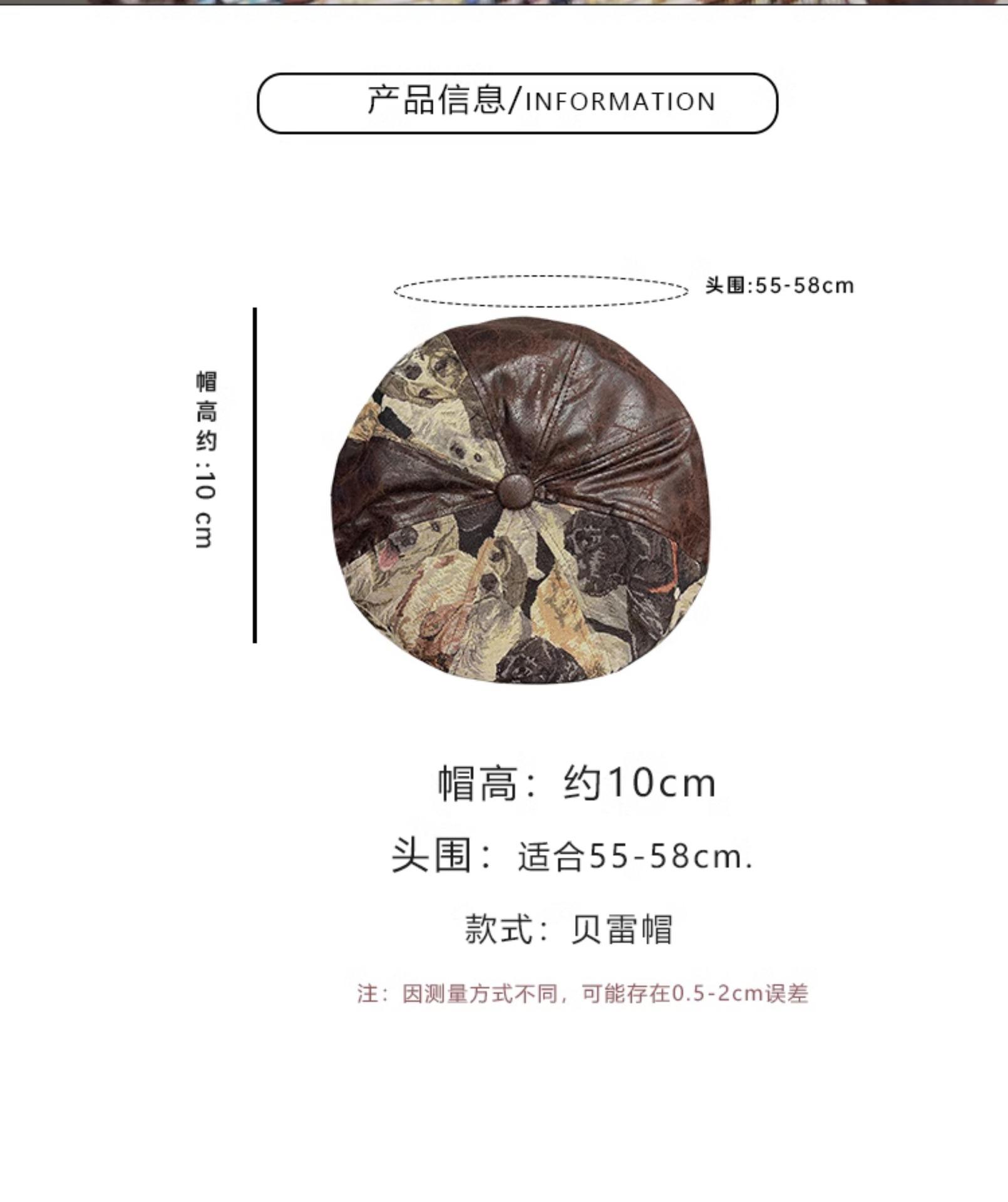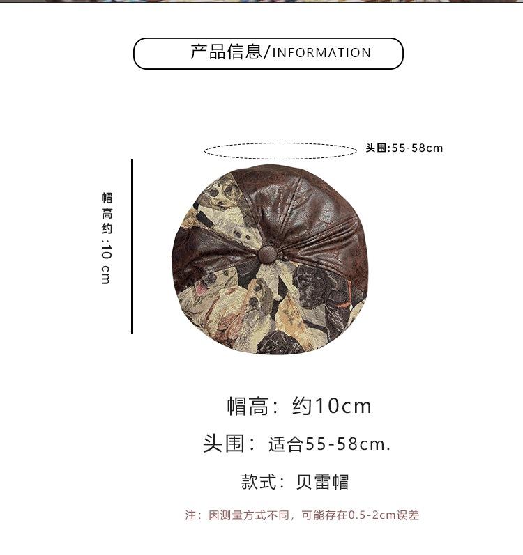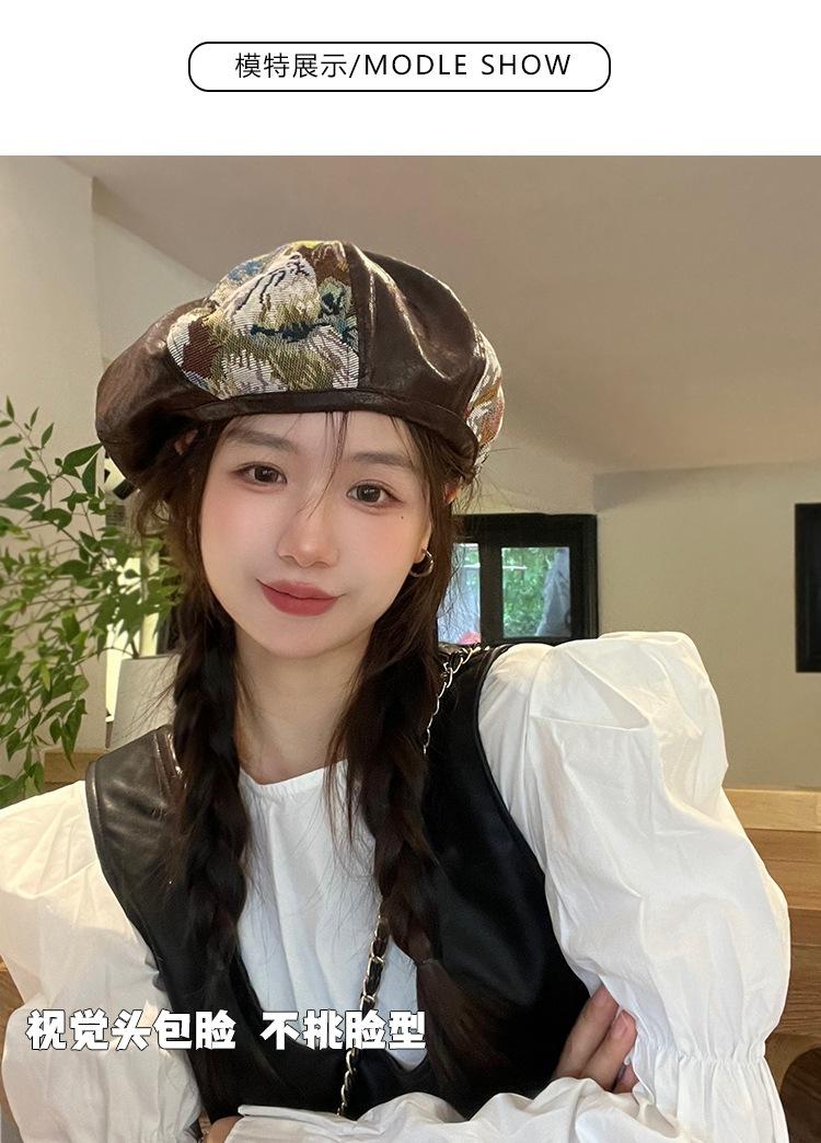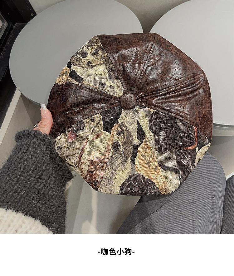 Boina de diseñador nicho para cachorro con costuras de cuero PU, moderna, artística, retro, británica, sombrero de pintor nicho para niños