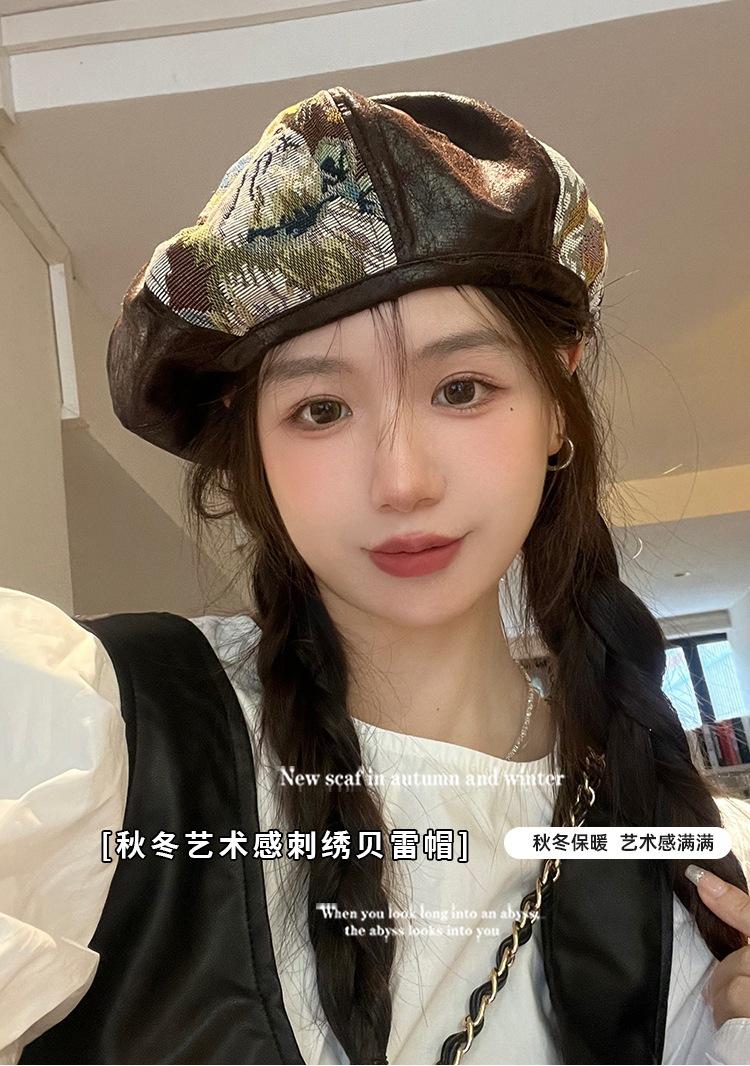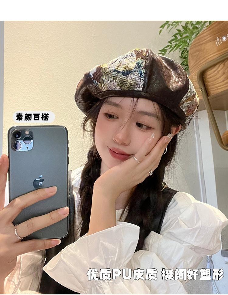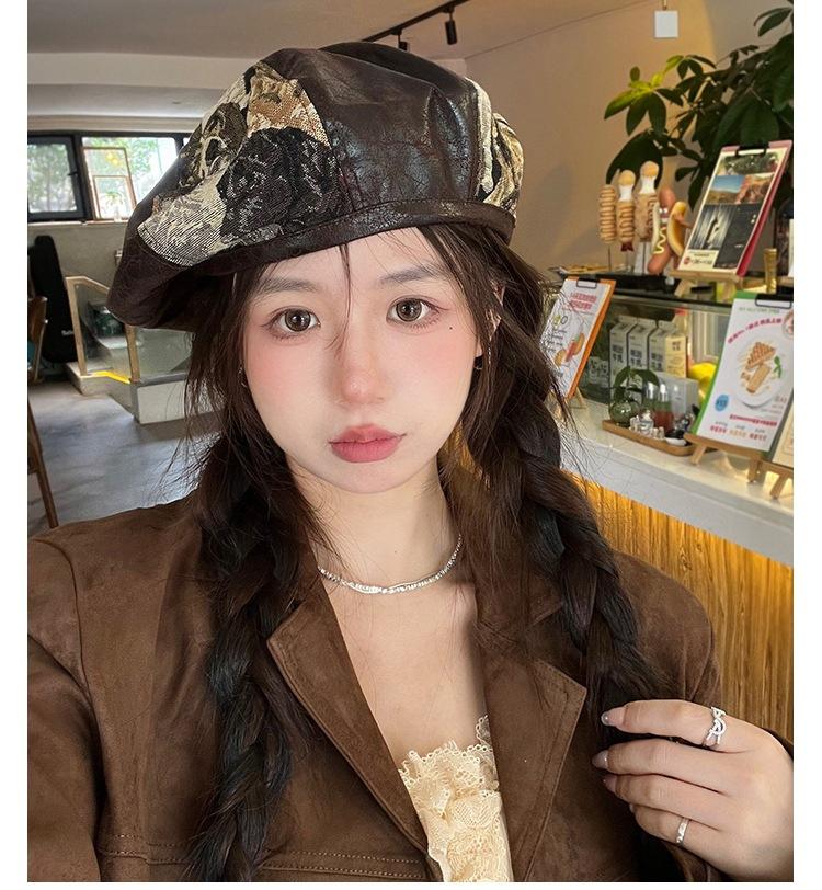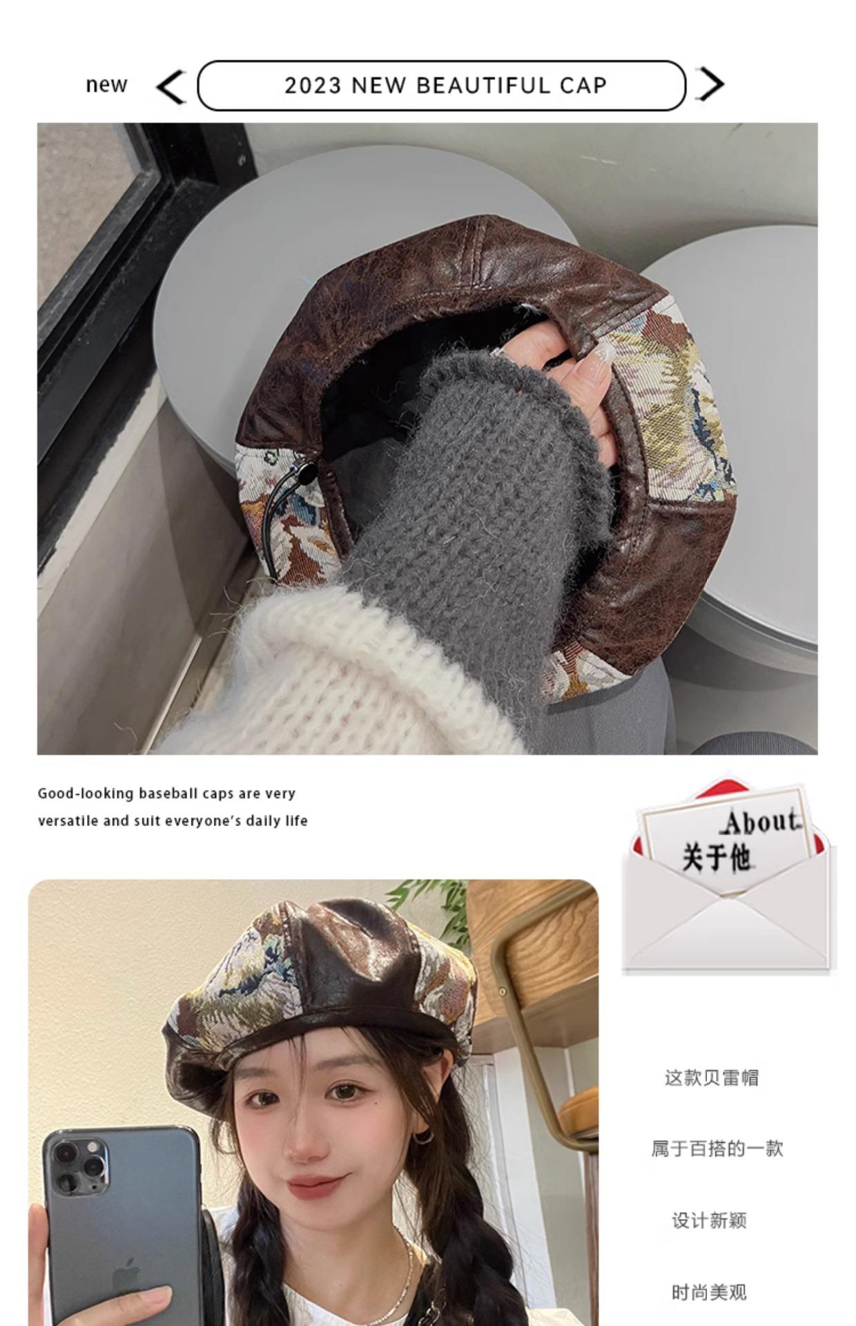 Boina de diseñador nicho para cachorro con costuras de cuero PU, moderna, artística, retro, británica, sombrero de pintor nicho para niños