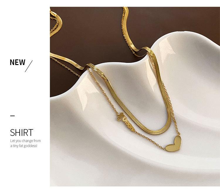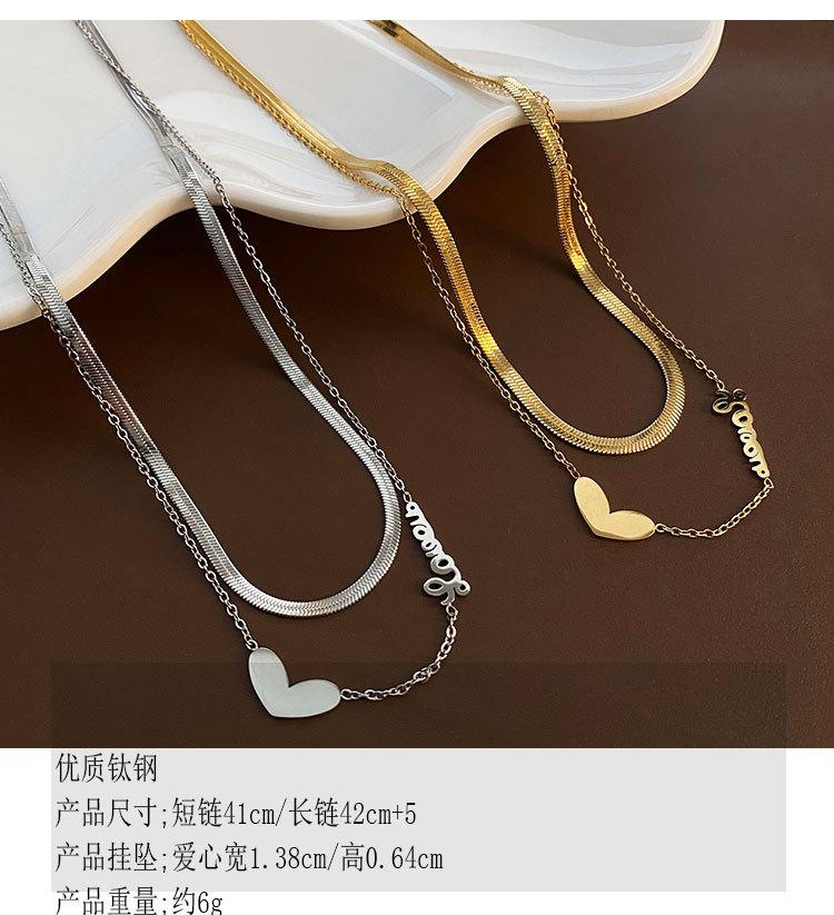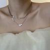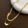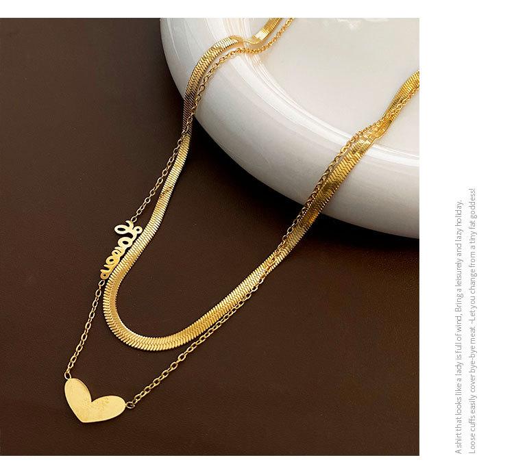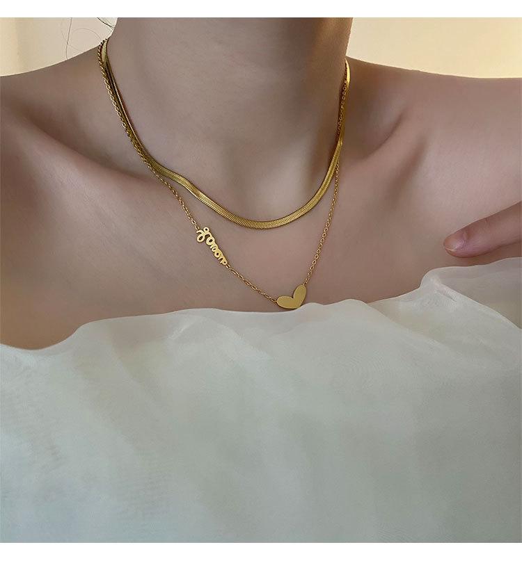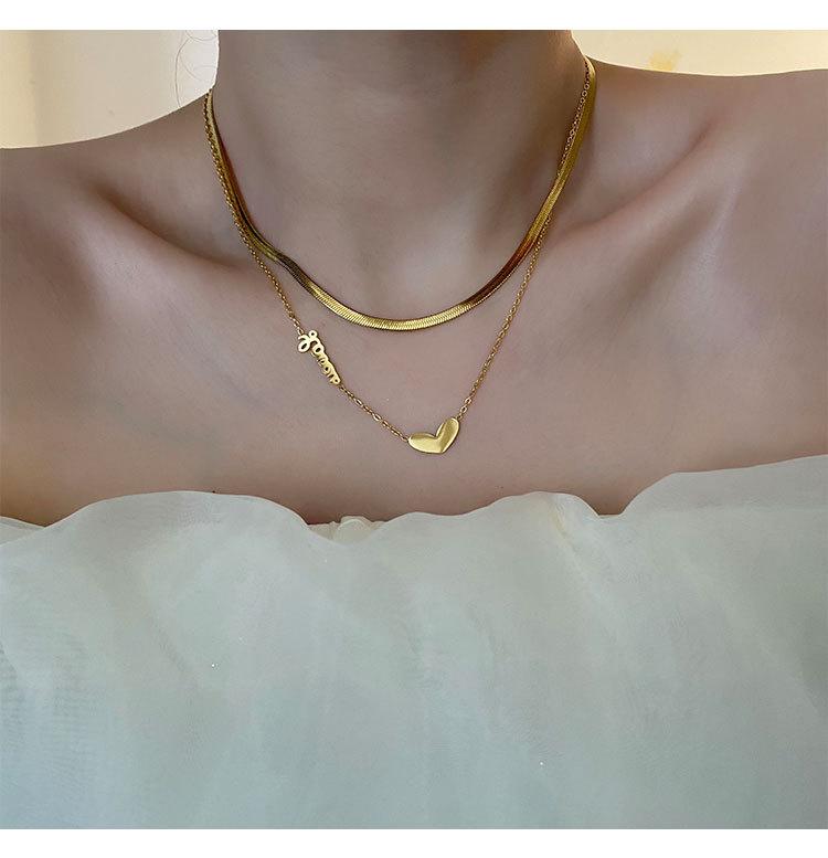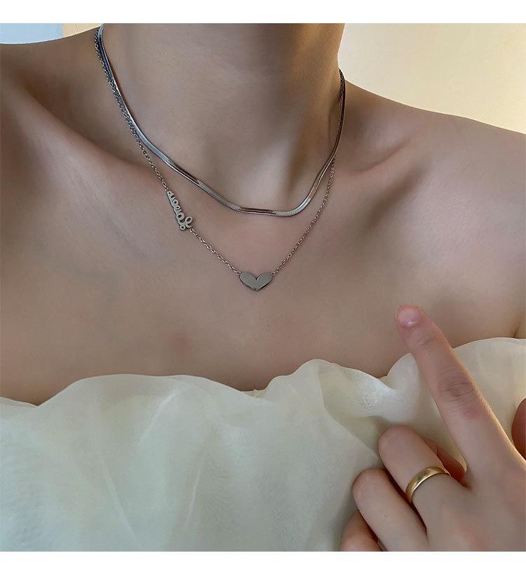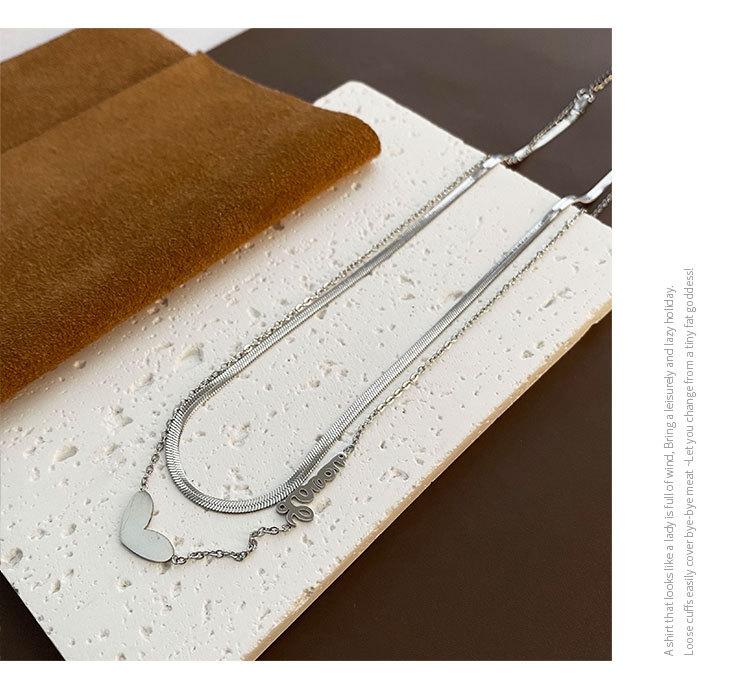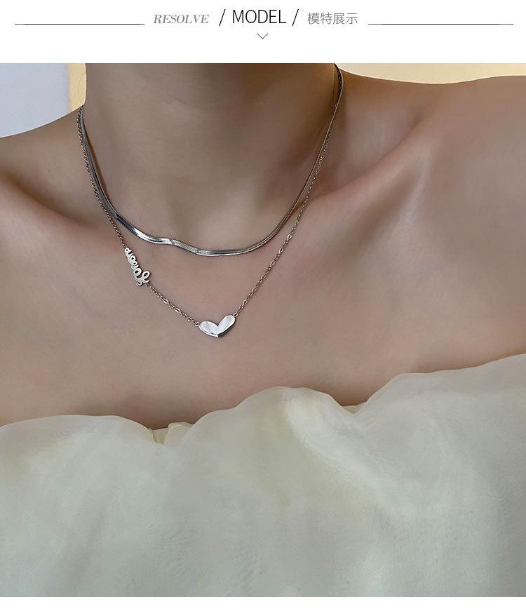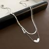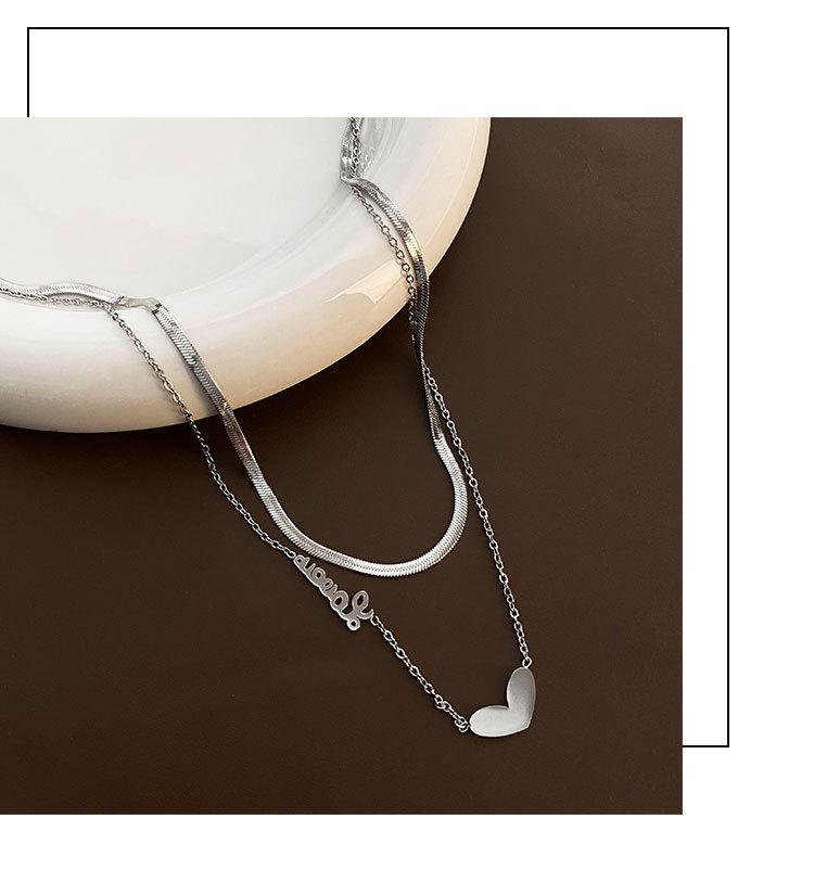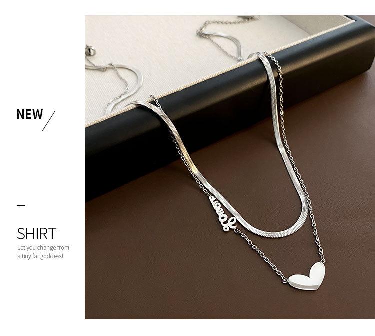 Collar de amor apilado de doble capa, de acero de titanio, sin color, para mujer, con diseño de nicho, estilo moderno de celebridades de Internet, cadena de clavícula de estilo frío.
