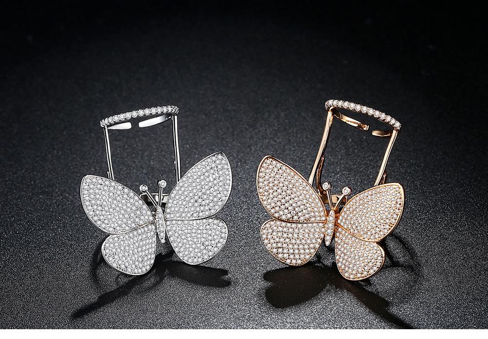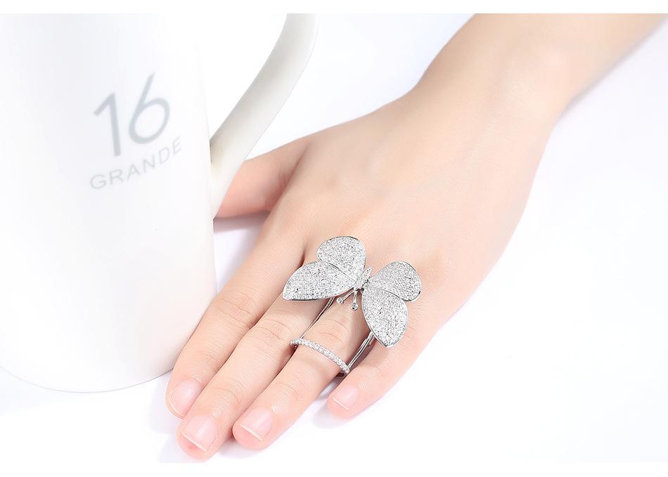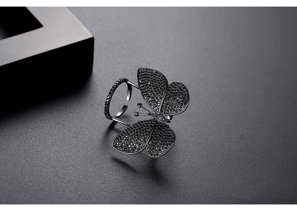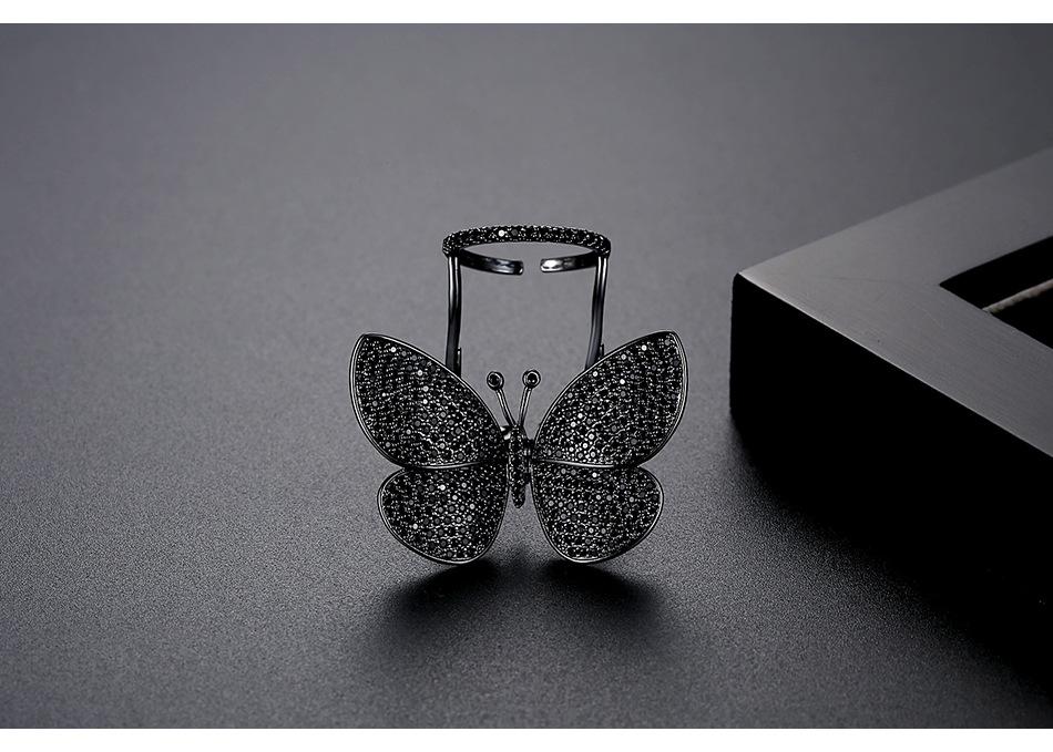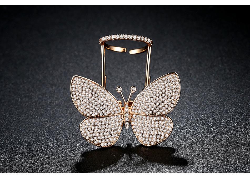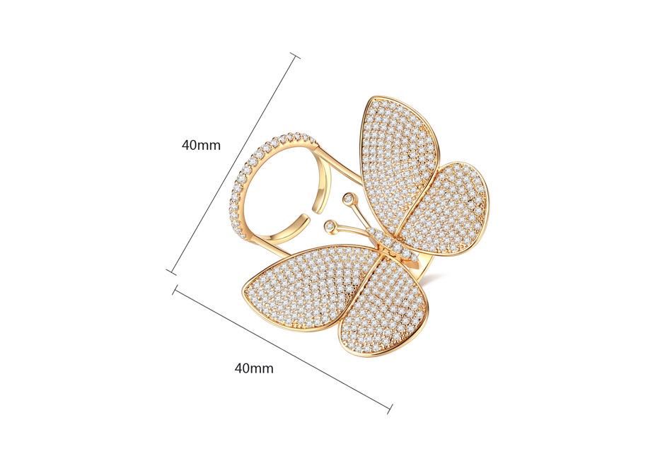 Anillo de Mariposa de Circonita Microincrustada Jinse Exagerado Cobre Circonita AAA Europeo y Americano Mariposa Ajustable Anillo de Mujer