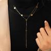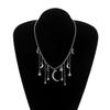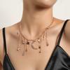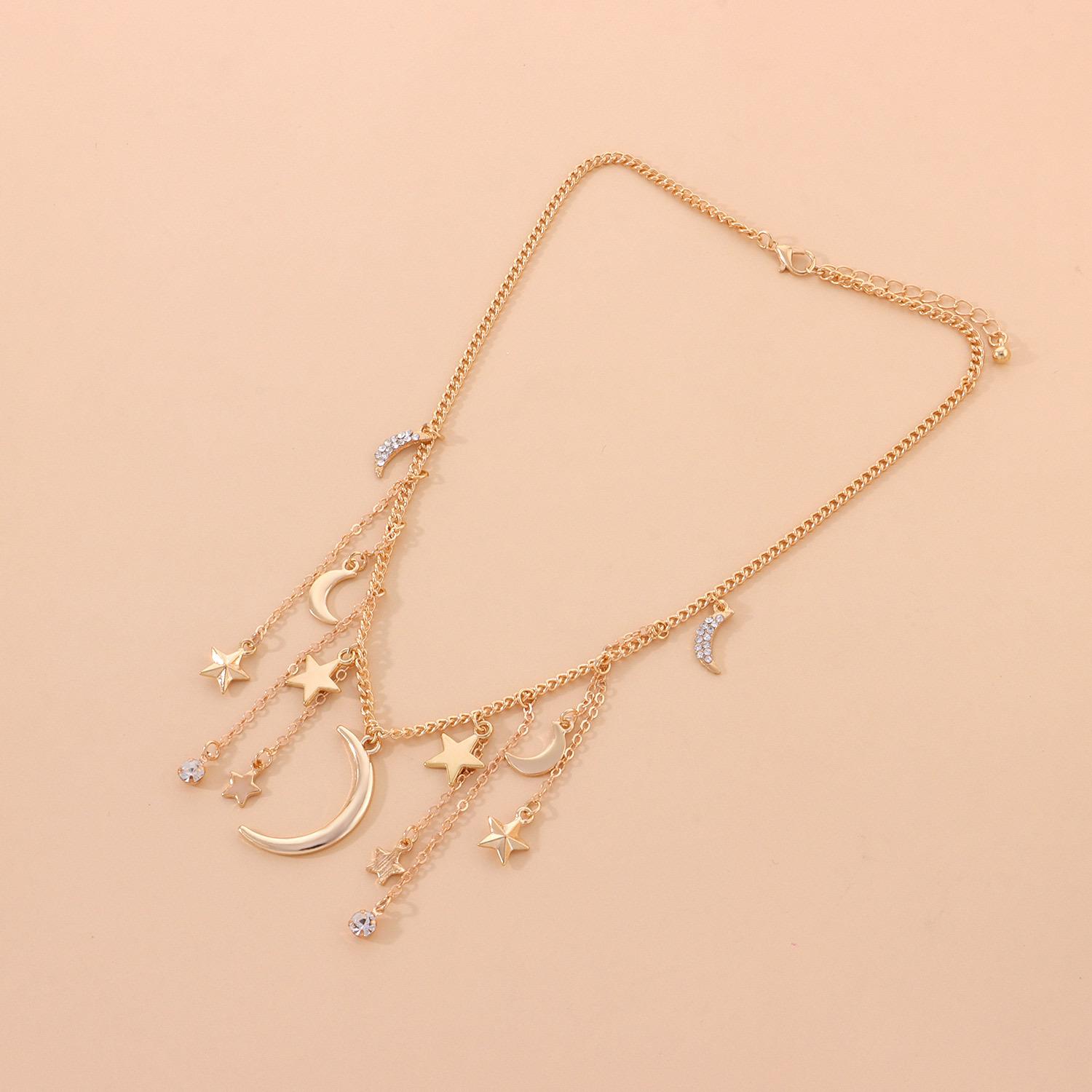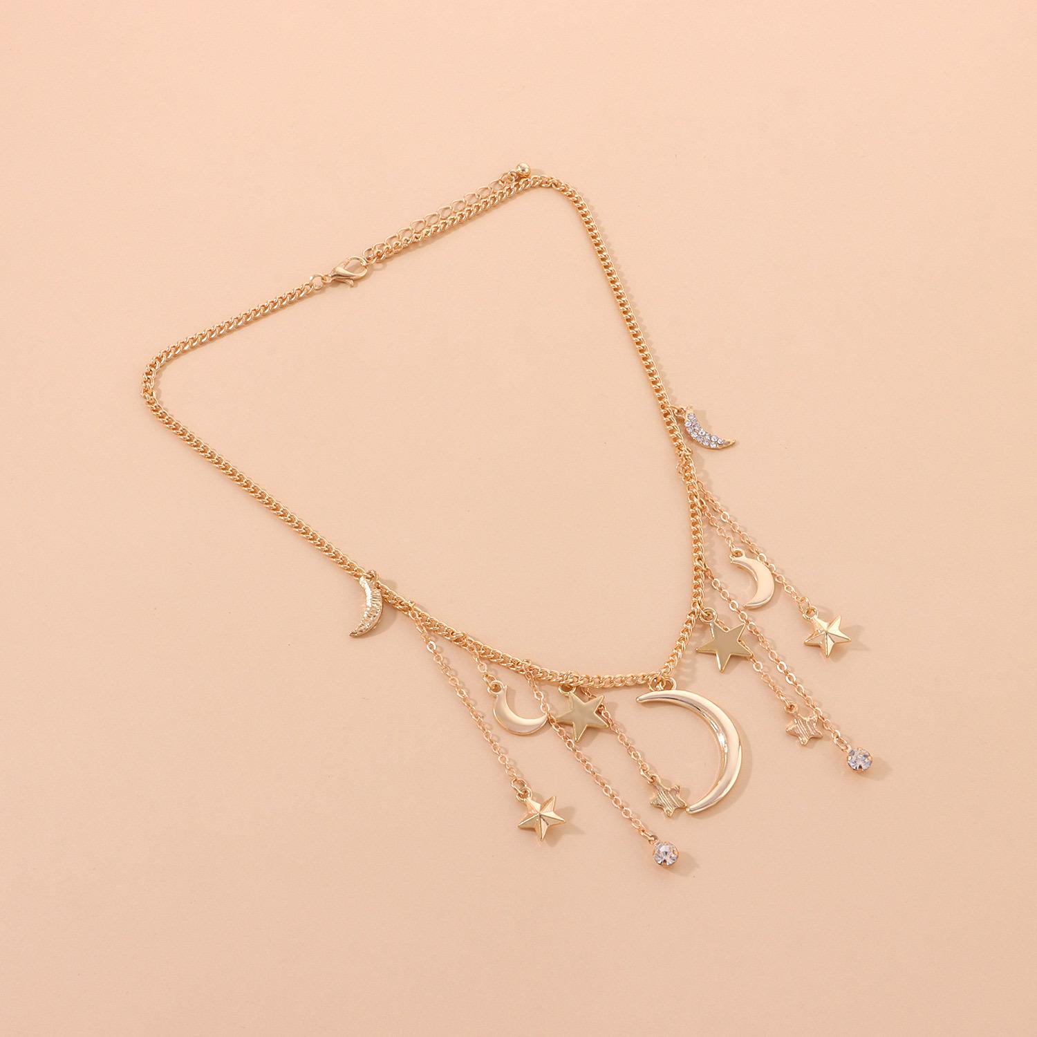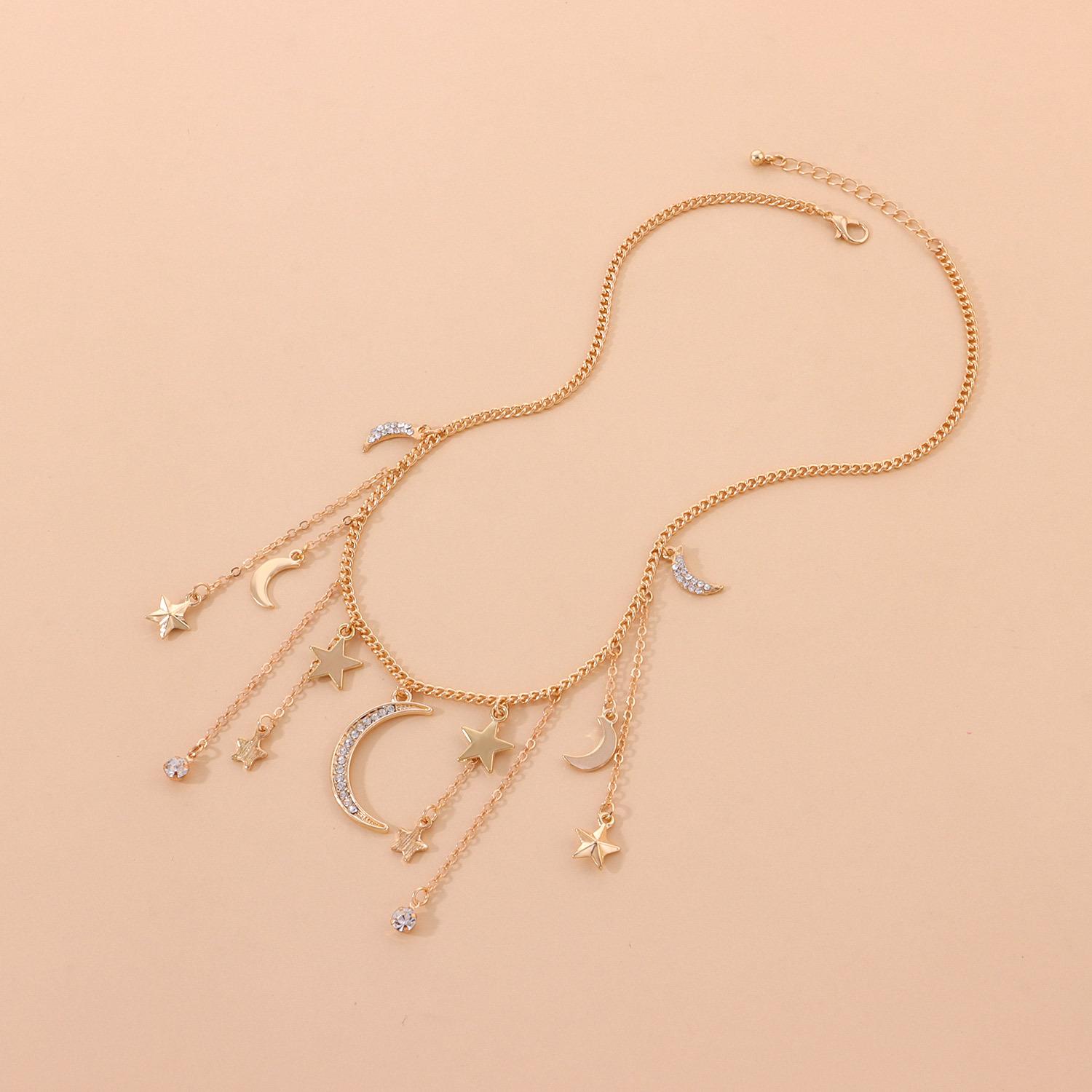 Collar con colgante de estrella de cinco puntas y media luna de diamantes para mujer, joyería transfronteriza europea y americana, collar corto con borlas de diamantes de imitación