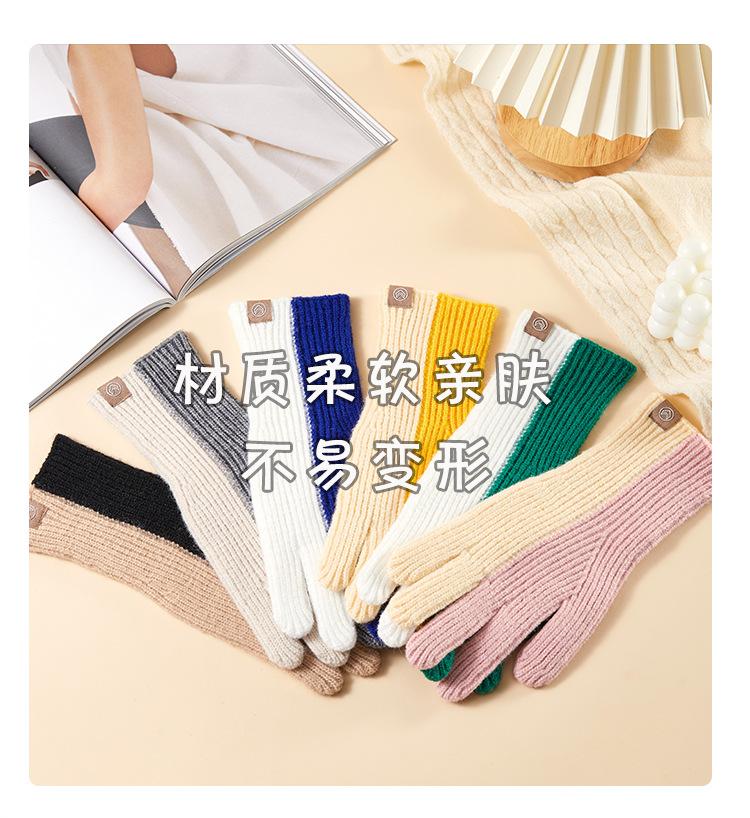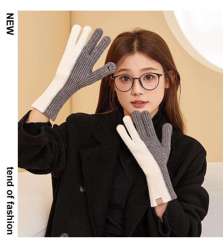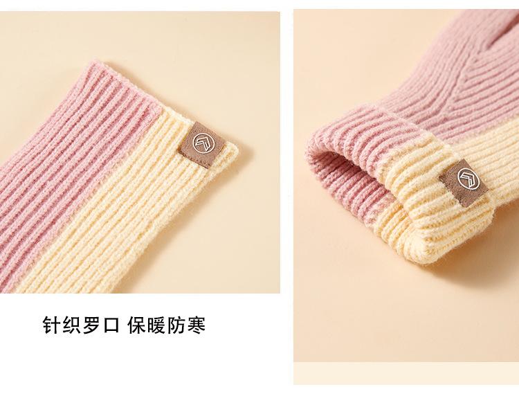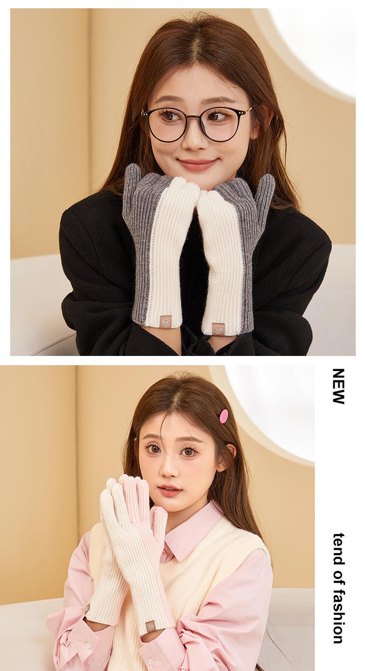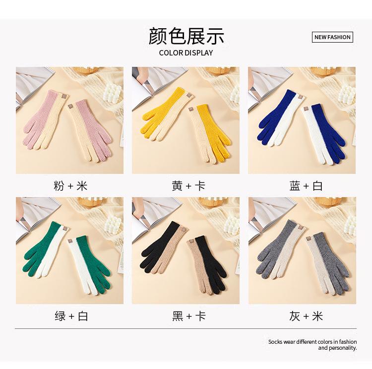 Guantes Cortos de Punto para Mujer Cálidos sin Dedos con Bloques de Color Otoño e Invierno 2025 a Prueba de Frío para Pantalla Táctil Venta al por Mayor