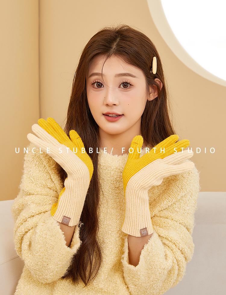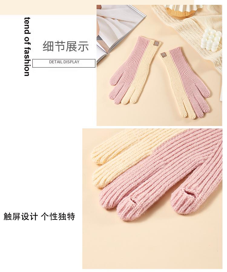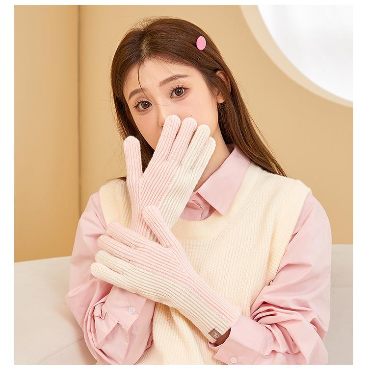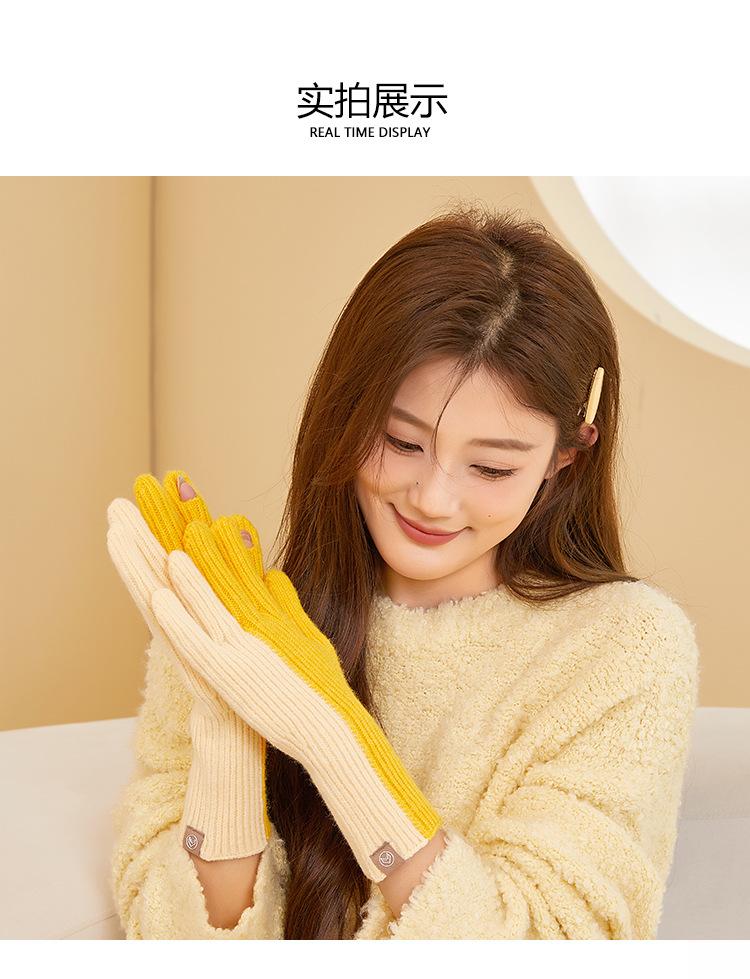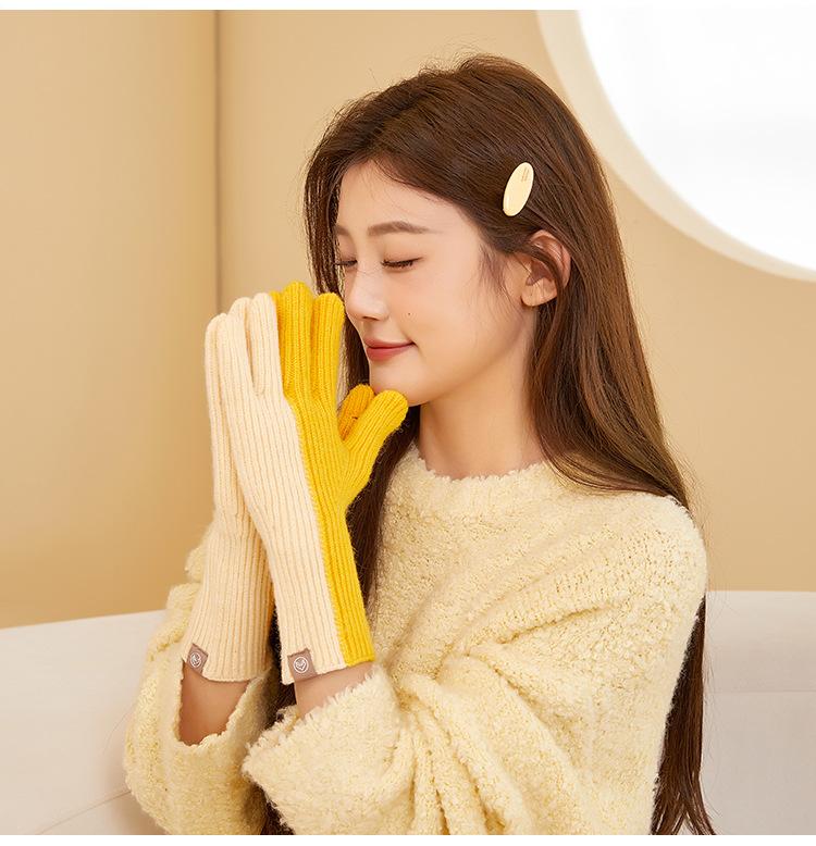 Guantes Cortos de Punto para Mujer Cálidos sin Dedos con Bloques de Color Otoño e Invierno 2025 a Prueba de Frío para Pantalla Táctil Venta al por Mayor