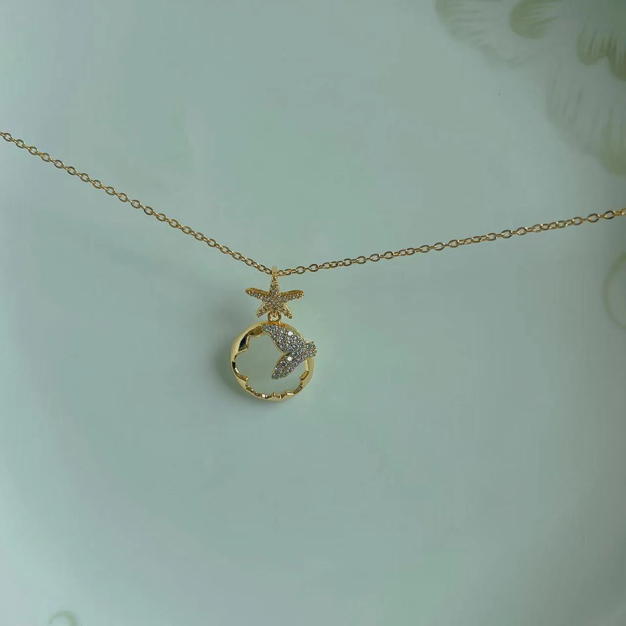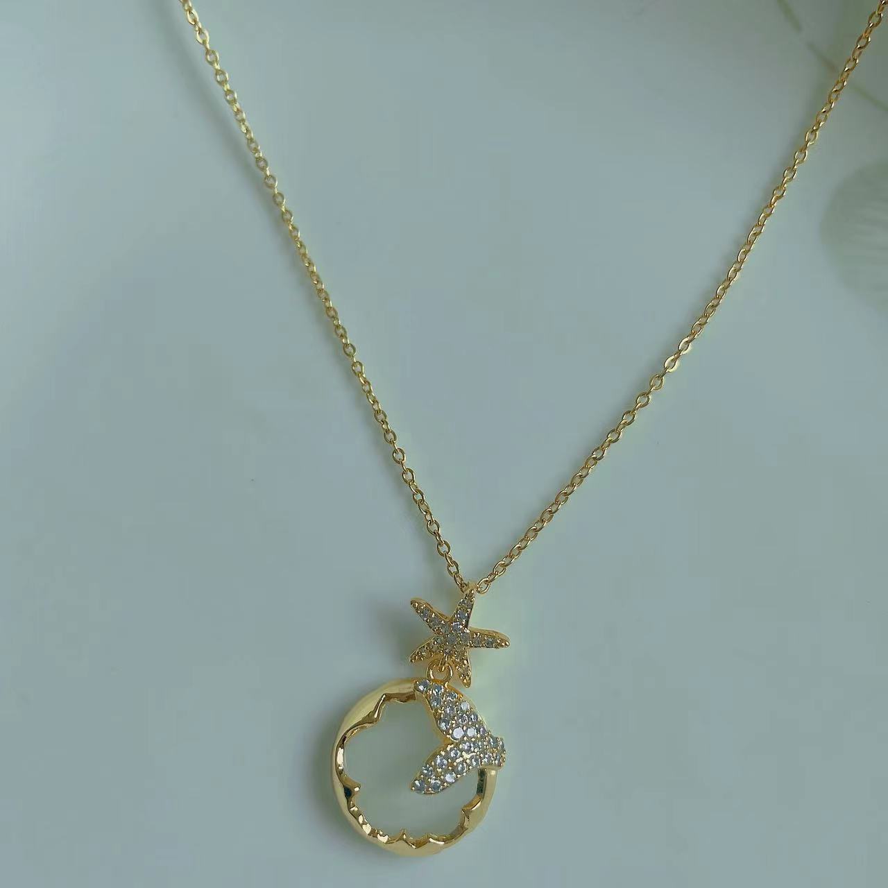 Collar de cola de pez con forma de estrella para mujer, cadena de clavícula de lujo, sencilla y ligera, de verano, con un diseño de nicho de alta calidad y un estilo temperamental.