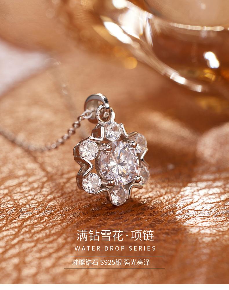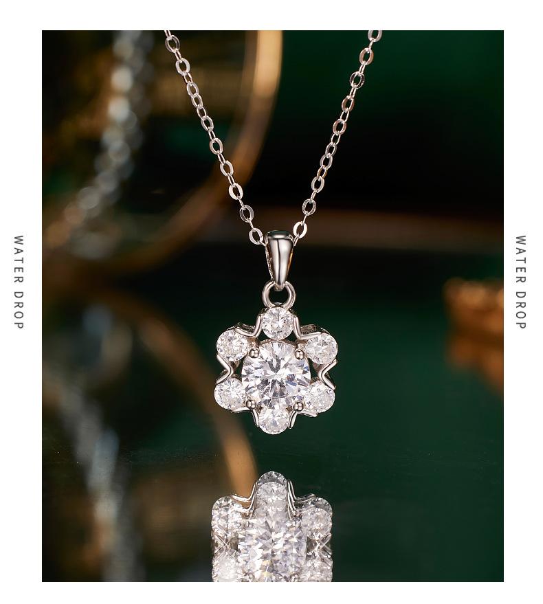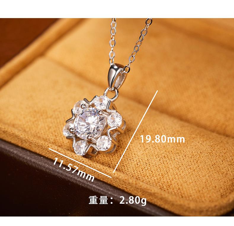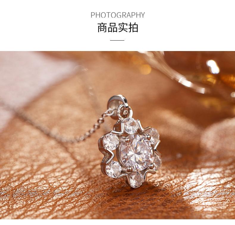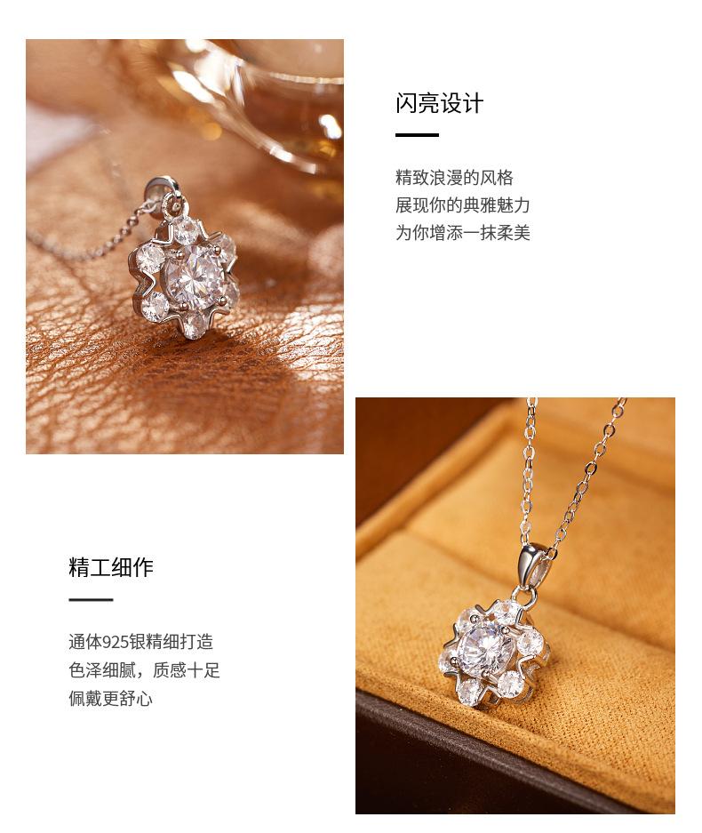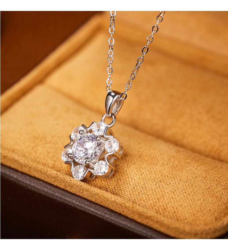 Collar de plata S925 cuadrado redondo con diamantes completos girasol copo de nieve elegante para mujer colgante versátil diseño de alta gama cadena para clavícula