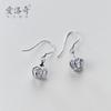 Pendientes elegantes retro con aguja de plata S925 y lazo de corazón para mujer, bonitos y dulces pendientes franceses de nicho.