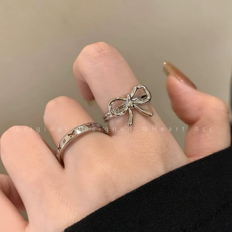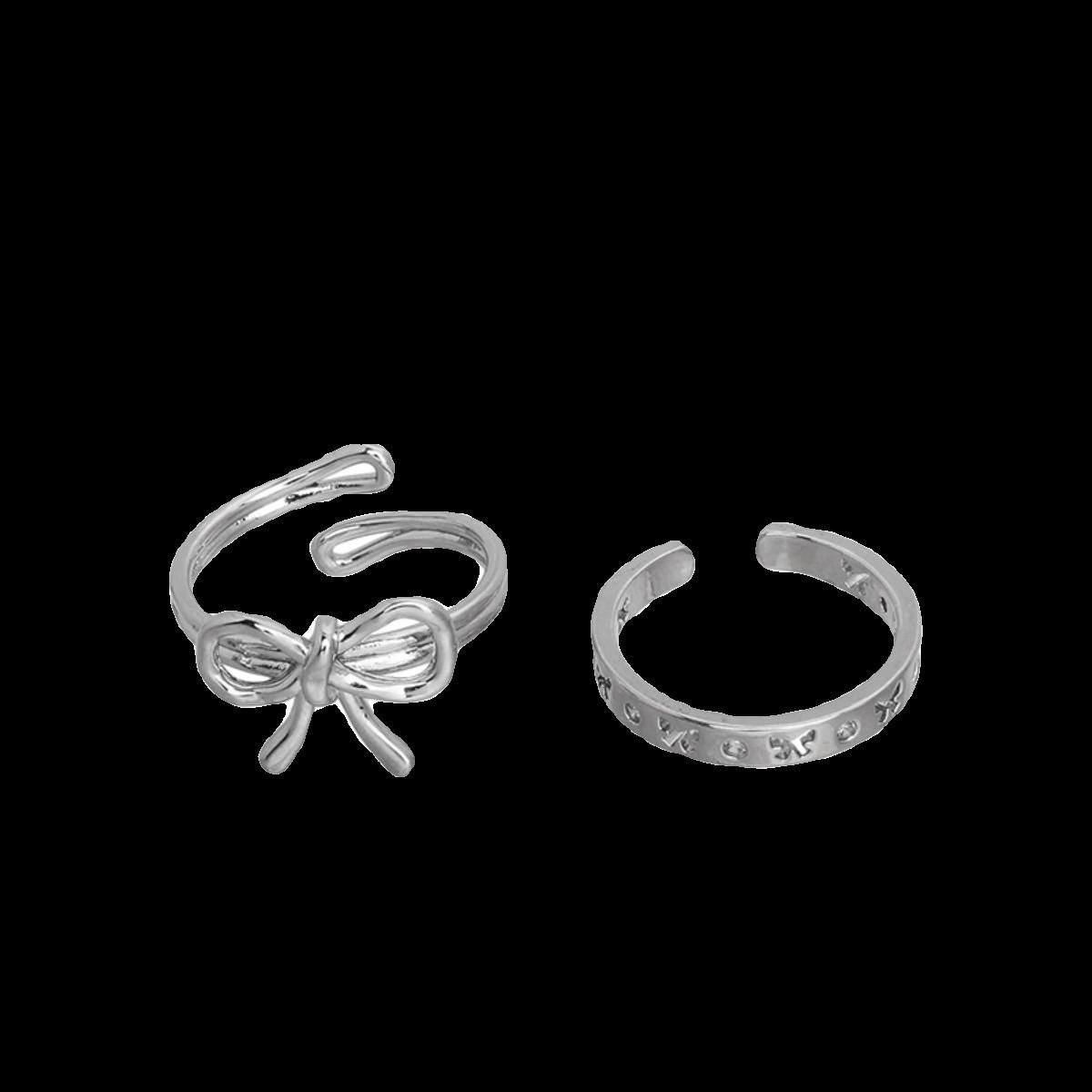 Hollow Butterfly Zircon Open Ring, Bow Line Open Ring, Bow butterfly ring two-piece set