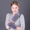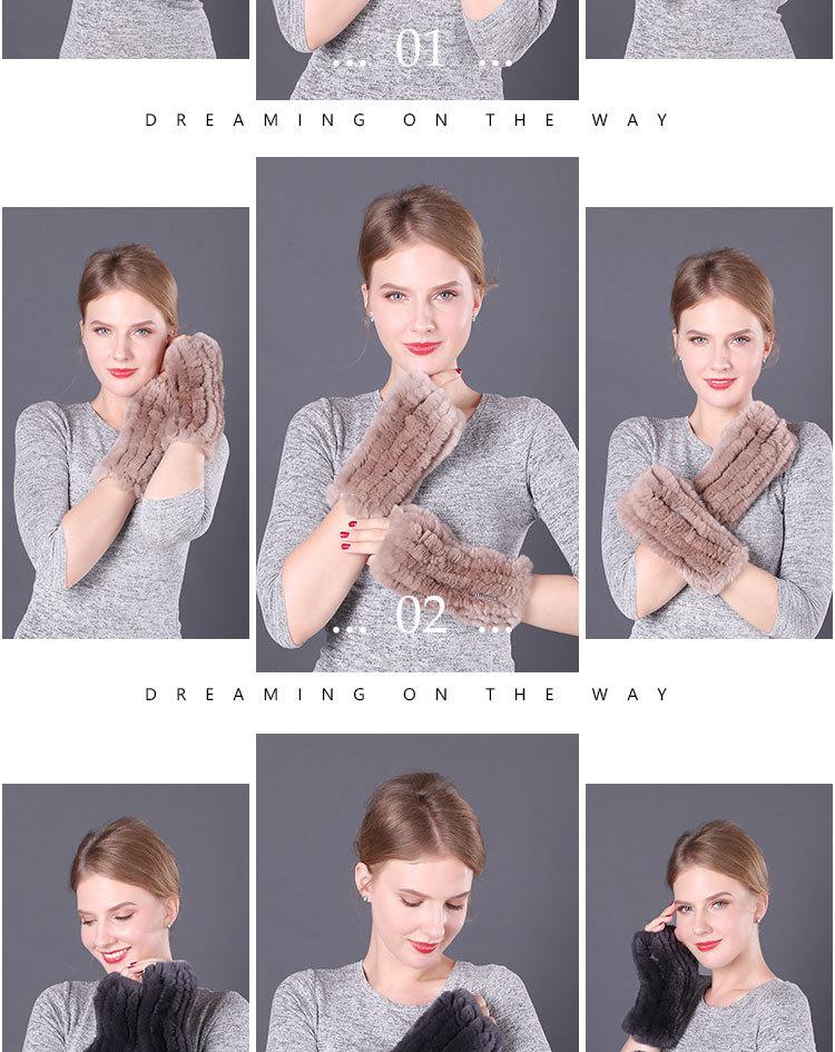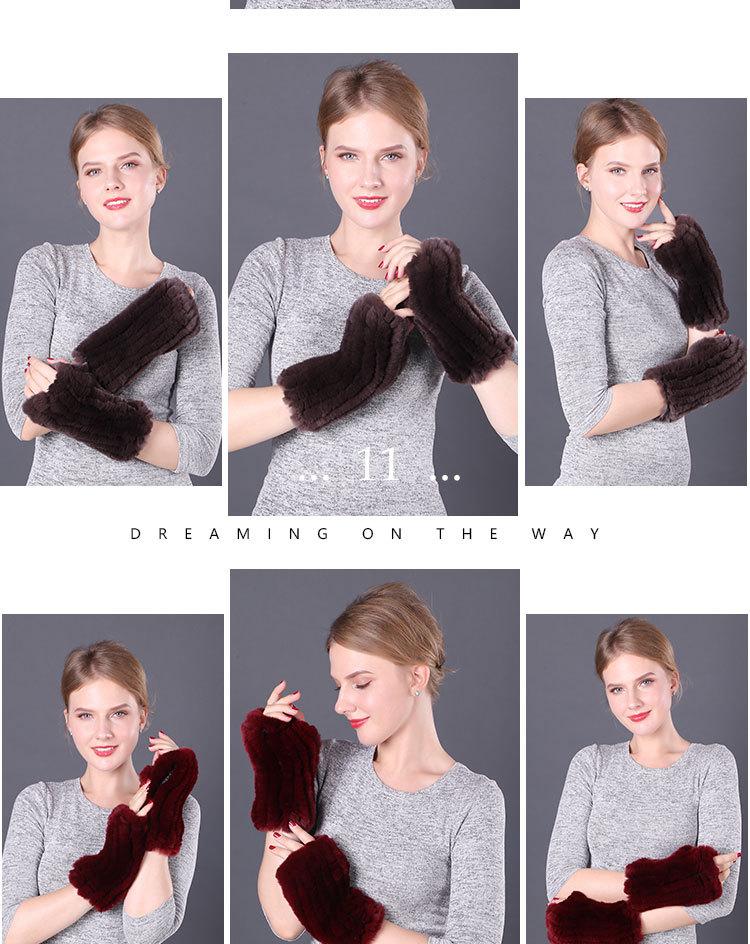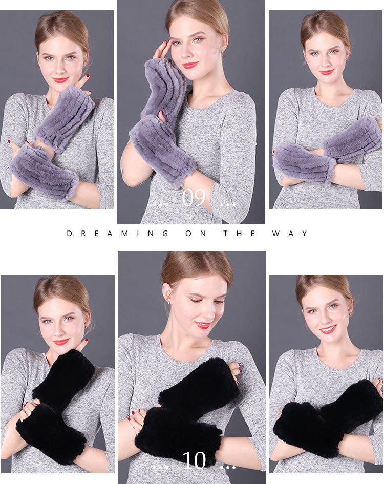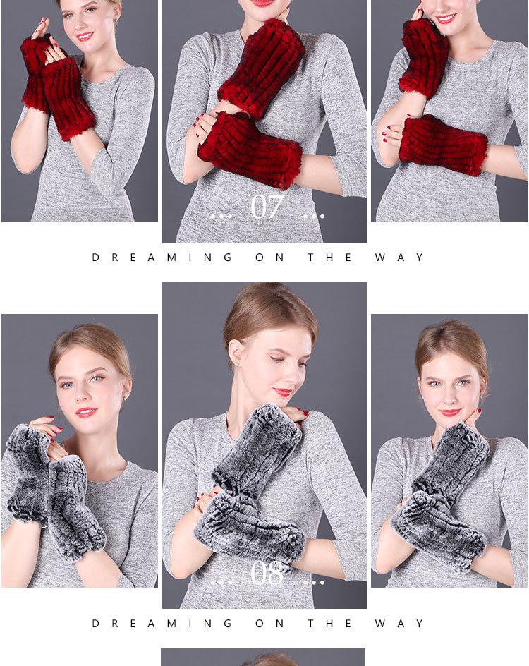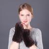 Guantes de piel de conejo Rex cálidos de invierno para mujer, bonitos guantes abiertos con mangas elásticas y dedos medios.