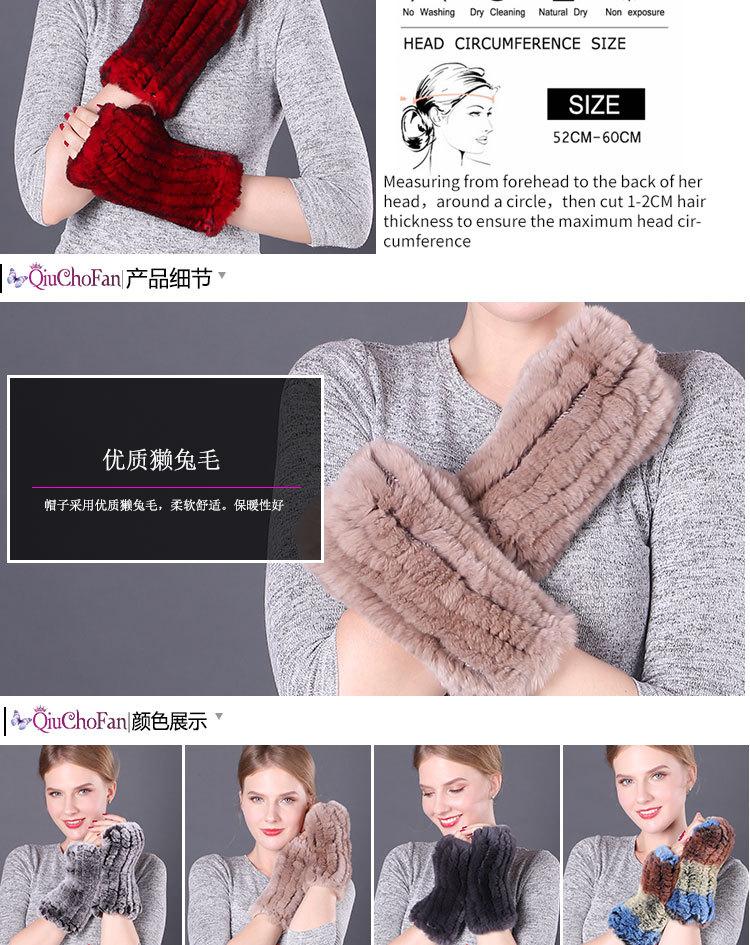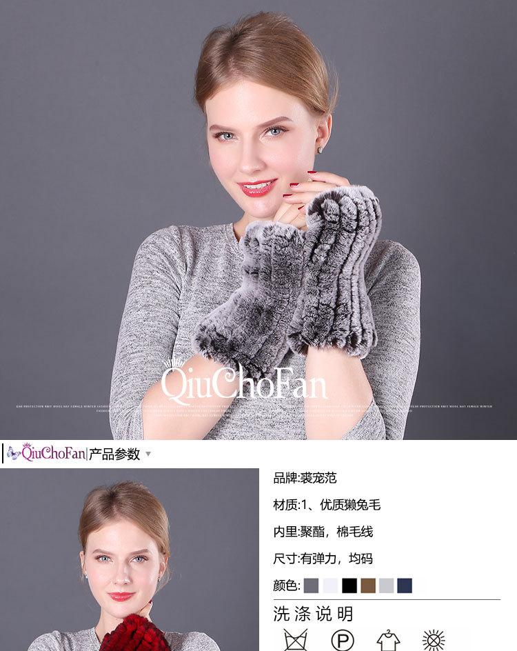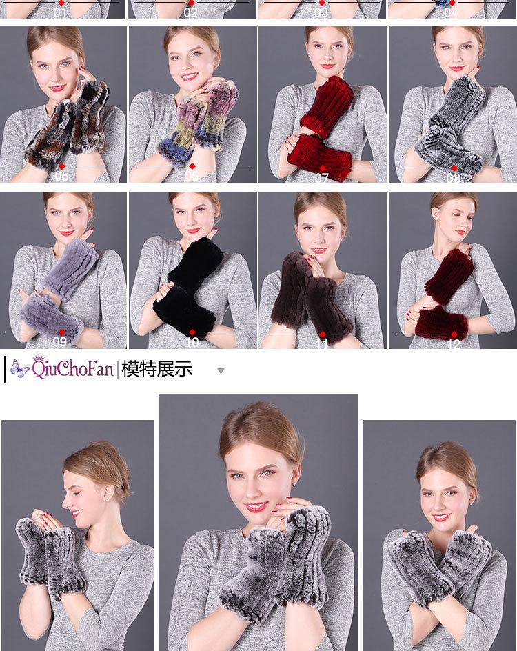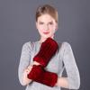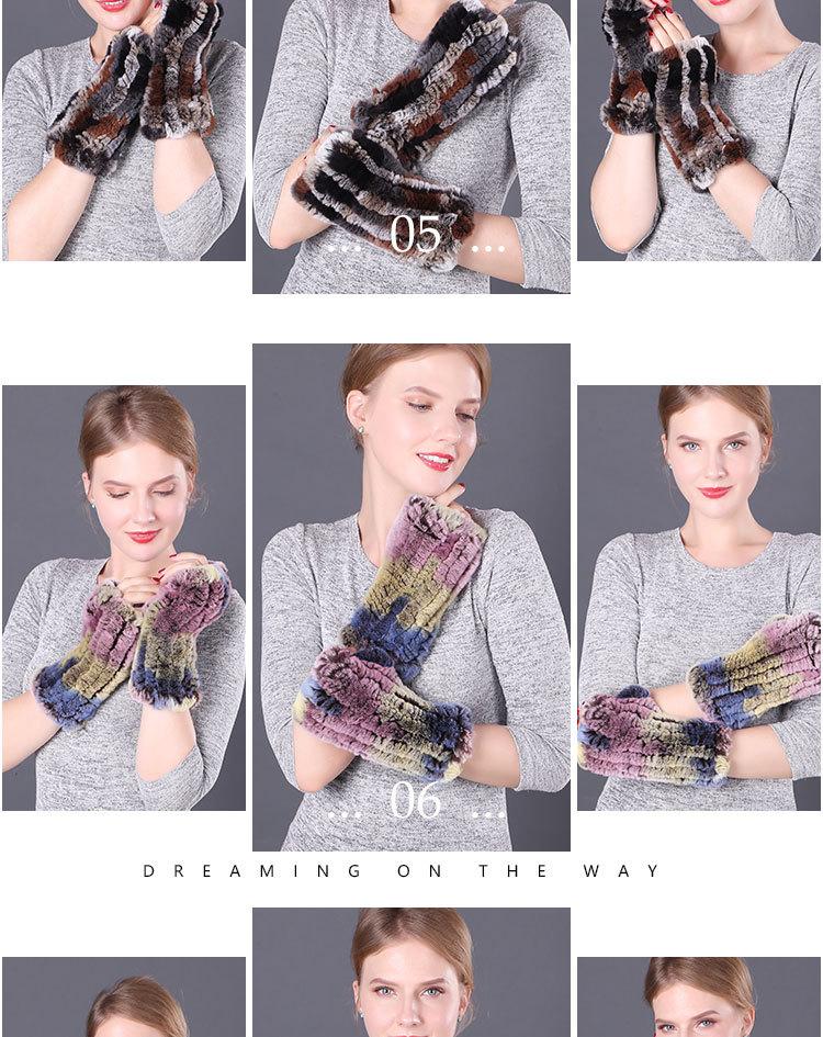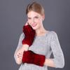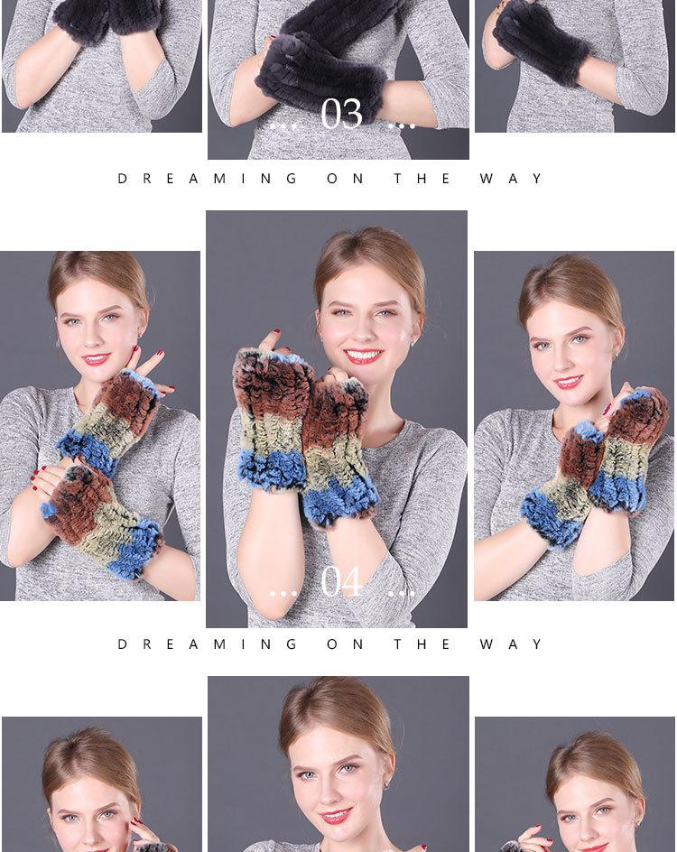 Guantes de piel de conejo Rex cálidos de invierno para mujer, bonitos guantes abiertos con mangas elásticas y dedos medios.