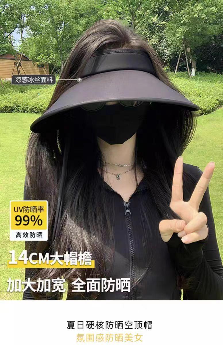 Sombrero de protección solar UPF50 para mujer, antiultravioleta, de ala ancha, vacío, de seda helada, con protección UV, para verano