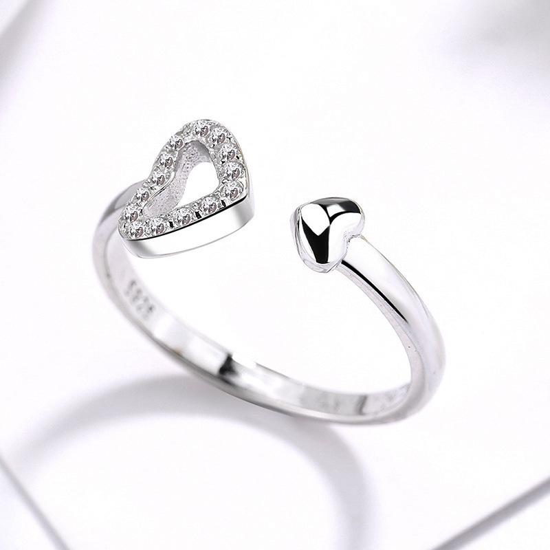 Anillo doble de amor hueco de moda coreana 2022 Anillo abierto de diamantes para mujer Anillo en forma de corazón Fabricantes venta al por mayor