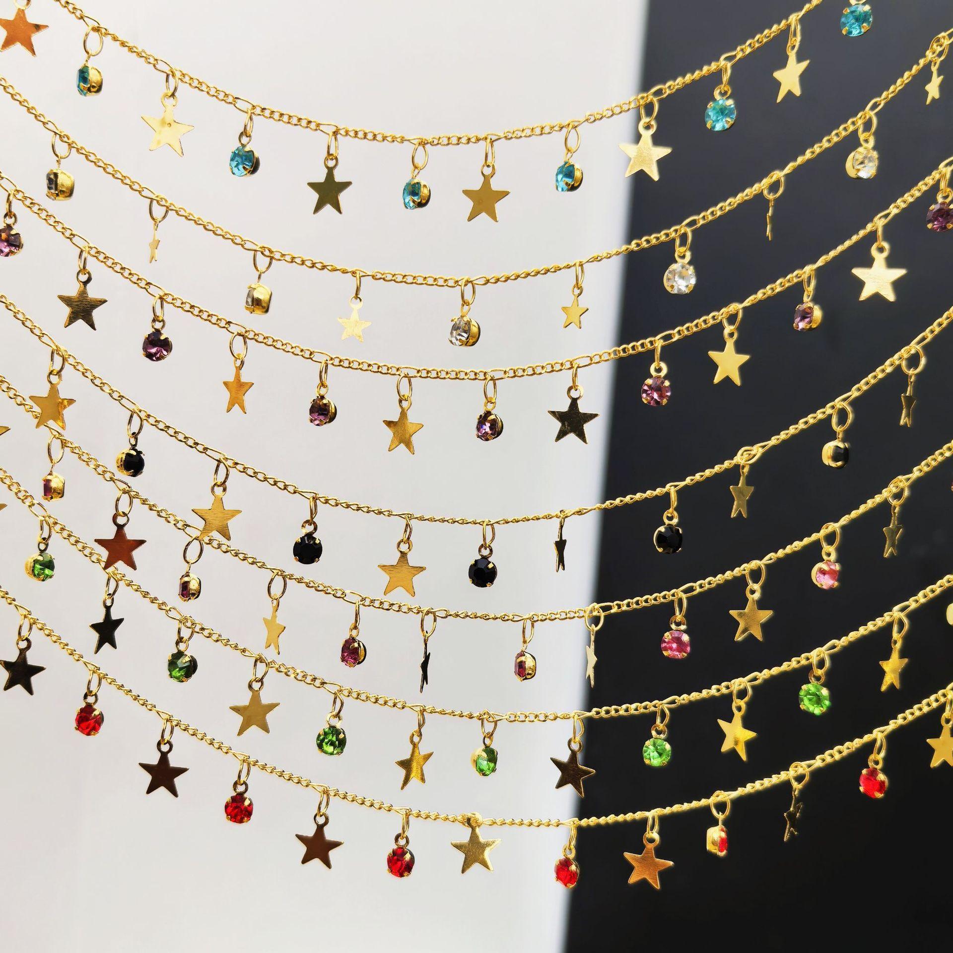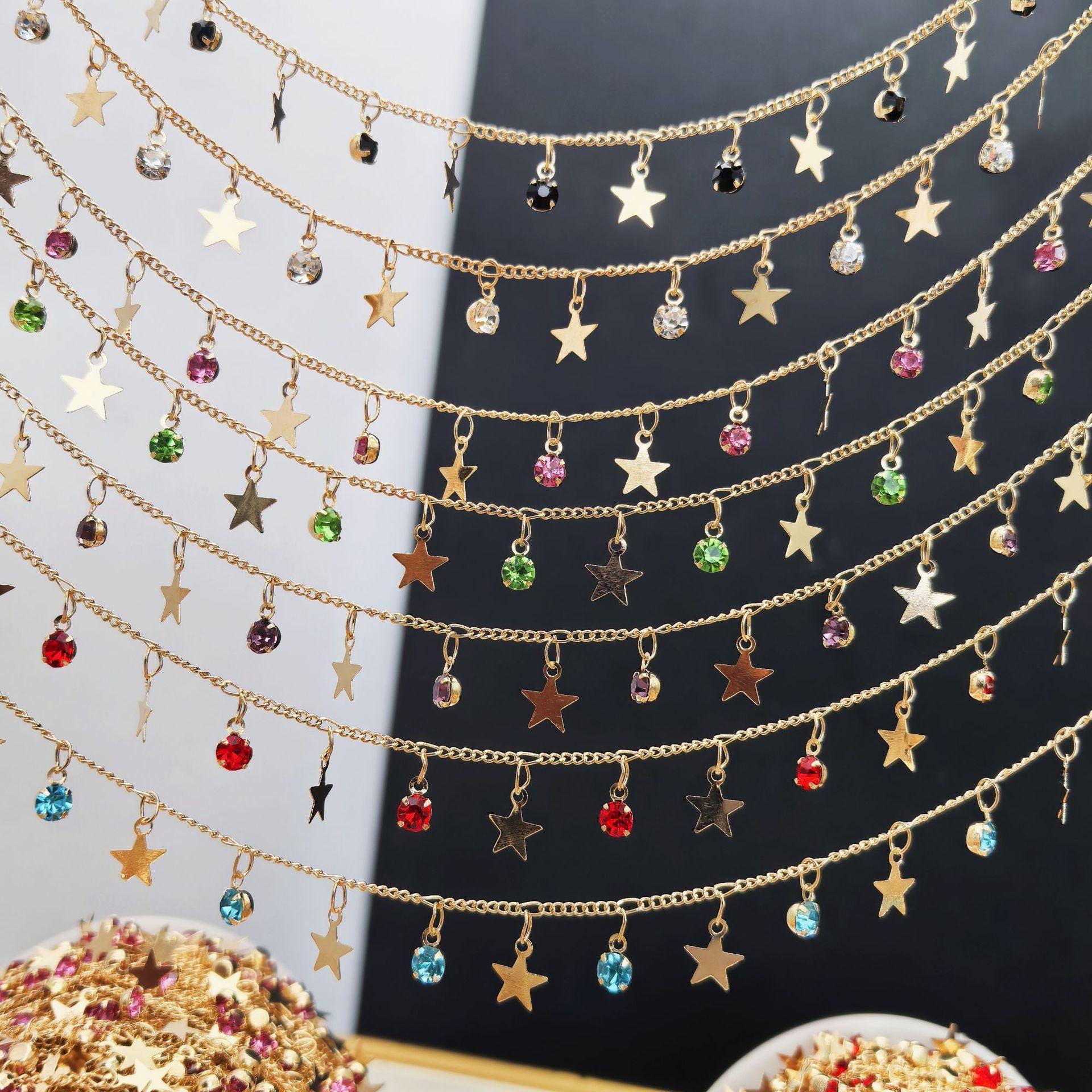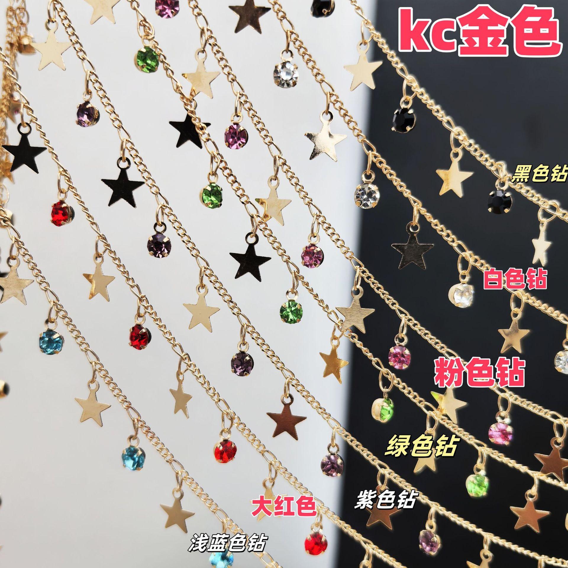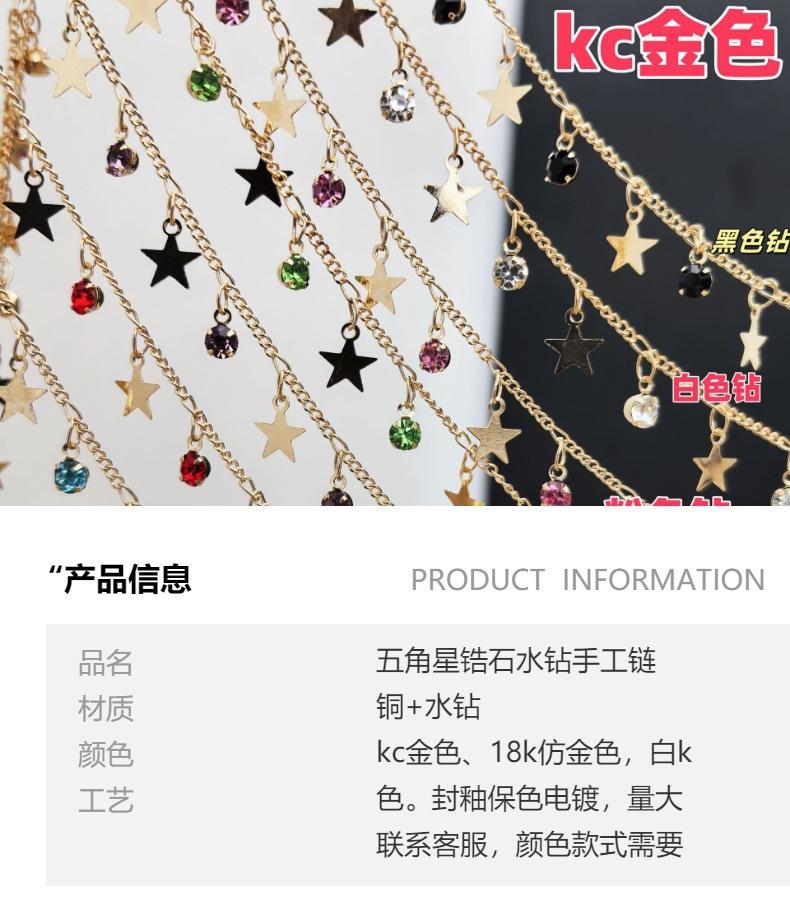 Cadena DIY con circonita de estrella de cinco puntas, cadena plana, colgante pequeño, cadena hecha a mano, joyería, collar, horquilla, accesorios de ropa, material de cadena