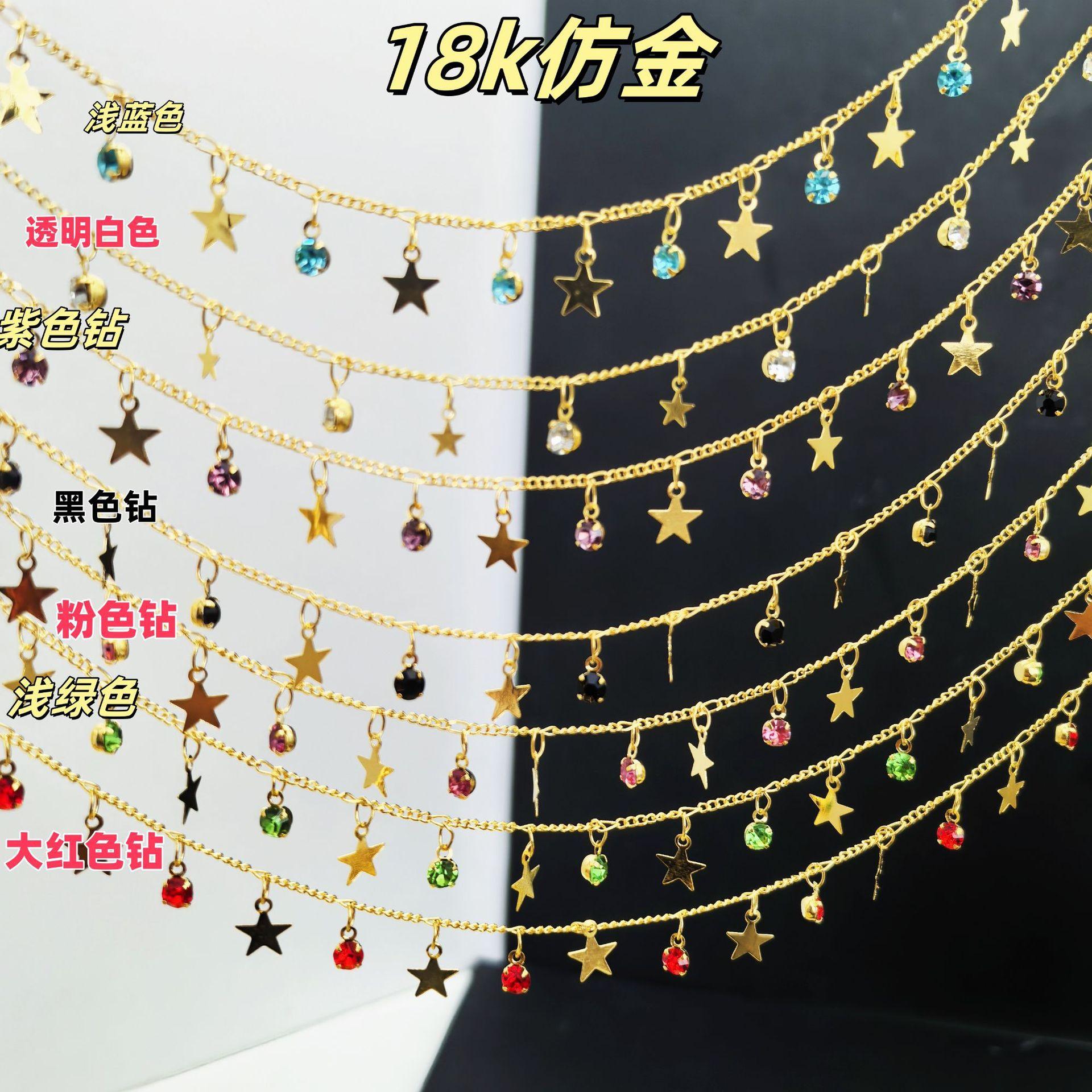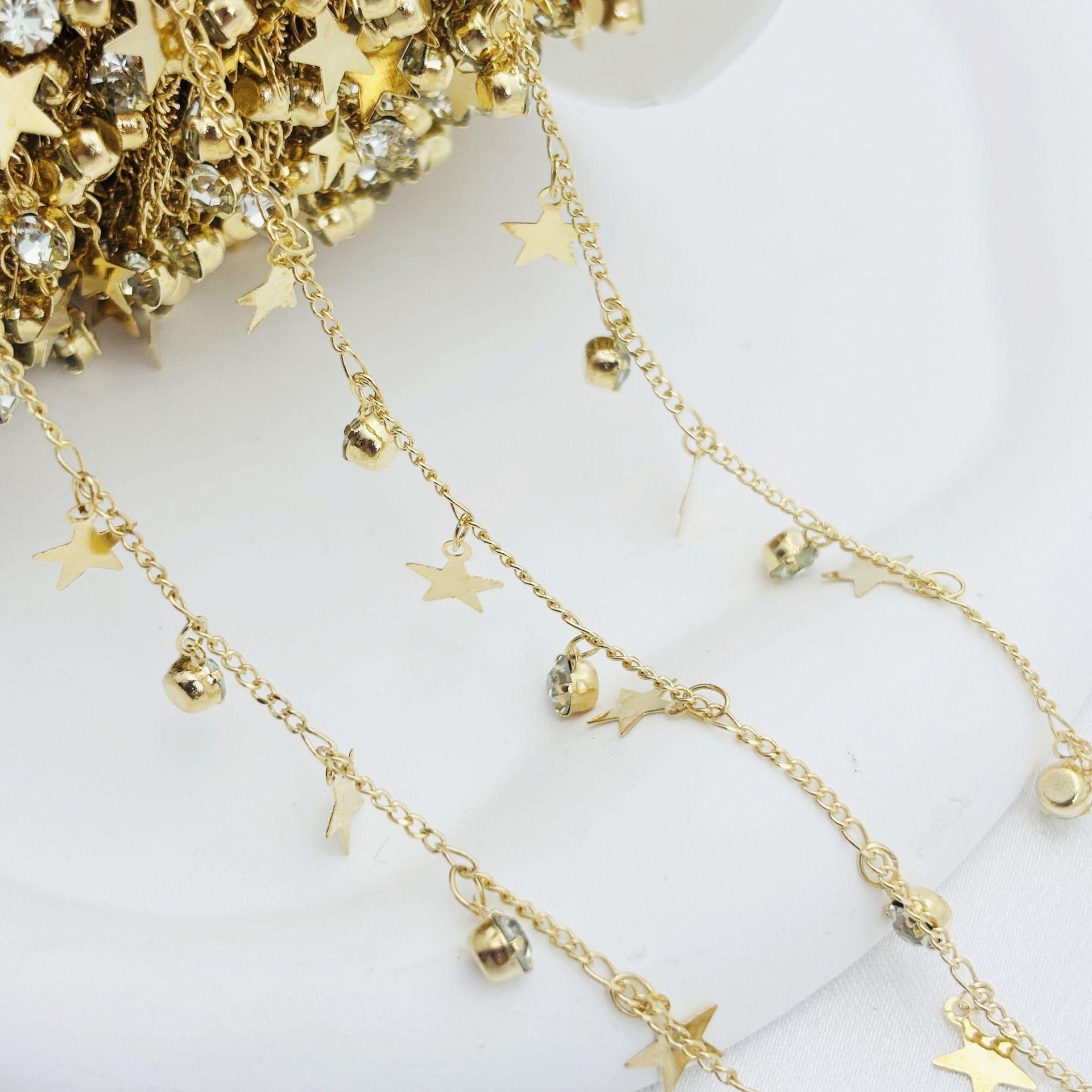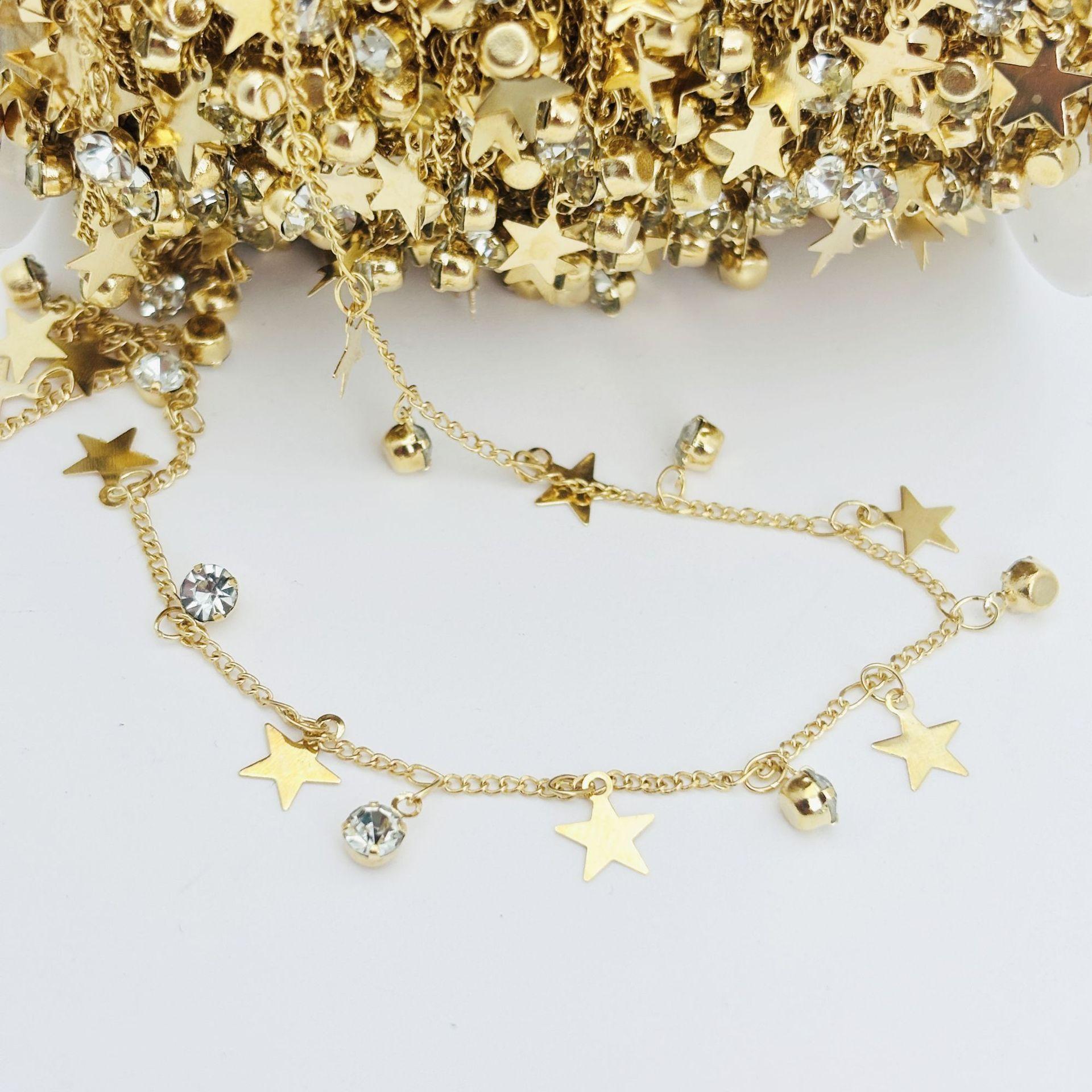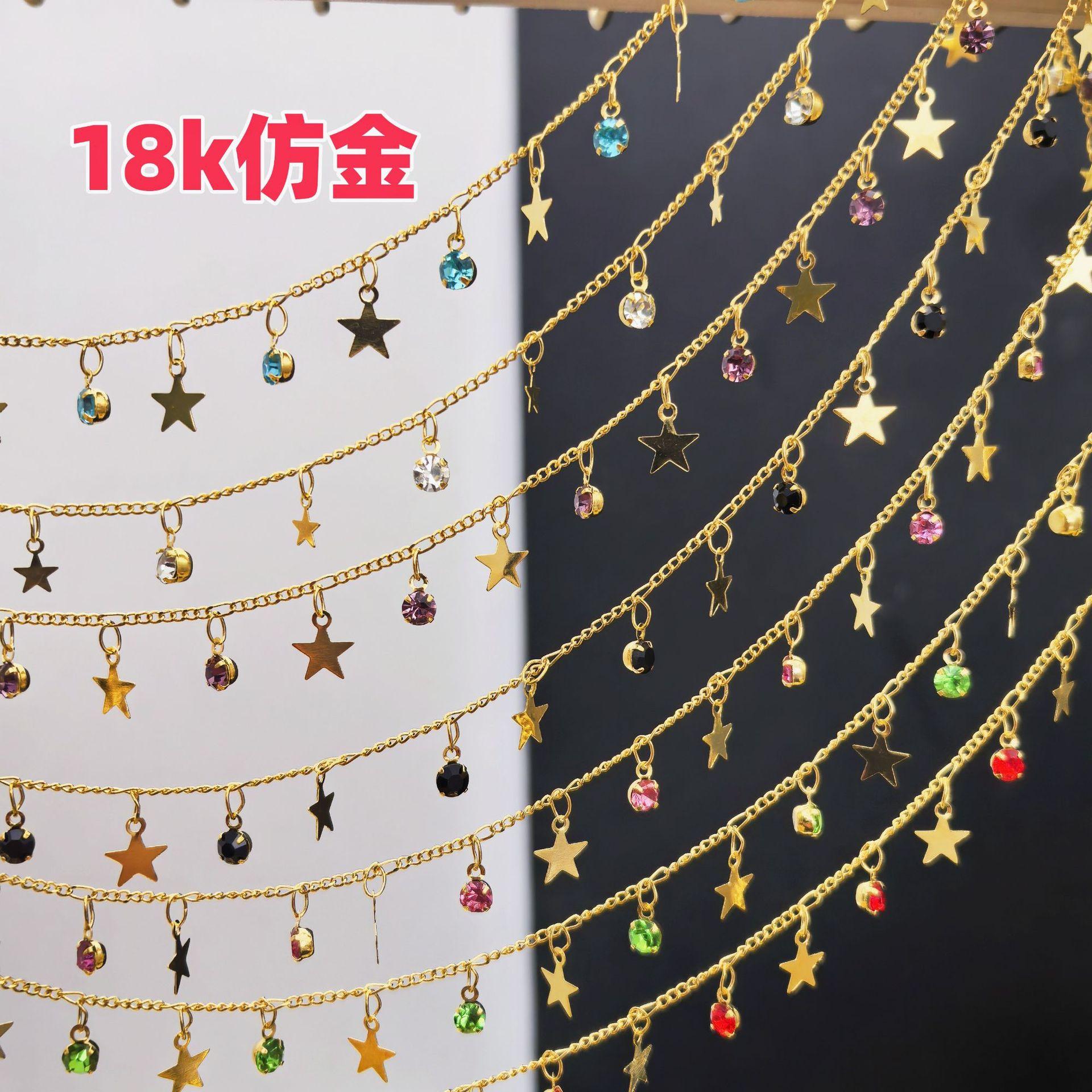 Cadena DIY con circonita de estrella de cinco puntas, cadena plana, colgante pequeño, cadena hecha a mano, joyería, collar, horquilla, accesorios de ropa, material de cadena