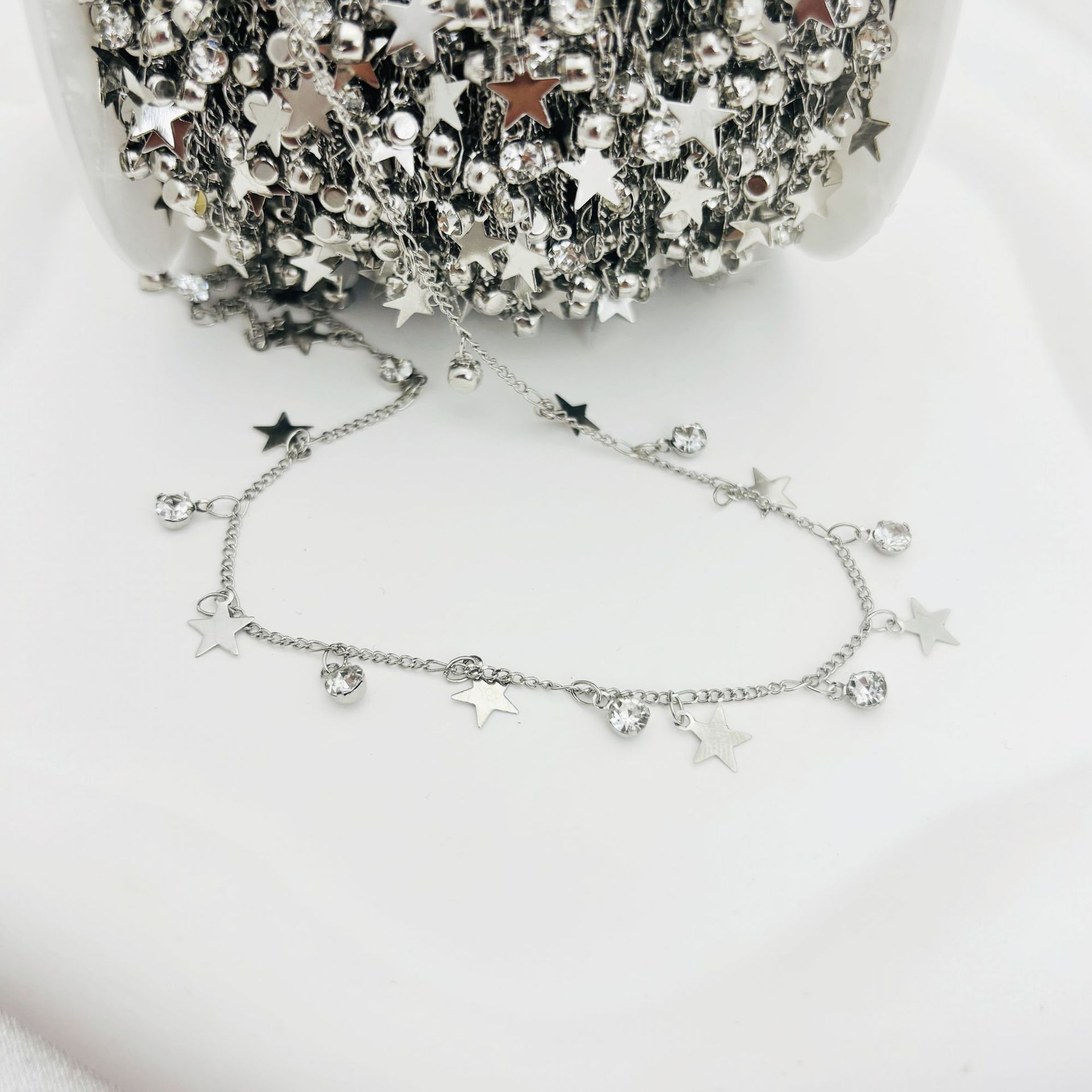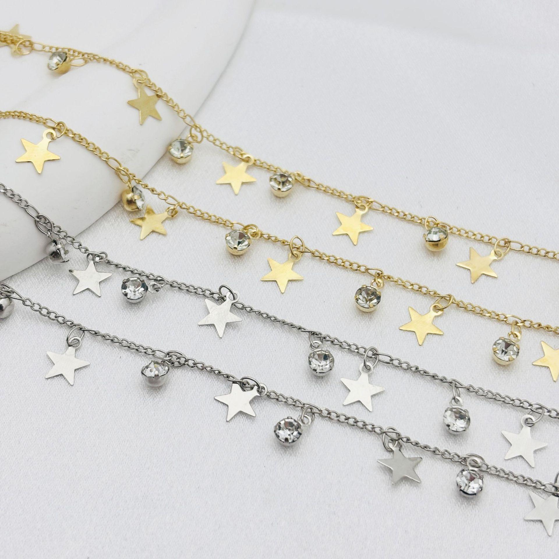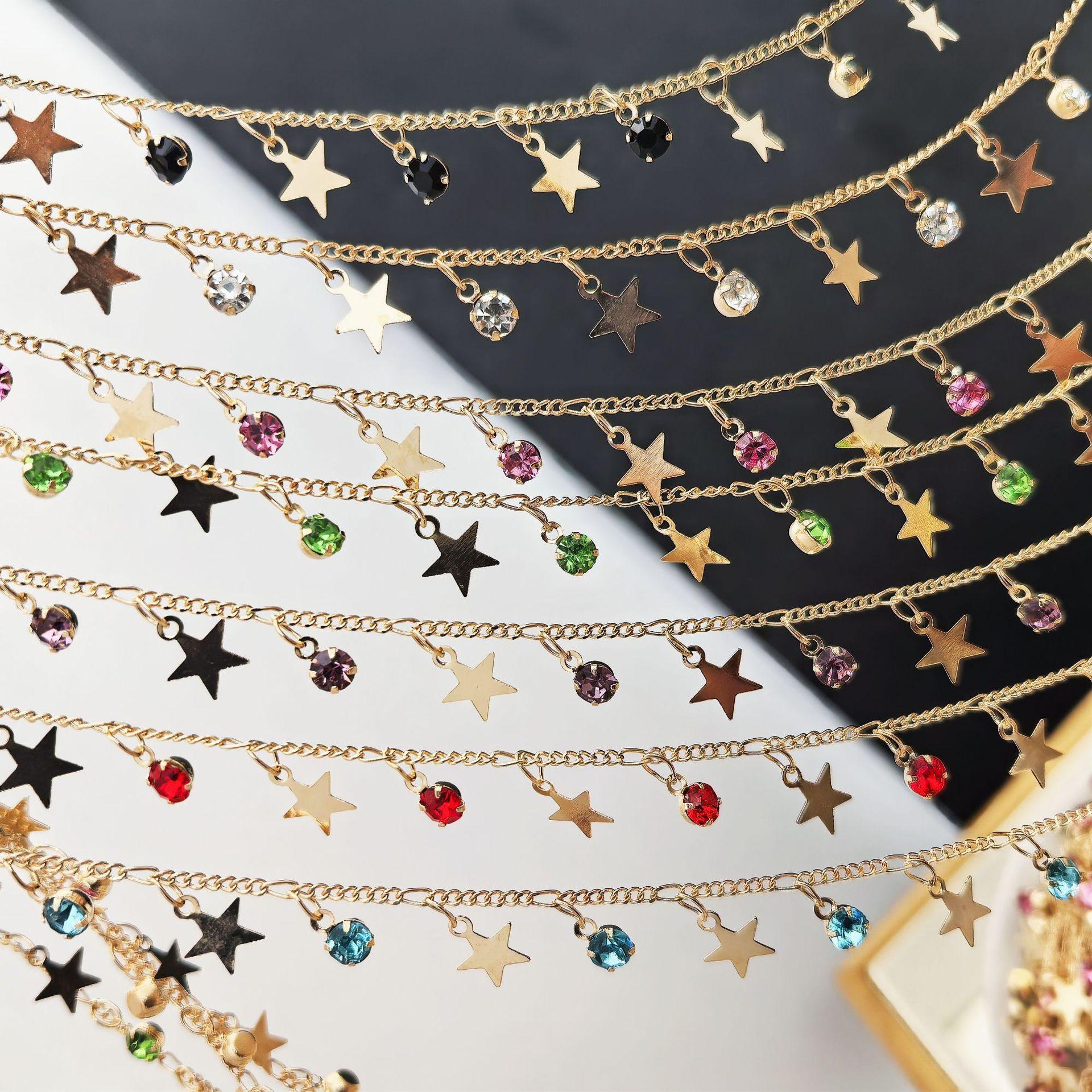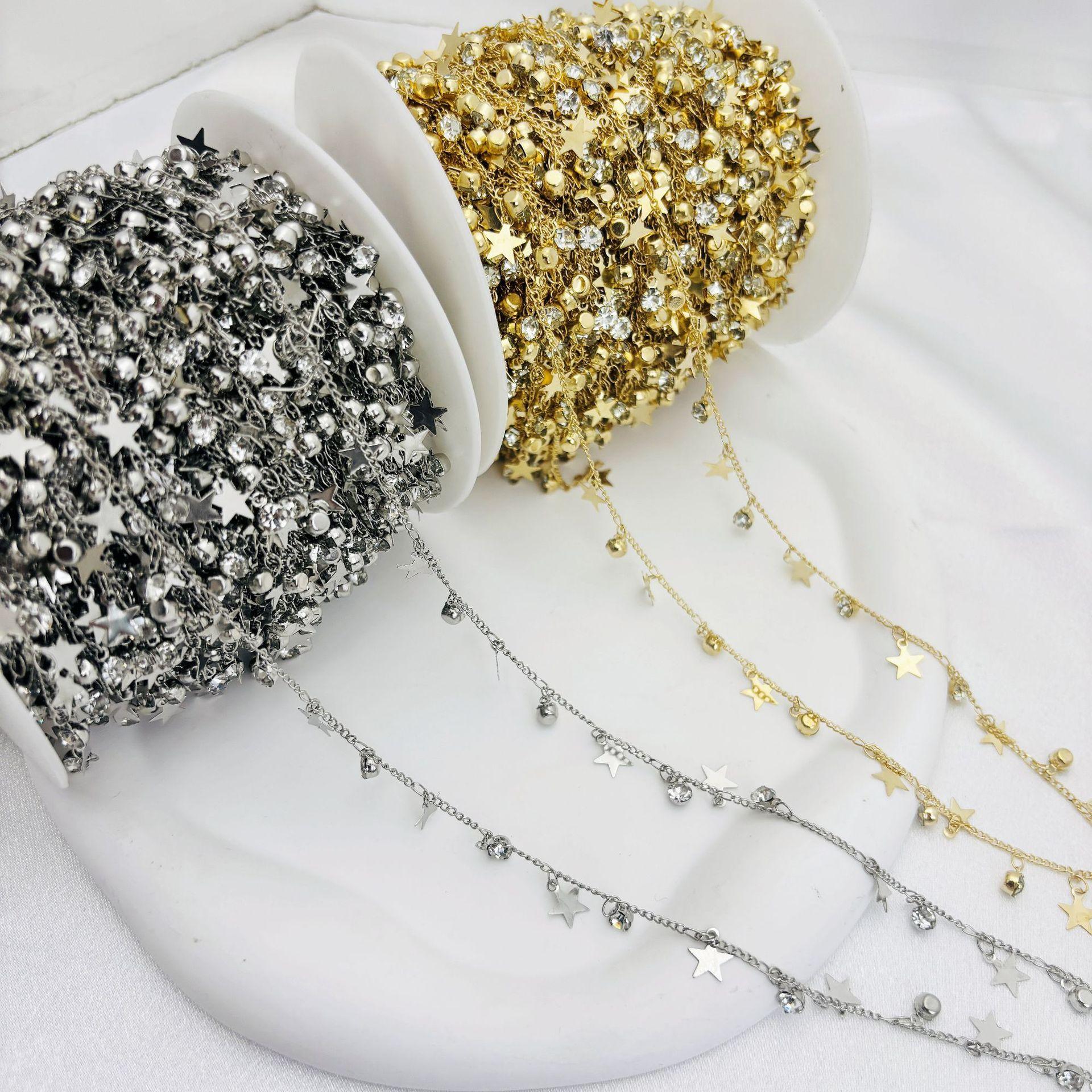Cadena DIY con circonita de estrella de cinco puntas, cadena plana, colgante pequeño, cadena hecha a mano, joyería, collar, horquilla, accesorios de ropa, material de cadena