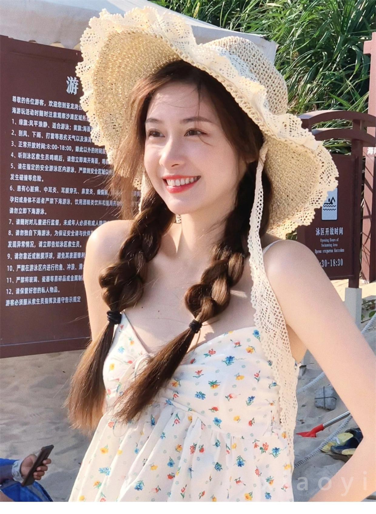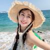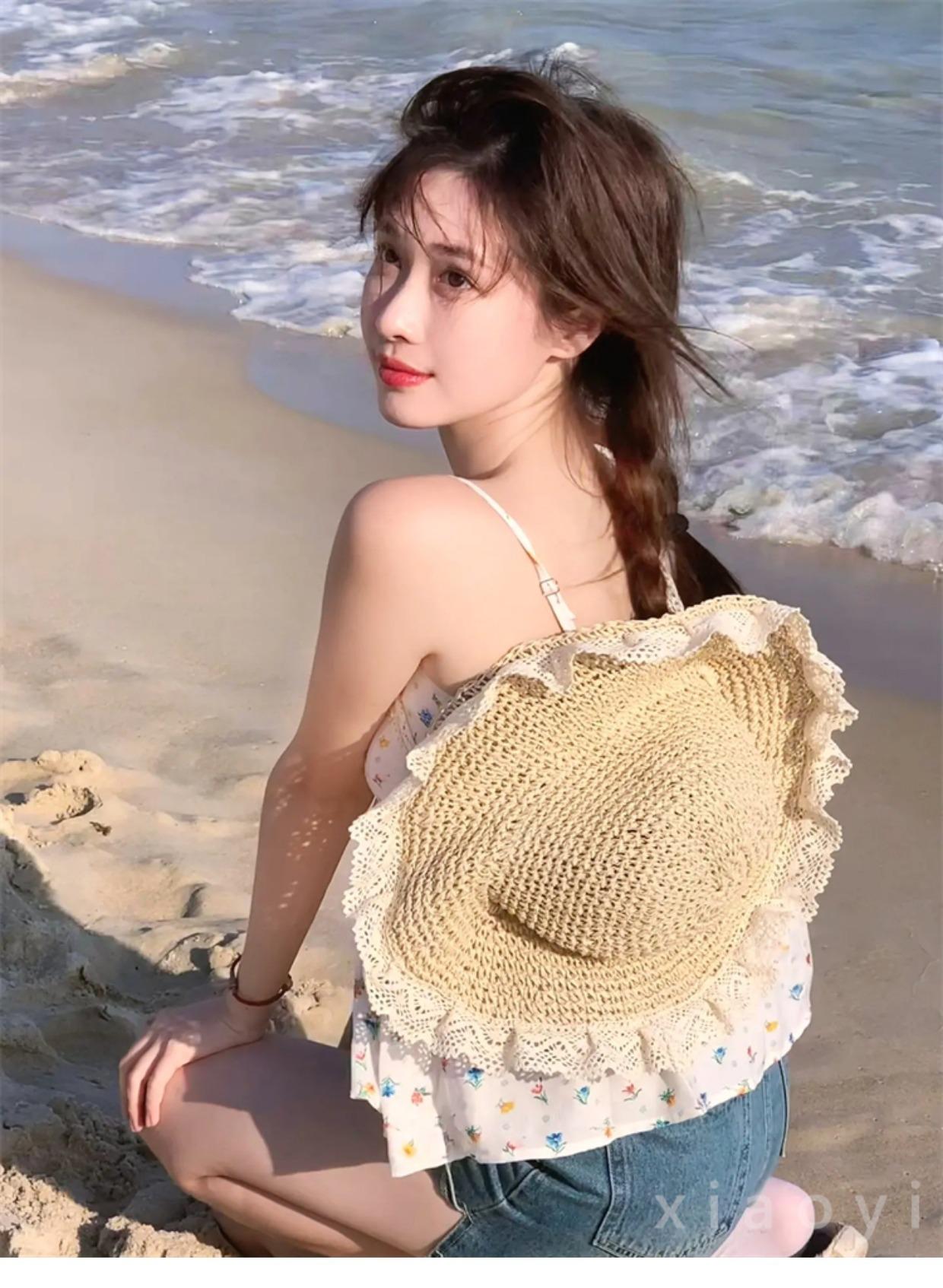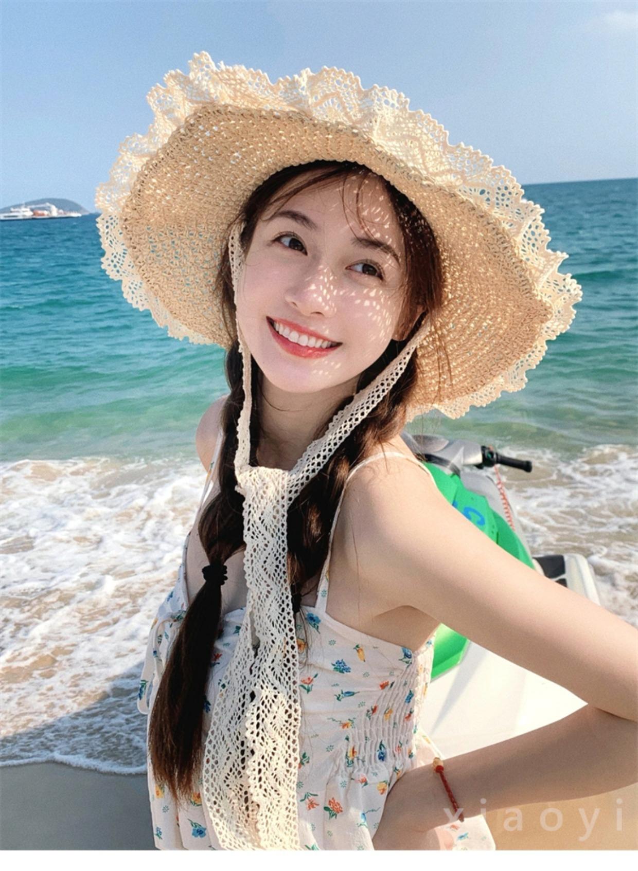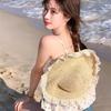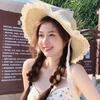 2025 Nuevo Sombrero de Paja Calado con Cintas de Encaje Verano Viaje Protección Solar Sombrero para el Sol Sombrero de Playa Sombrero para el Sol de Mujer