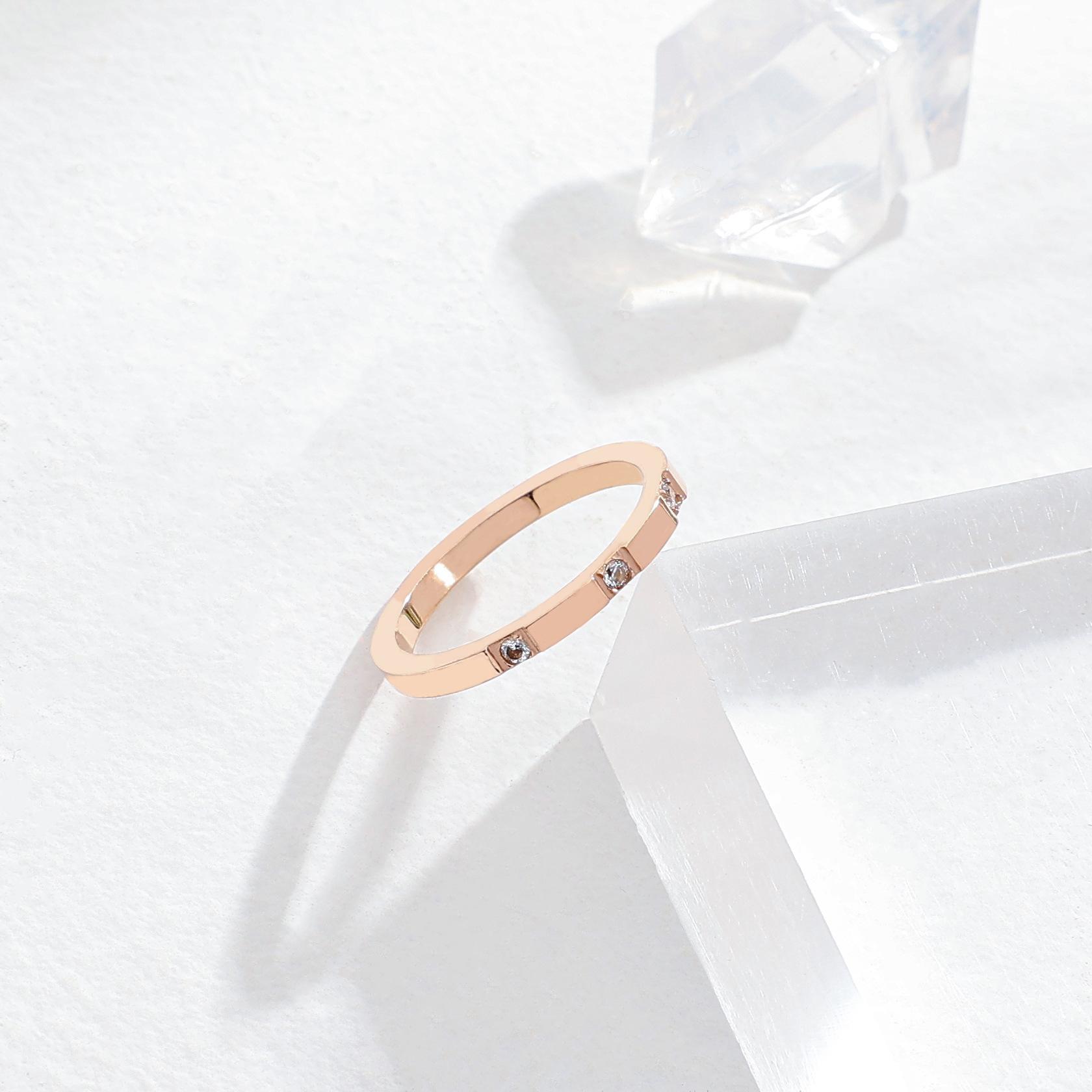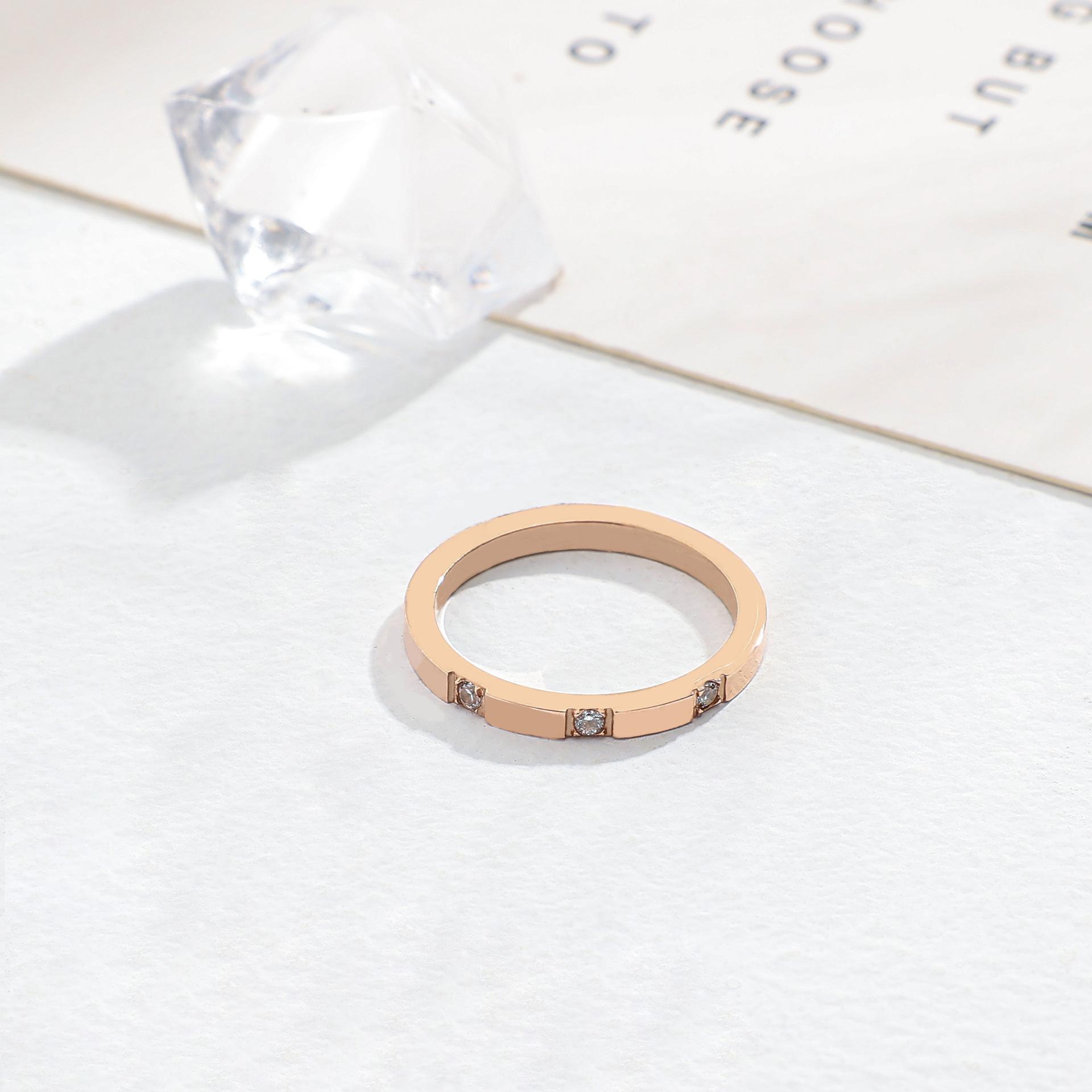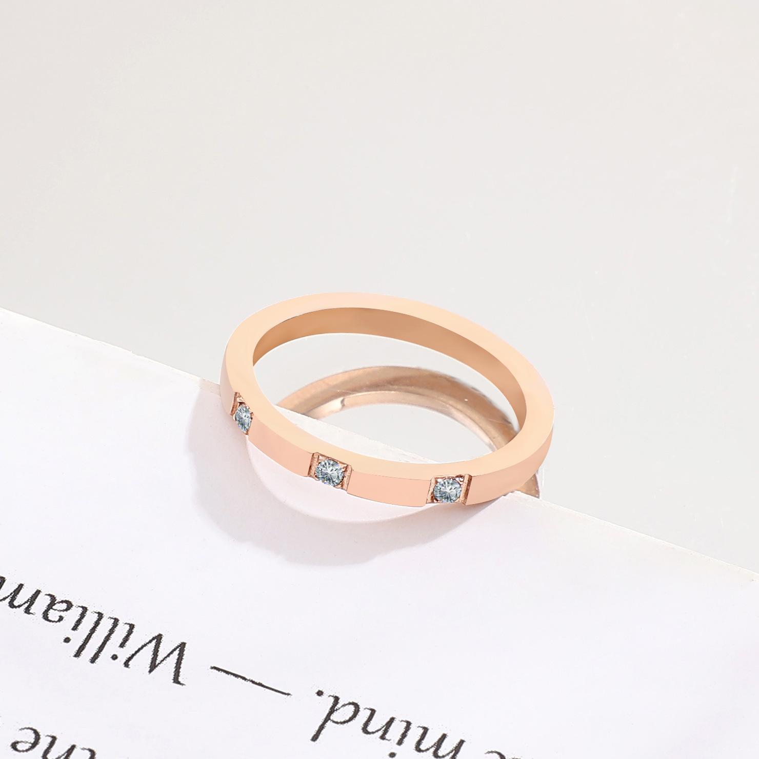 Anillo de acero inoxidable de 2 mm con tres diamantes tallados, acero de titanio con incrustaciones de diamantes, no se desvanece, estilo ins, lujo ligero, alta gama, anillo de nicho femenino
