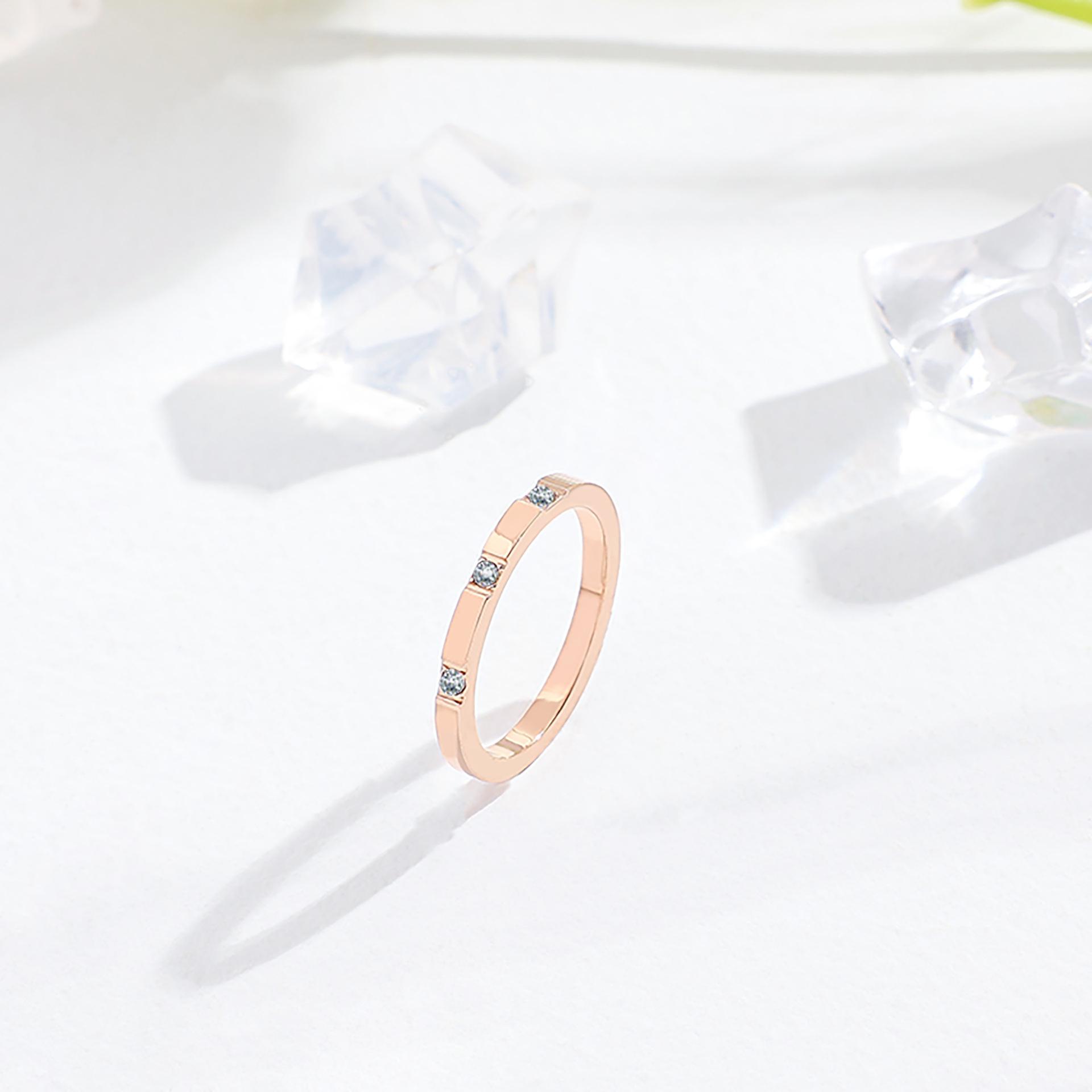 2MM steel three diamond ring, 2MM gold three diamond ring, 2MM rose gold three diamond ring