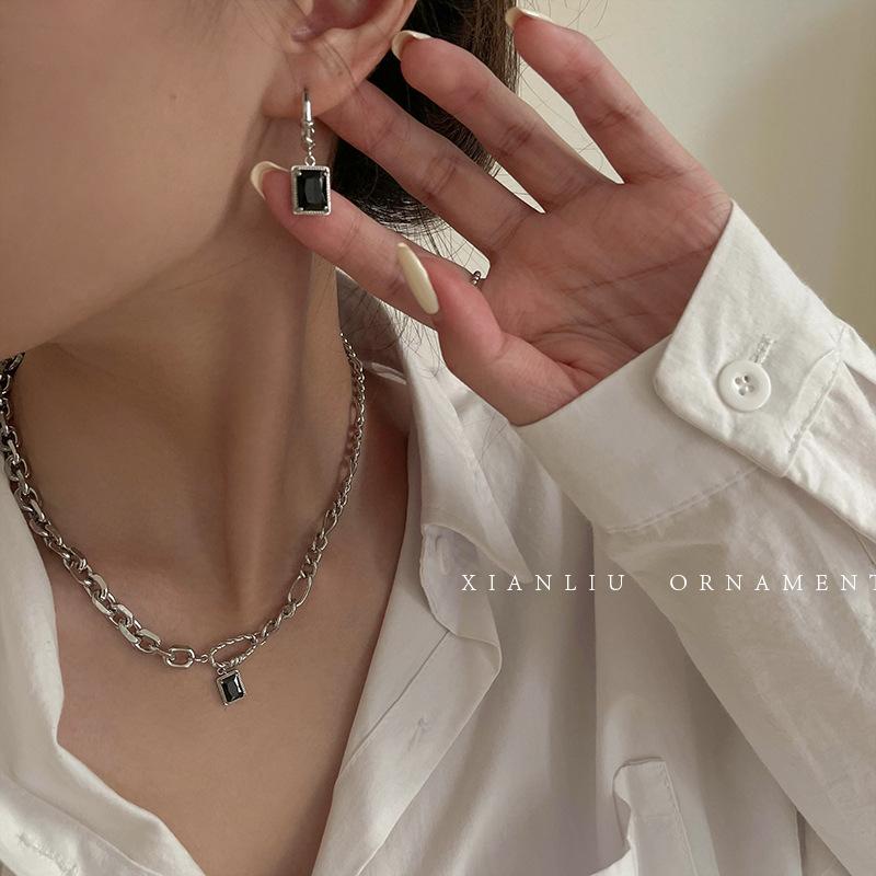 Collar coreano de circonita negra para mujer, cadena de clavícula, estilo hip hop, combina con todo, ligero, lujoso, diseño de nicho, accesorios para mujer