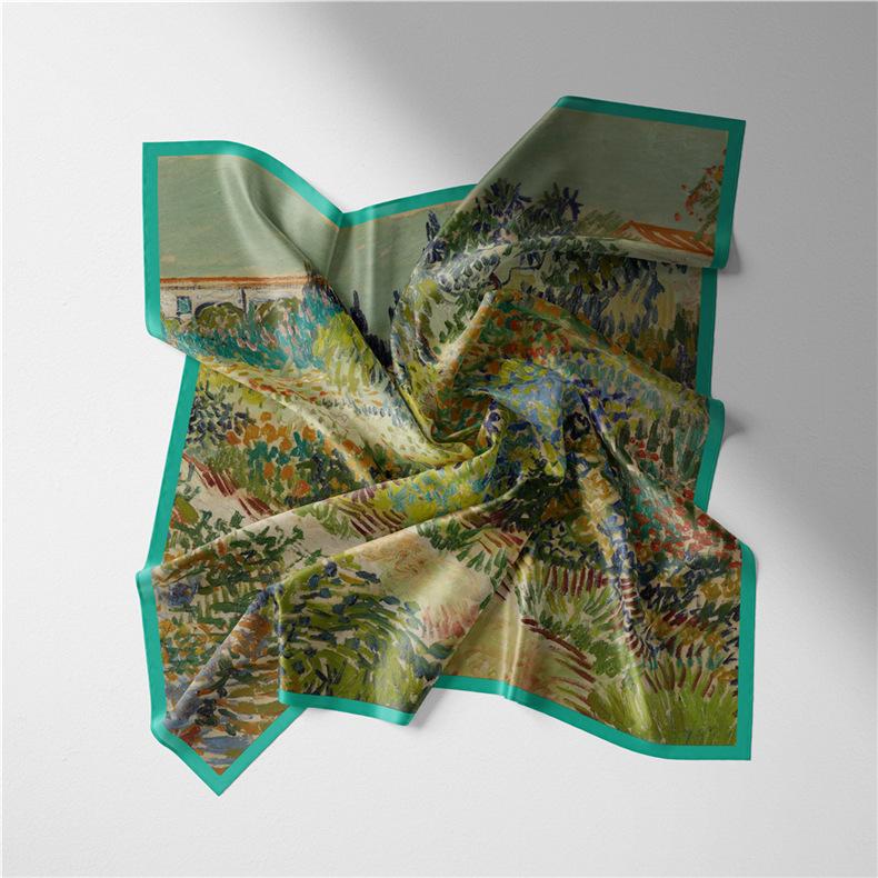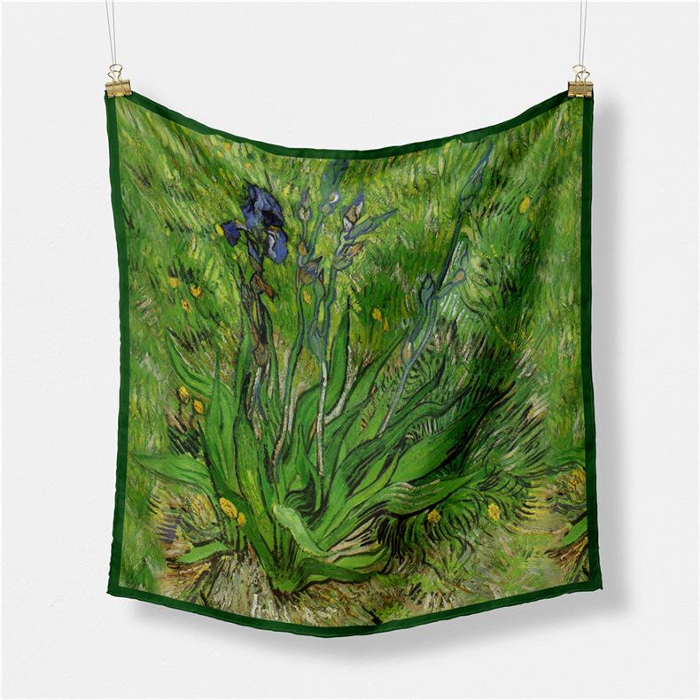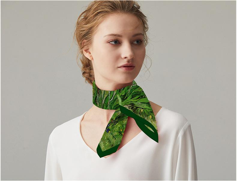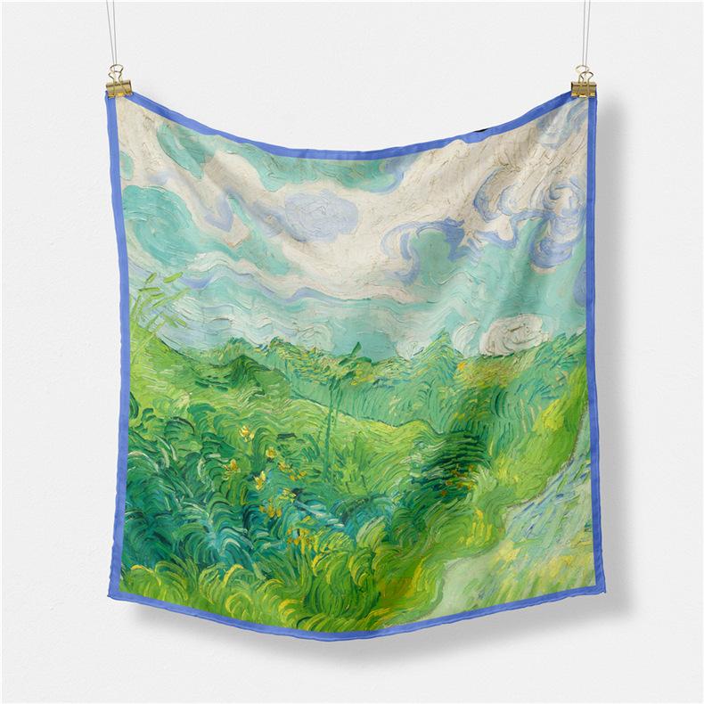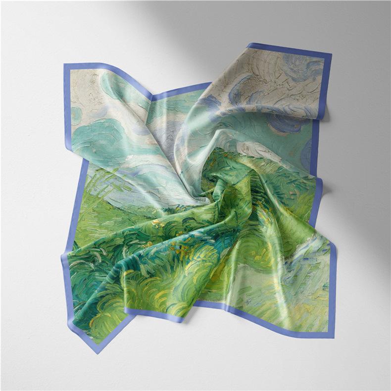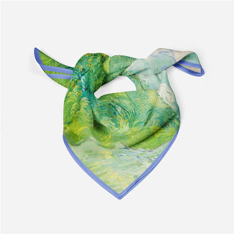 Primavera y Verano Nuevo Estilo Bufanda Campo de Trigo Verde Fresco Seda Imitación Estampado Temperamento Moderno Chal Decorativo Envío Directo