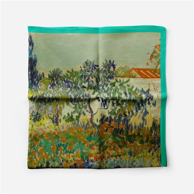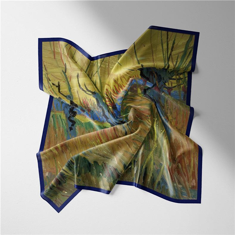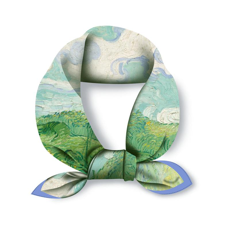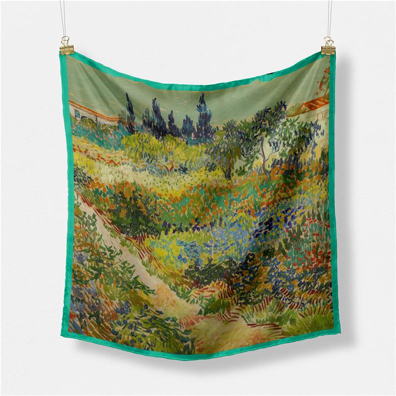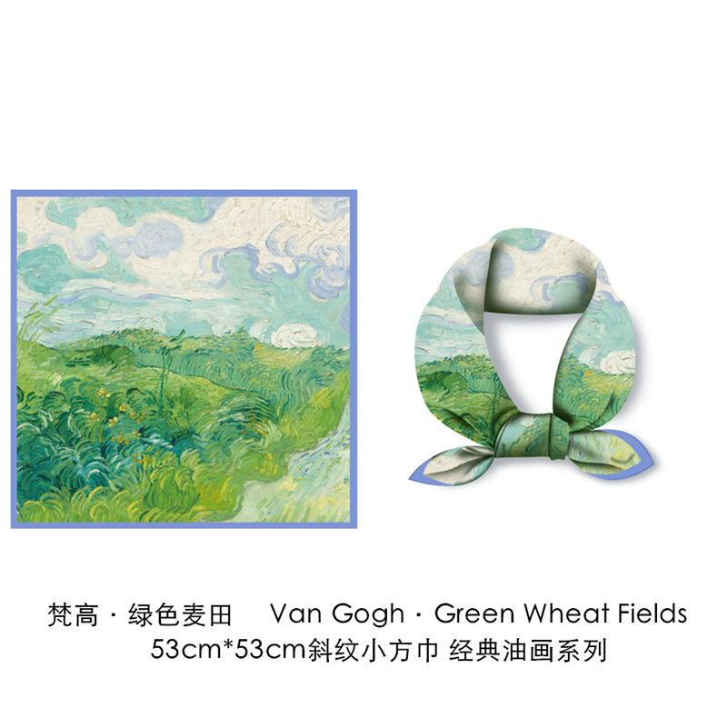 Primavera y Verano Nuevo Estilo Bufanda Campo de Trigo Verde Fresco Seda Imitación Estampado Temperamento Moderno Chal Decorativo Envío Directo