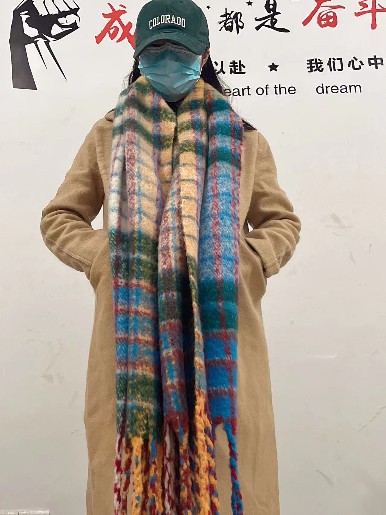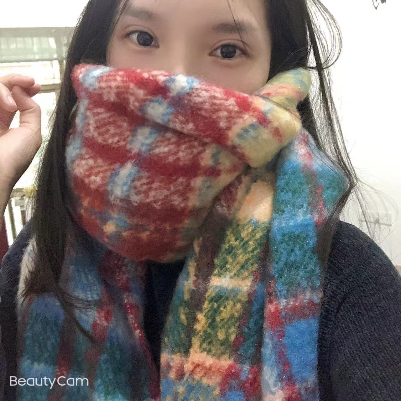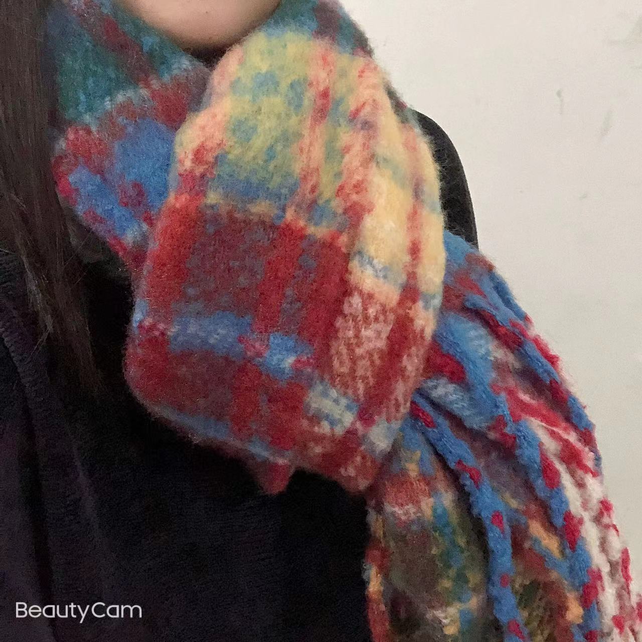 Bufanda Grande Gruesa a Cuadros para Mujer 2024 Invierno Nuevo Versión Coreana Chal Versátil Calentador de Cuello Colorido Trendy