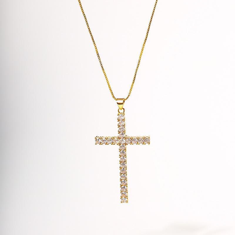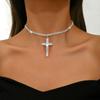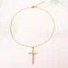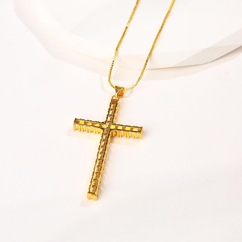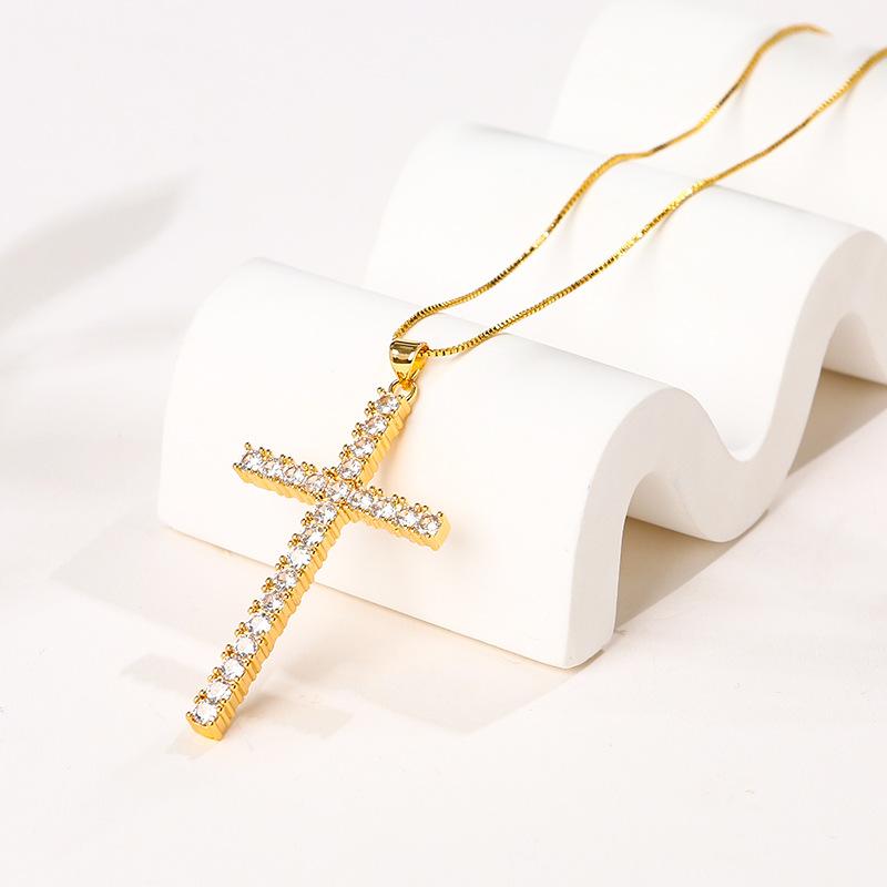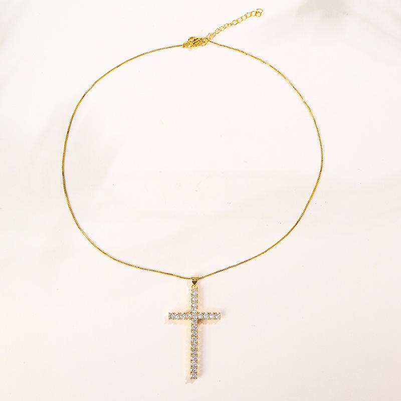 Nuevo collar versátil con colgante de cruz de diamantes simple de moda europea y americana con incrustaciones de cobre y diseño de nicho de circonitas.