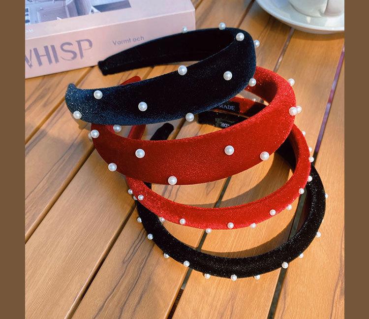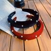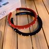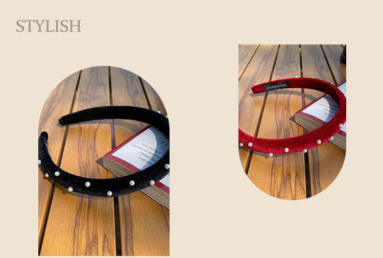 Diadema de terciopelo rojo perla vino dulce retro francés para niñas, diadema versátil con borde fino y simple para salir