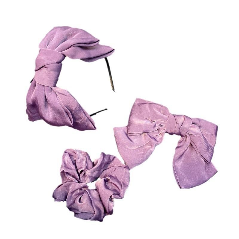 B095 Diadema con lazo de doble capa de color liso para mujer, banda para el cabello con lazo para el intestino grueso, conjunto de pinzas de resorte, nuevos accesorios para el cabello de estilo coreano