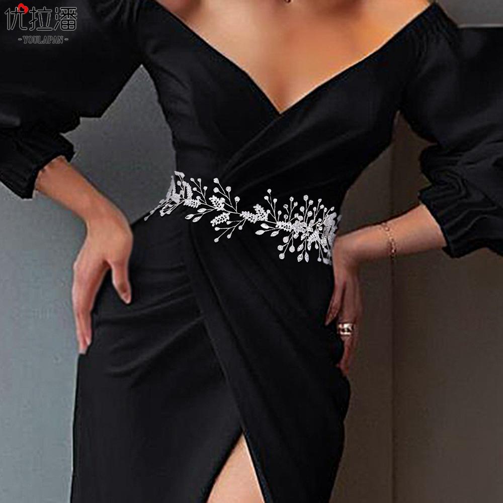 Youlapan Sh517 Cinturón de Mujer Versátil de Moda Transfronterizo con Hebilla de Aleación de Hoja Metálica, Cinturón de Diamantes de Imitación Nupcial