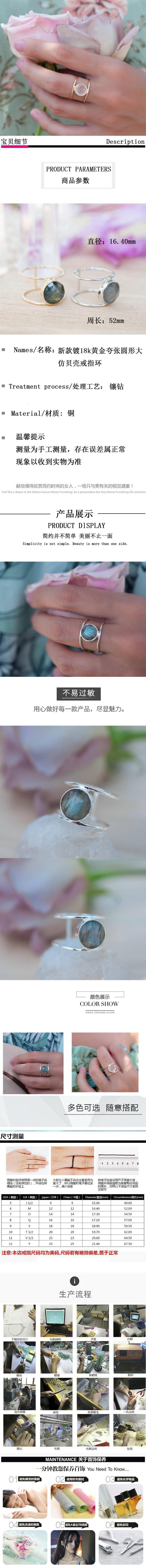 Anillo de concha de imitación grande, redondo y exagerado, chapado en oro de 18 quilates, de Zhen Rong, el más vendido de eBay para damas europeas y americanas.