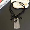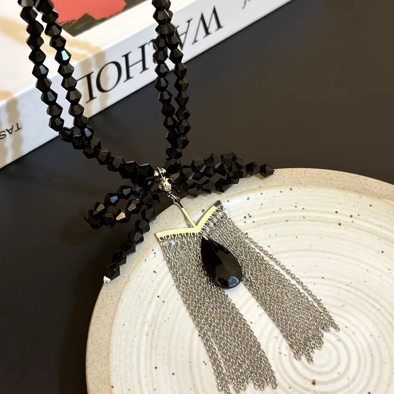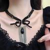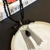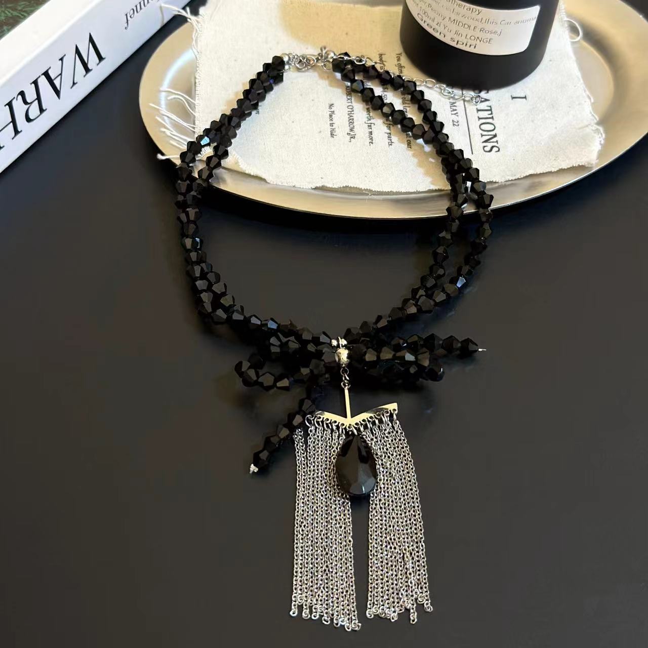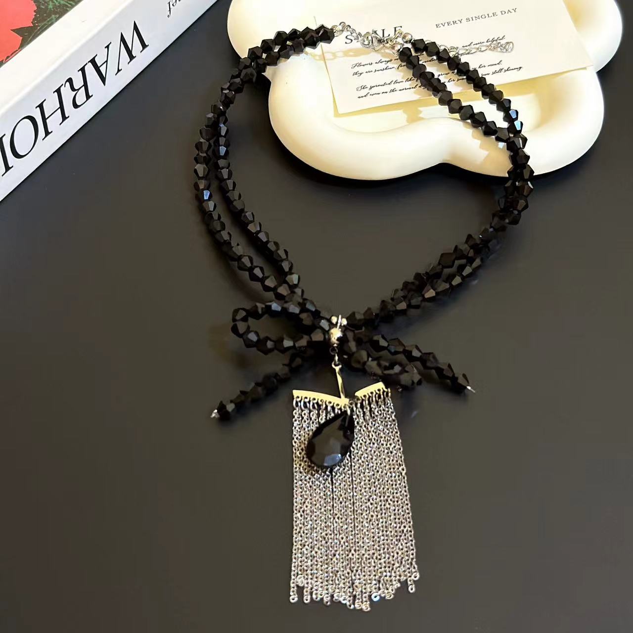 Collar de borlas con lazo y cuentas apiladas multicapa negras, estilo dulce y moderno, para mujer, cadena de clavícula con personalidad sencilla y combinable.