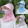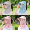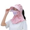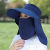 Sombrero de Sol de Verano para Mujer con Mascarilla Facial, Protección UV, Sombrero de Sol para Trabajo, Sombrero de Sol para Recolección de Té con Cubierta Facial, Ala Ancha