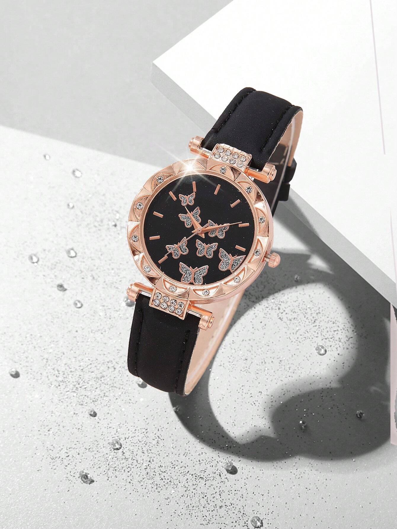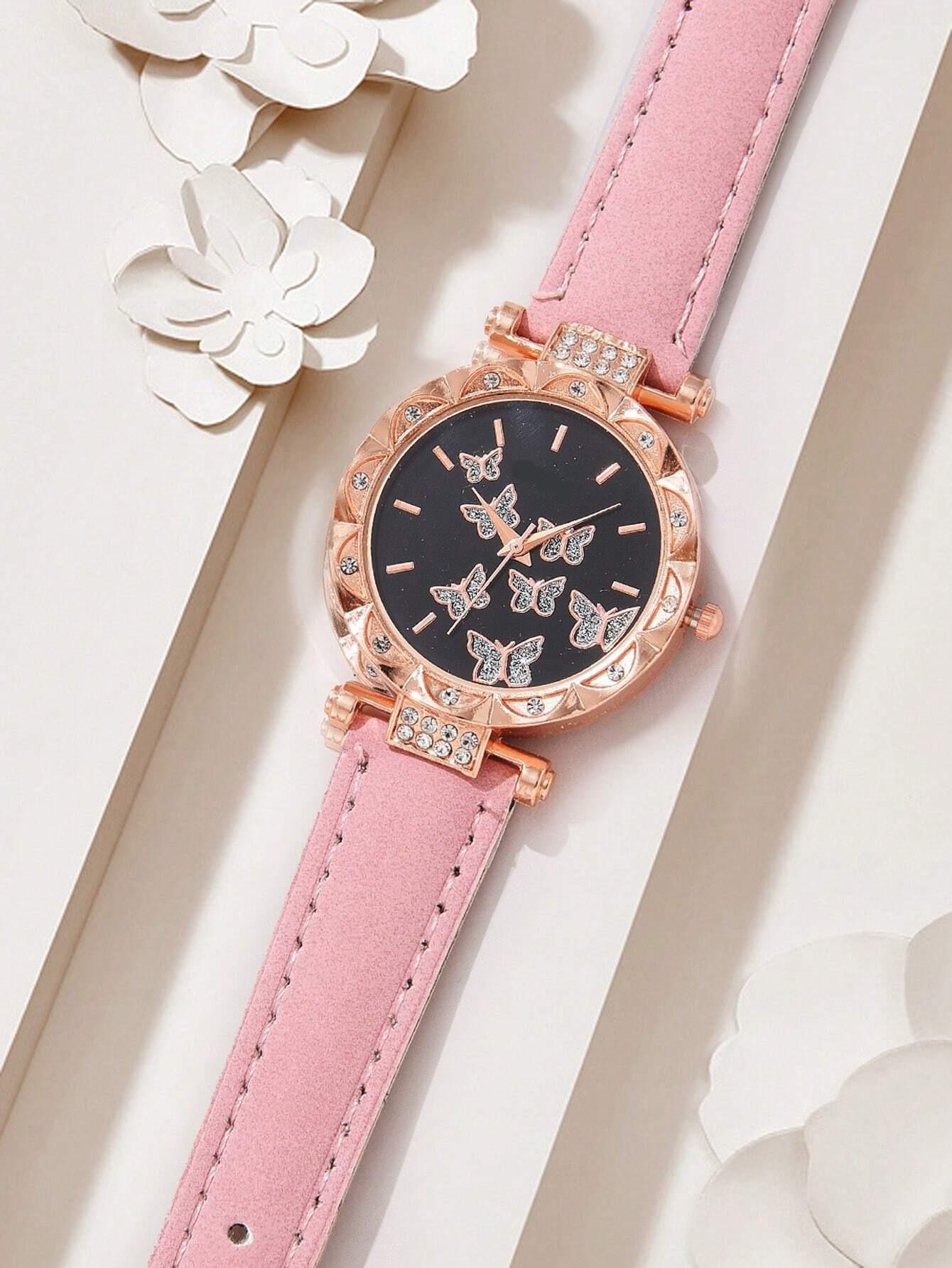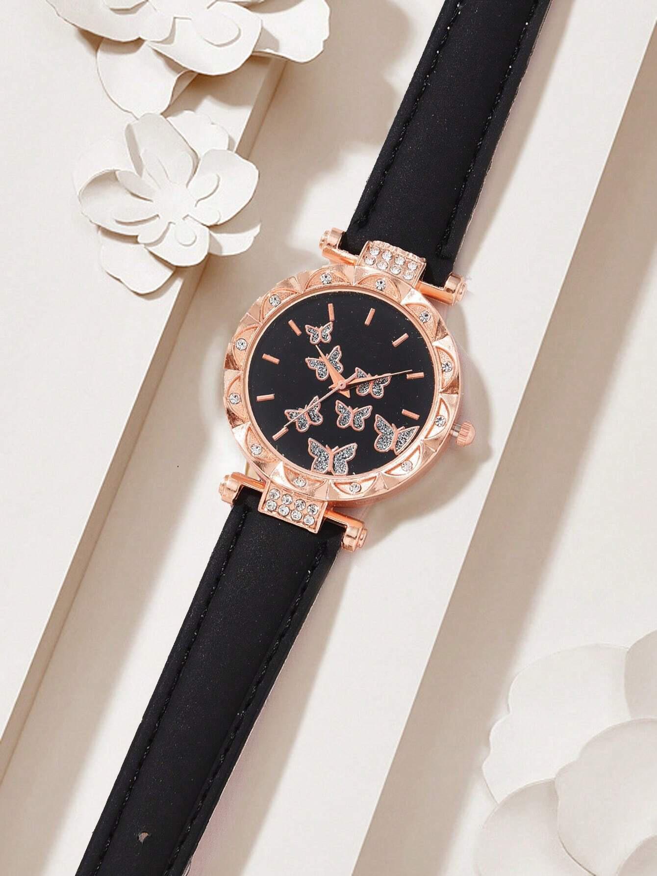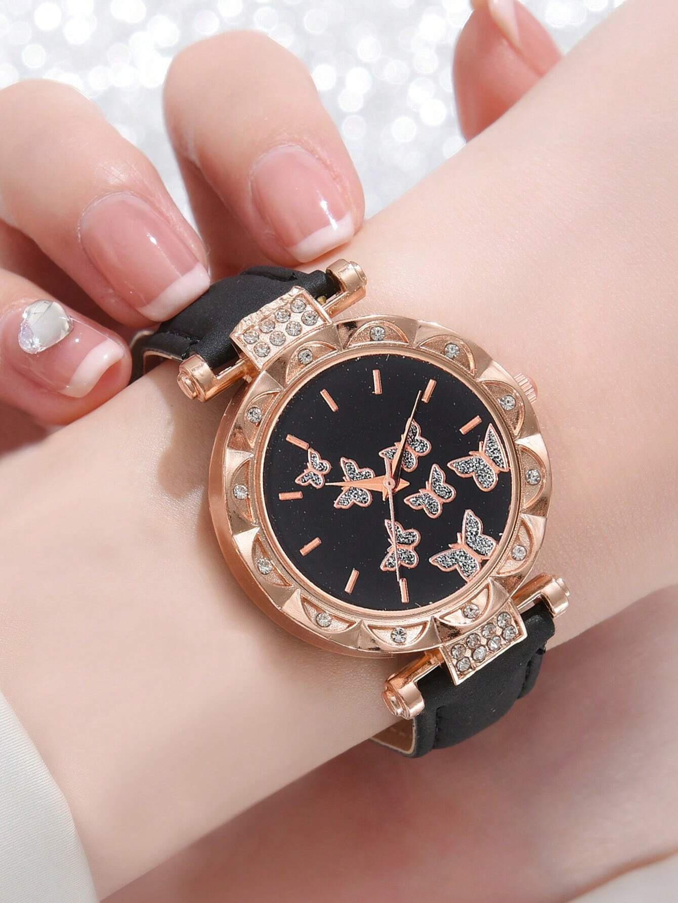 Venta Caliente Transfronteriza Familia Mariposa Moda Cuarzo Nuevo Reloj de Pulsera para Mujer Venta Directa de Fábrica 5 Piezas
