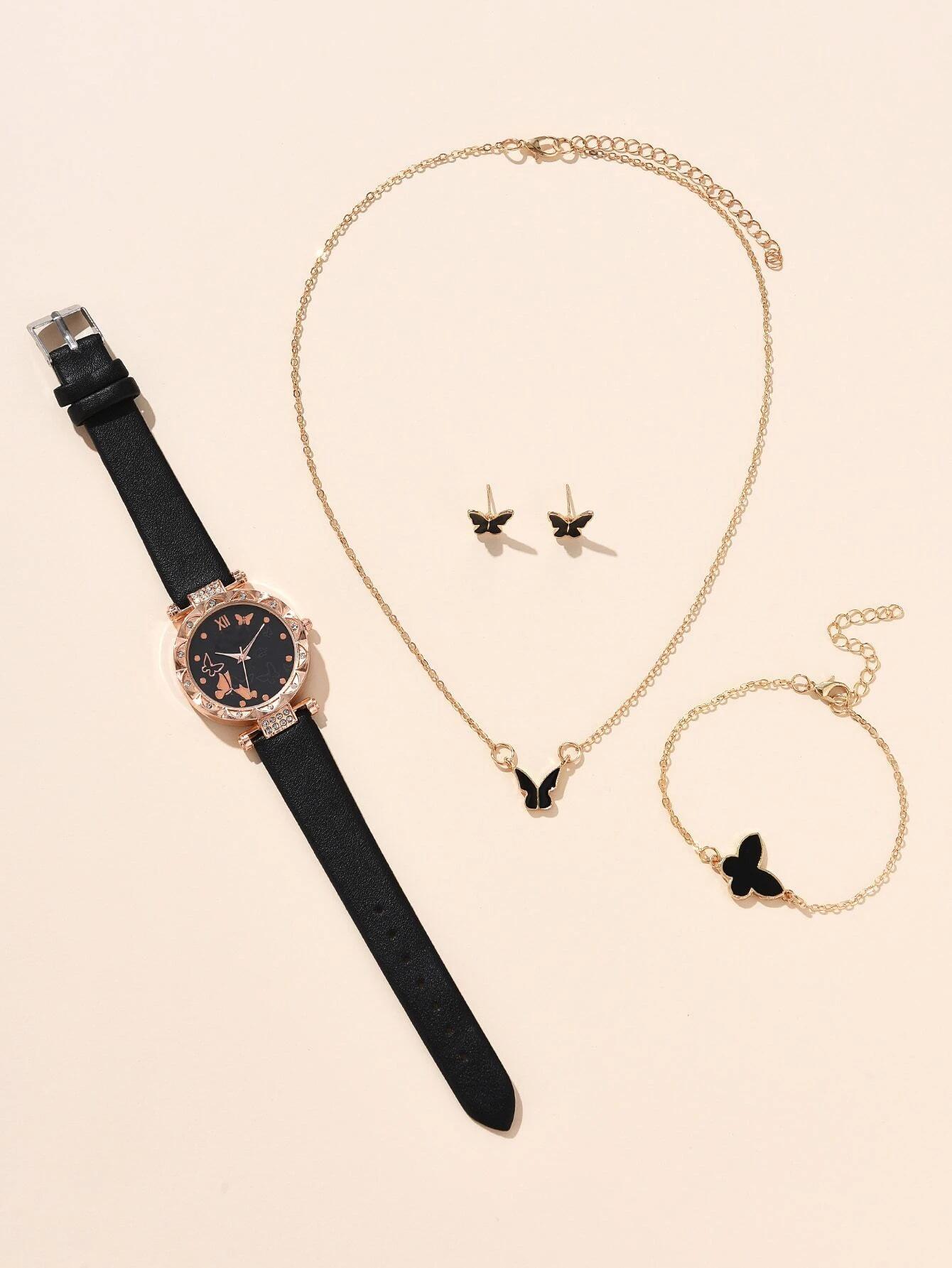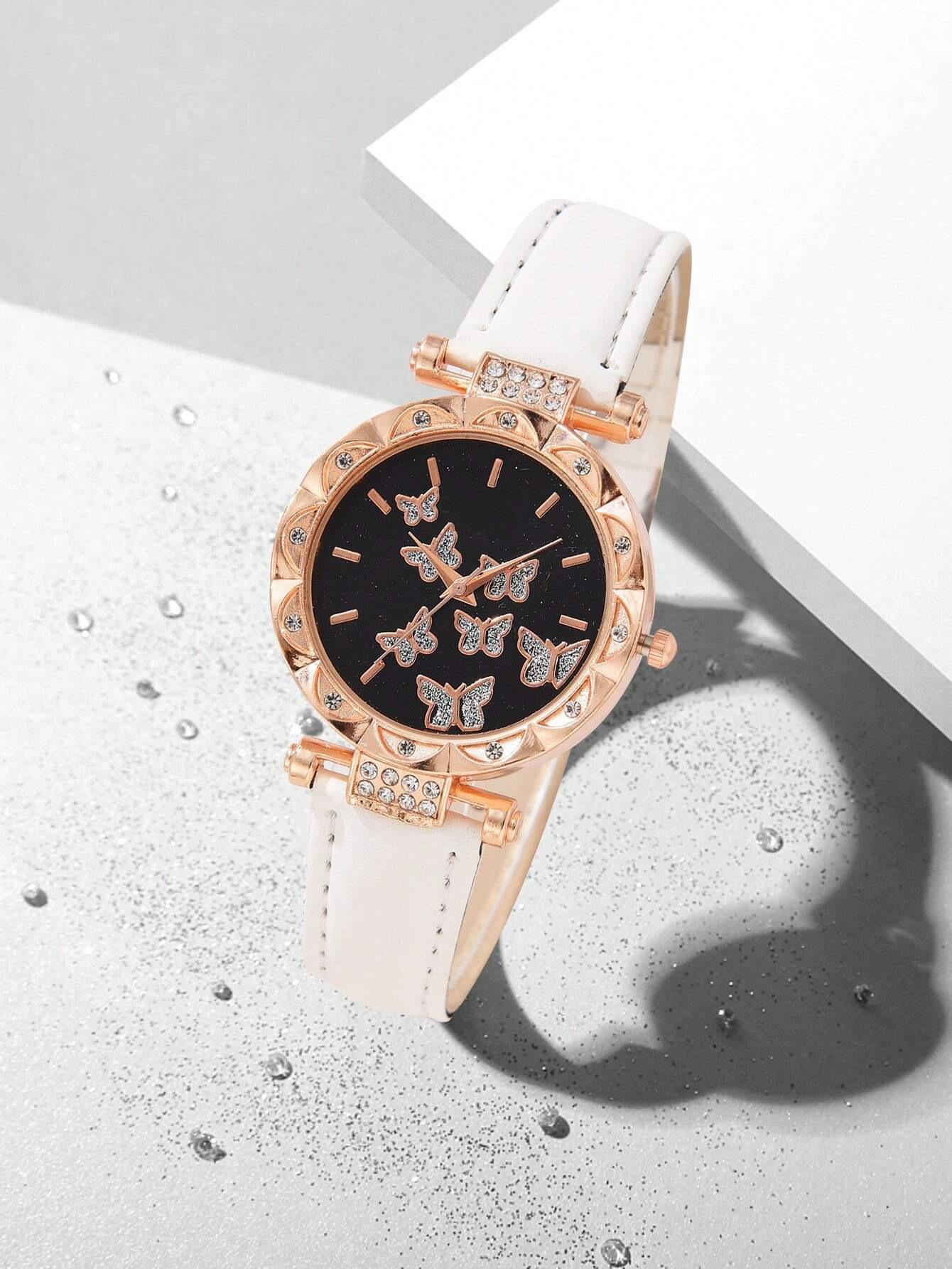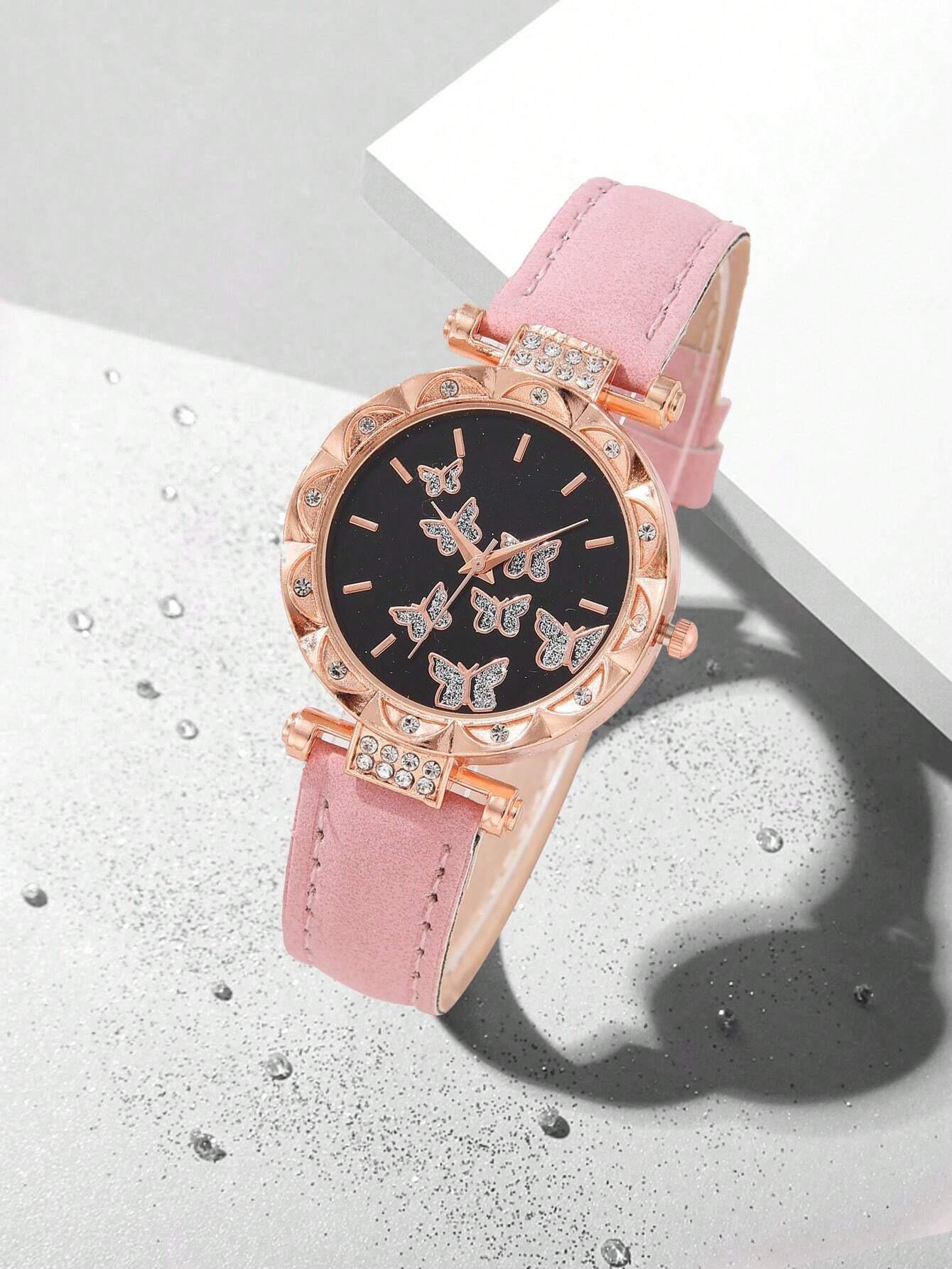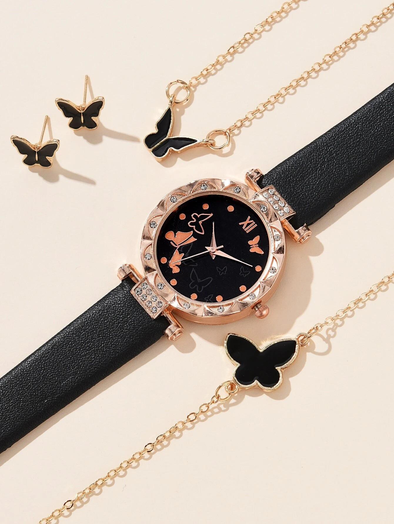 Venta Caliente Transfronteriza Familia Mariposa Moda Cuarzo Nuevo Reloj de Pulsera para Mujer Venta Directa de Fábrica 5 Piezas