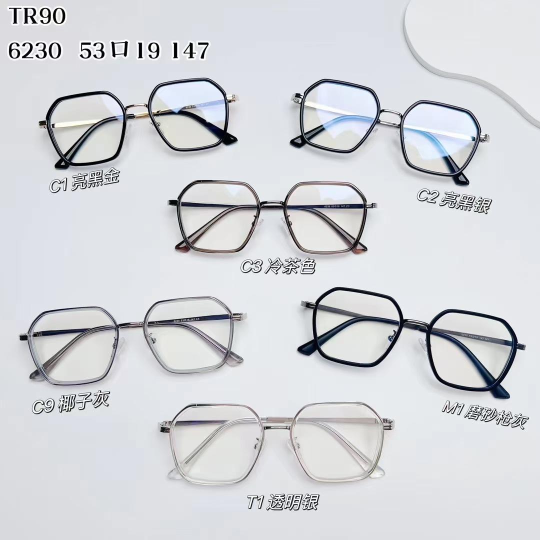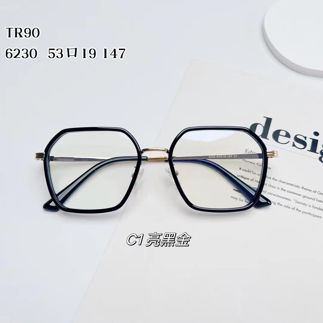 Armazón de plástico TR90 dorado estilo coreano estudiante moda liso para correr precio de fábrica transfronterizo Joker armazón de gafas 6230