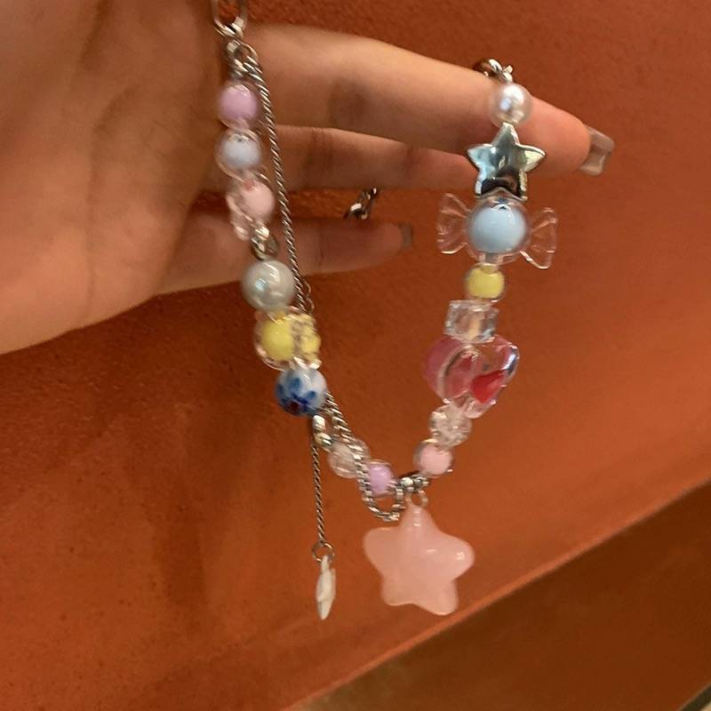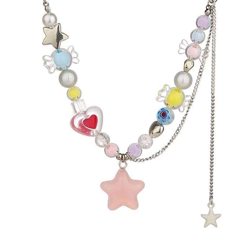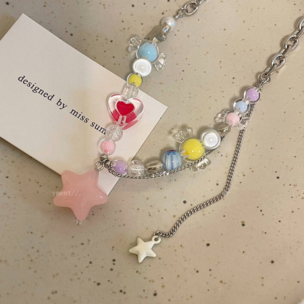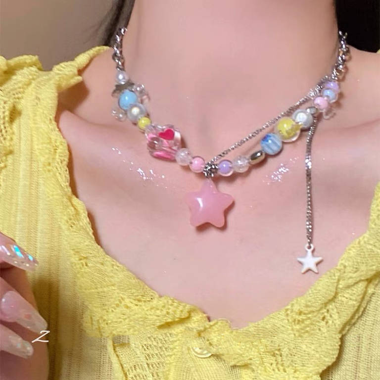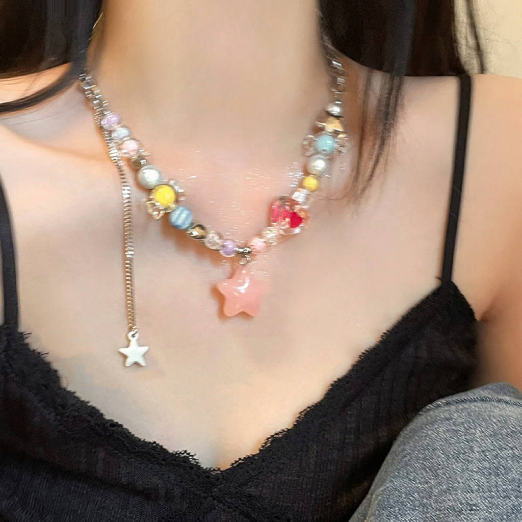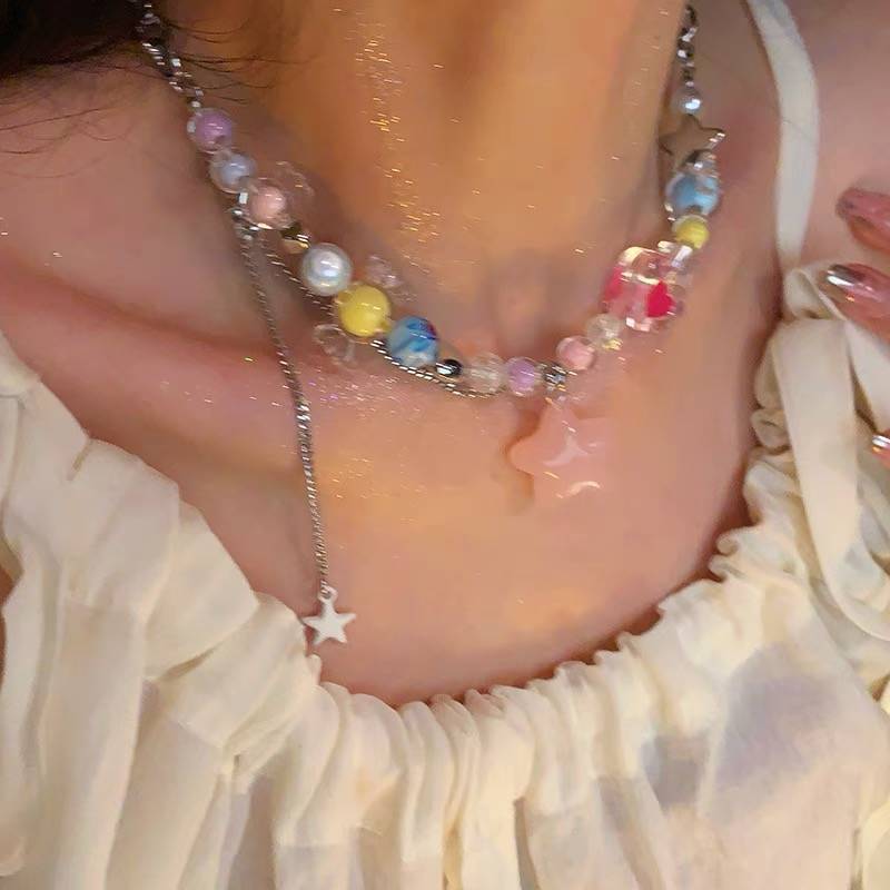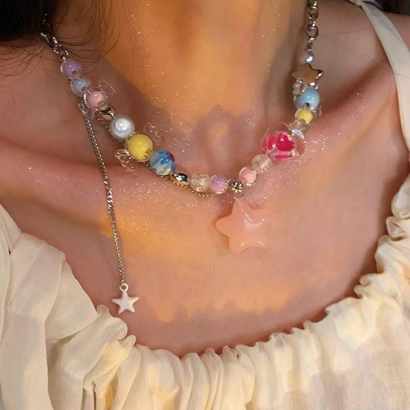 Collar de estrellas con cuentas de colores Y2K, dulce y fresco, de verano, para mujer, con diseño de nicho, accesorios, cadena de especias, cadena de clavícula