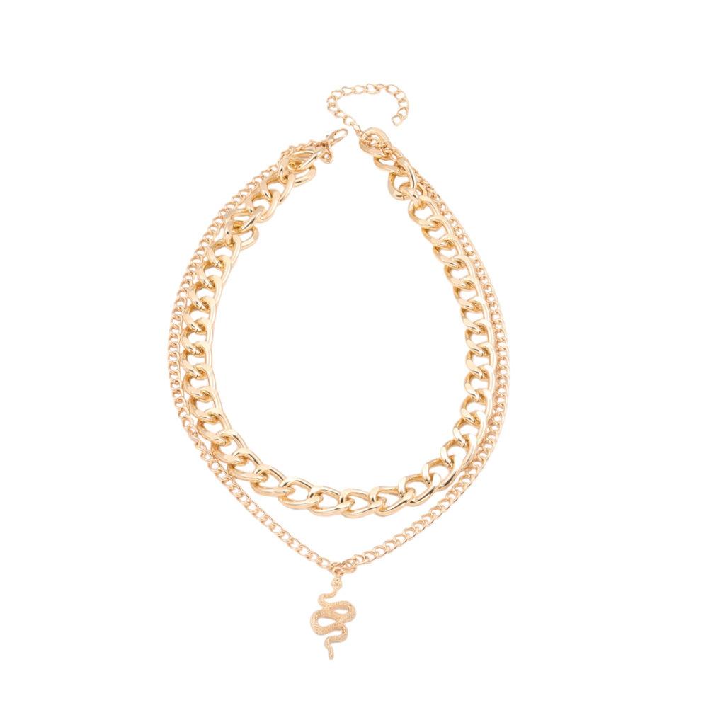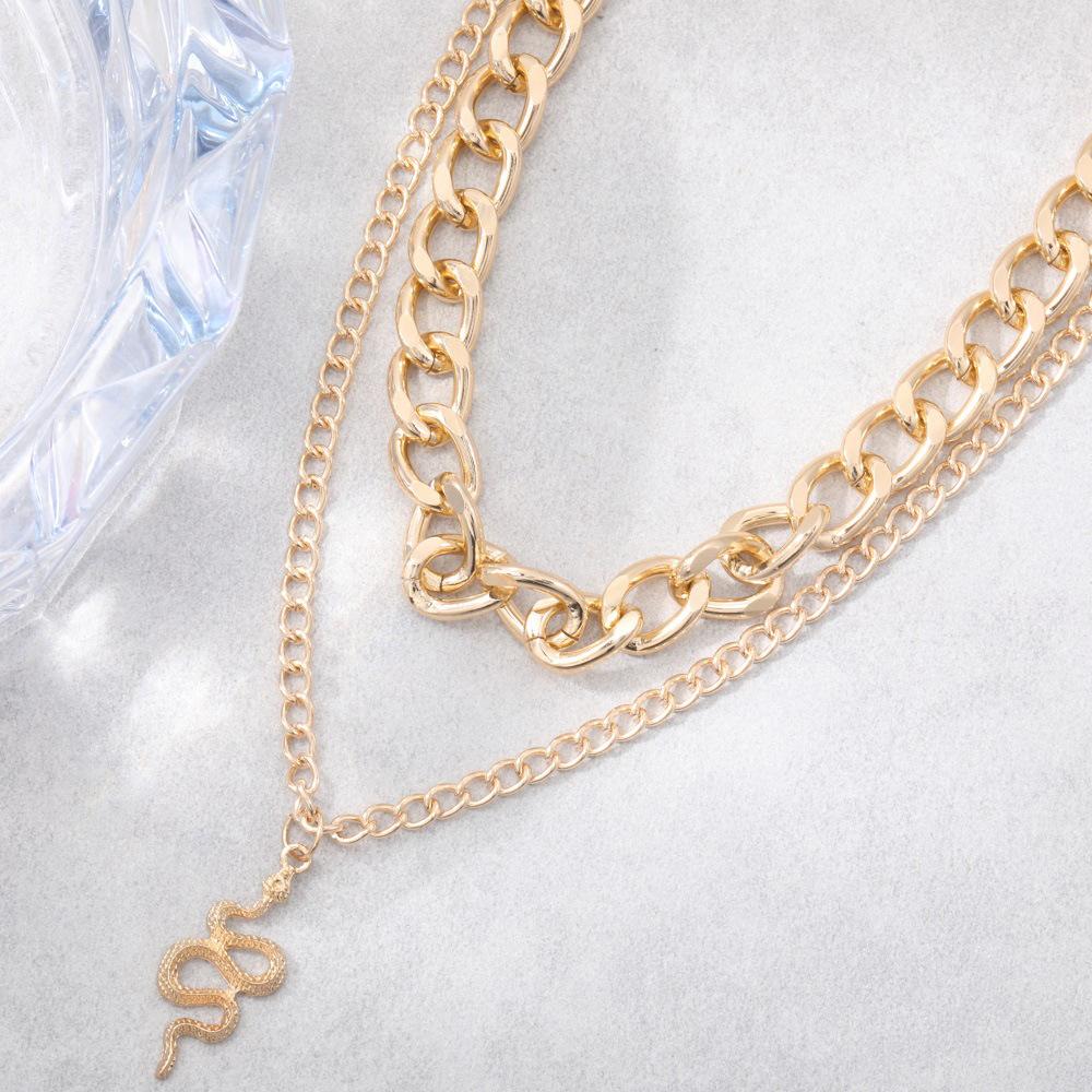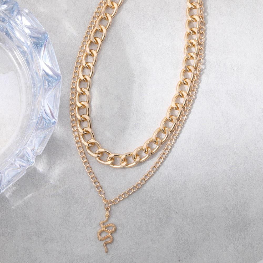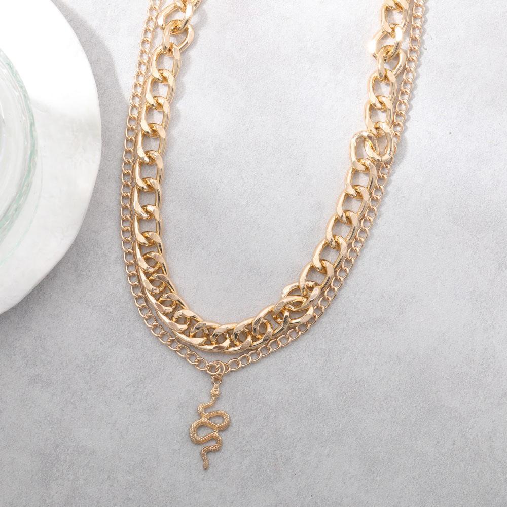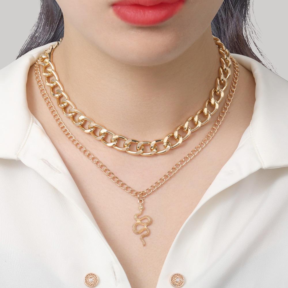 Collar con colgante de serpiente transfronterizo de Europa y Estados Unidos, con personalidad creativa, estilo punk, cadena gruesa de doble capa, cadena de clavícula para mujer