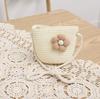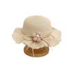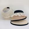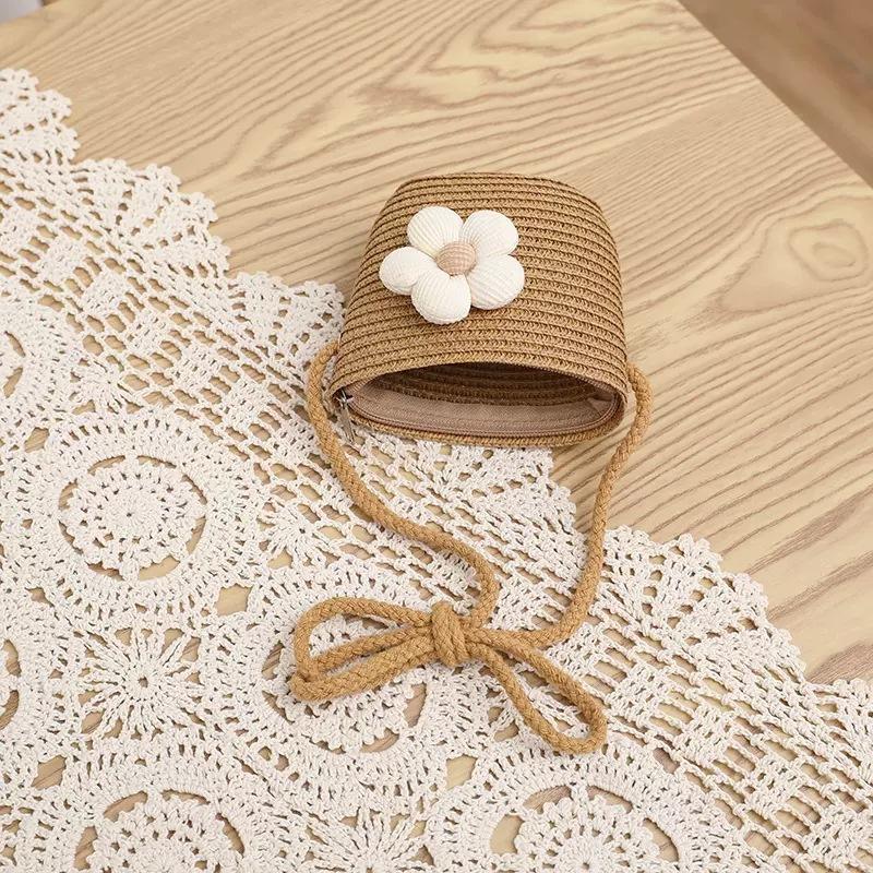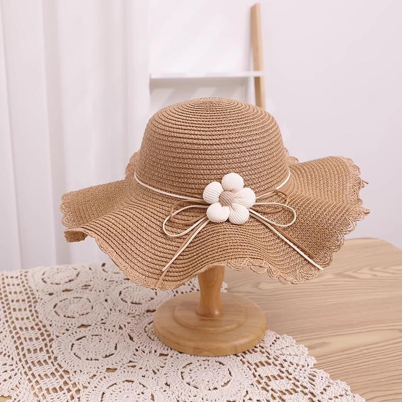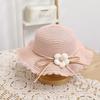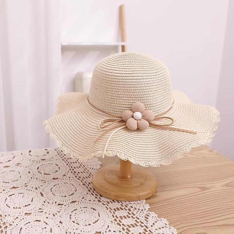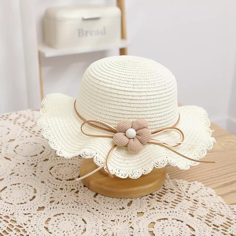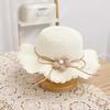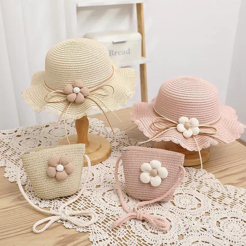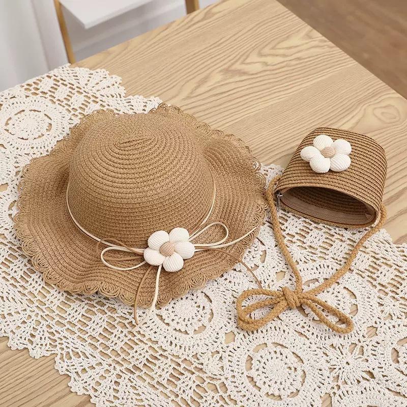 Sombrero de Paja de Verano para Niños Encaje de Onda Bolso de Dos Piezas Viaje al Aire Libre Flor Protector Solar Sombrero de Playa Sombrero de Paja para Padres e Hijos