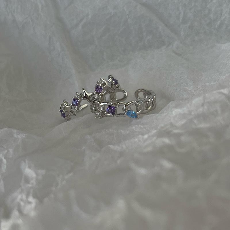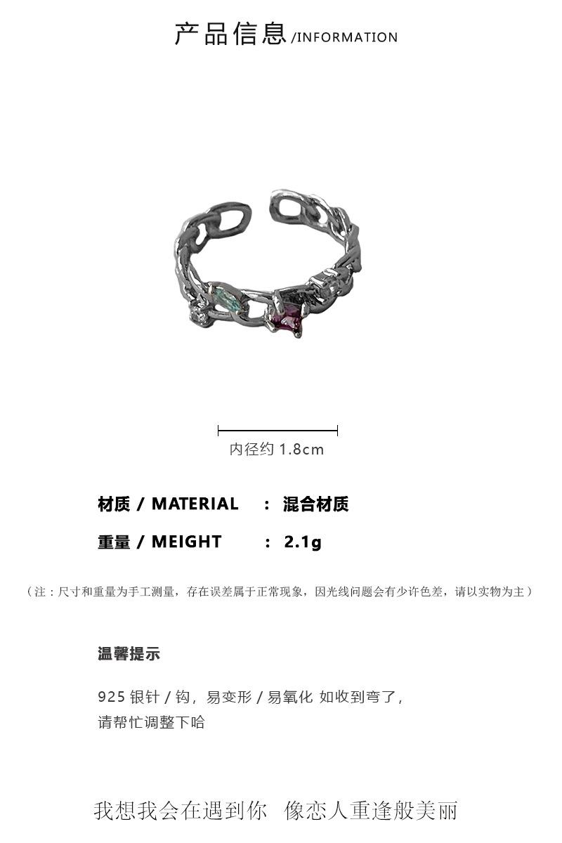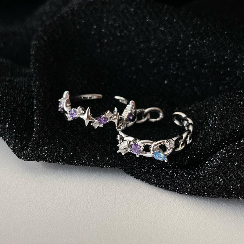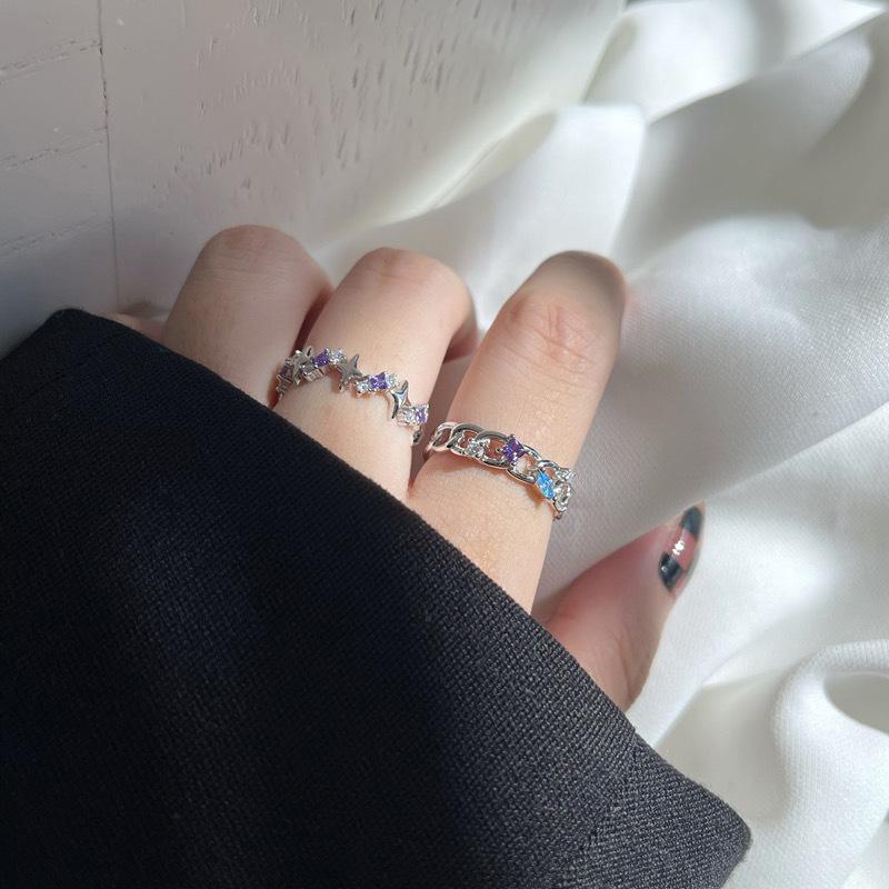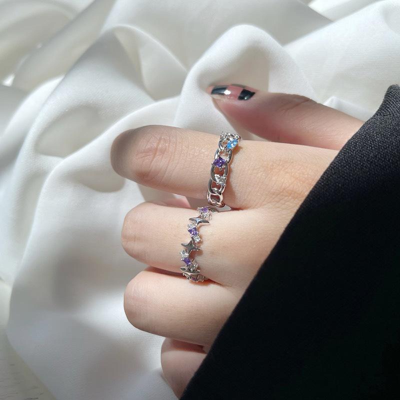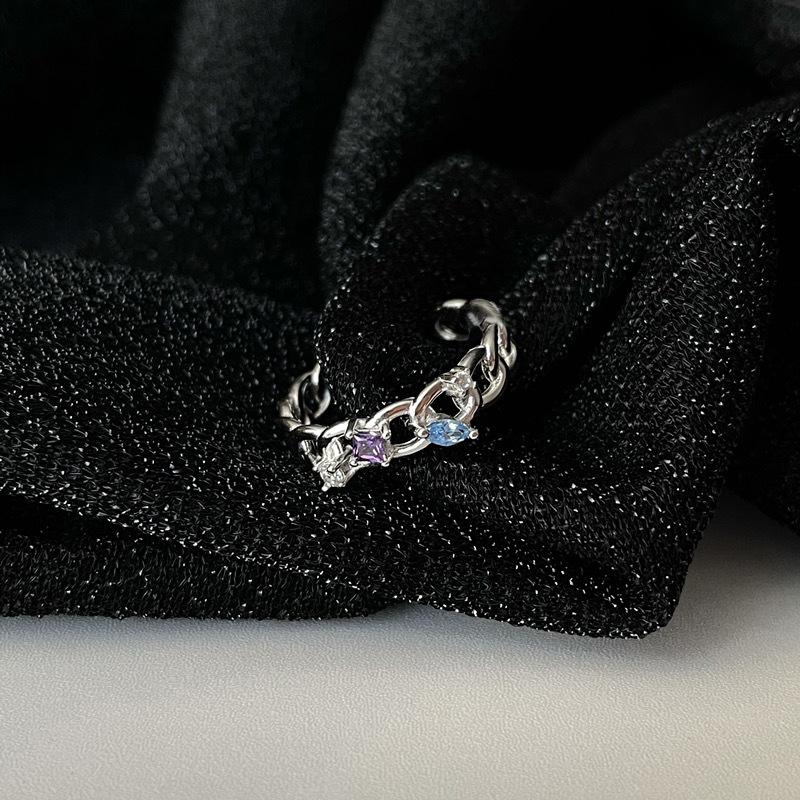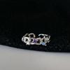 Anillo de pigmento plateado con circonitas abiertas para mujer, estilo frío, elegante, personalizado y de moda.