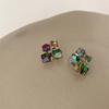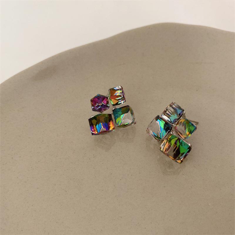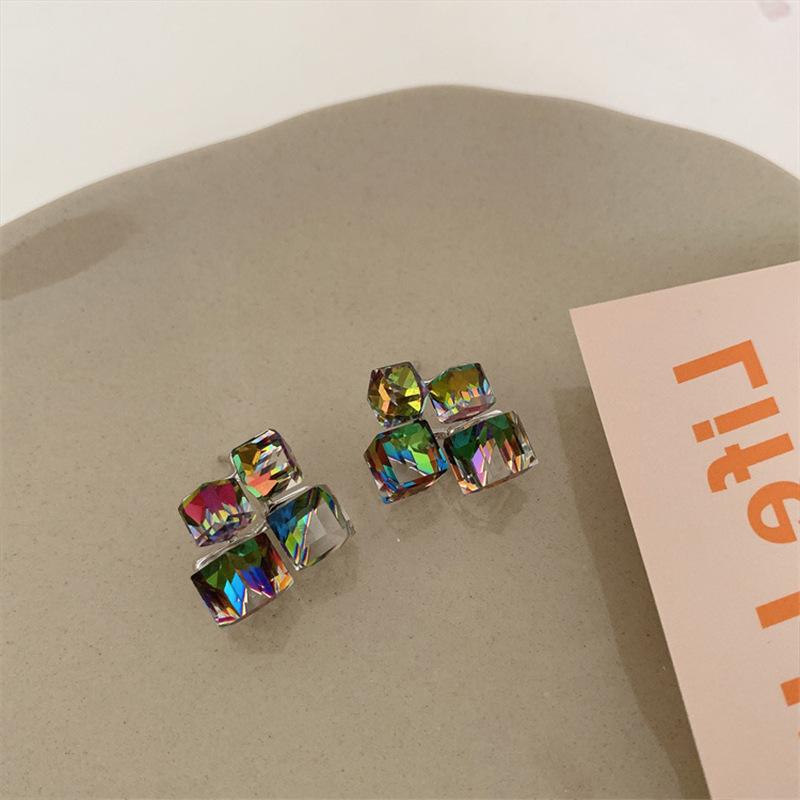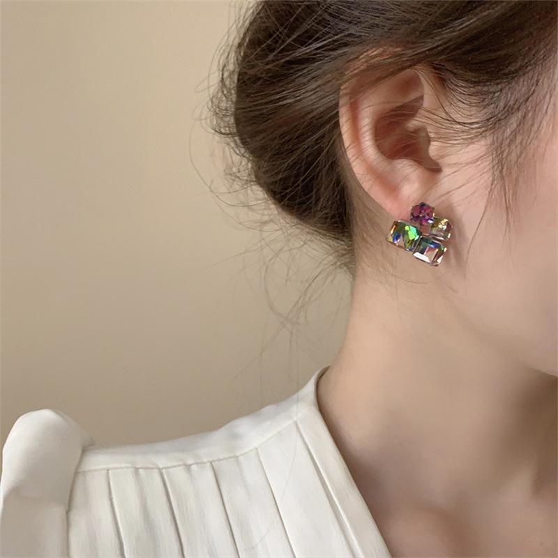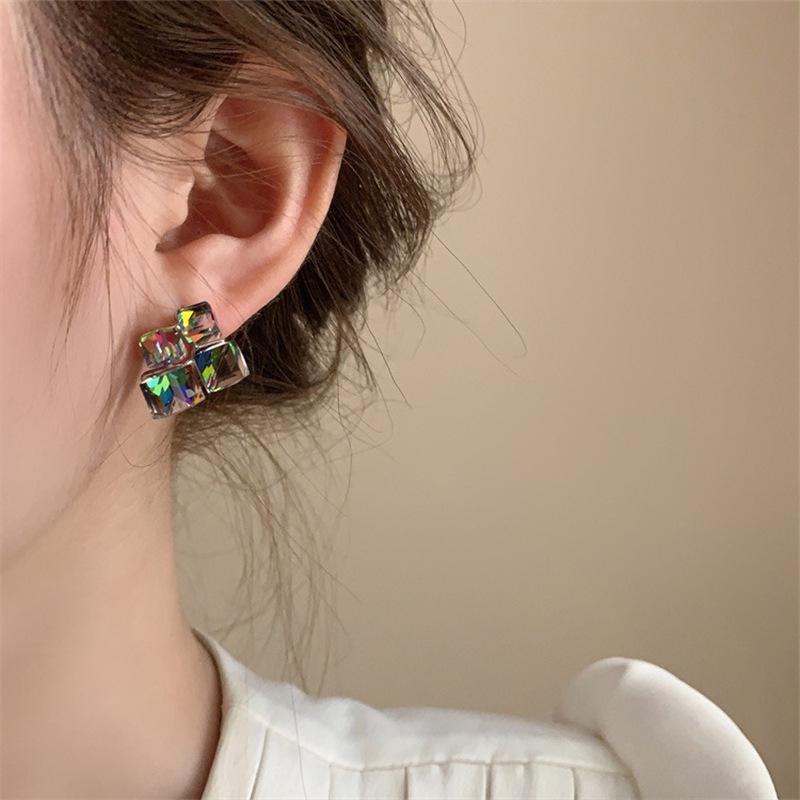 Pendientes de botón de cristal cuadrado geométrico para mujer, diseño de nicho de Corea del Sur, personalidad retro, pendientes de temperamento sencillos que combinan con todo.
