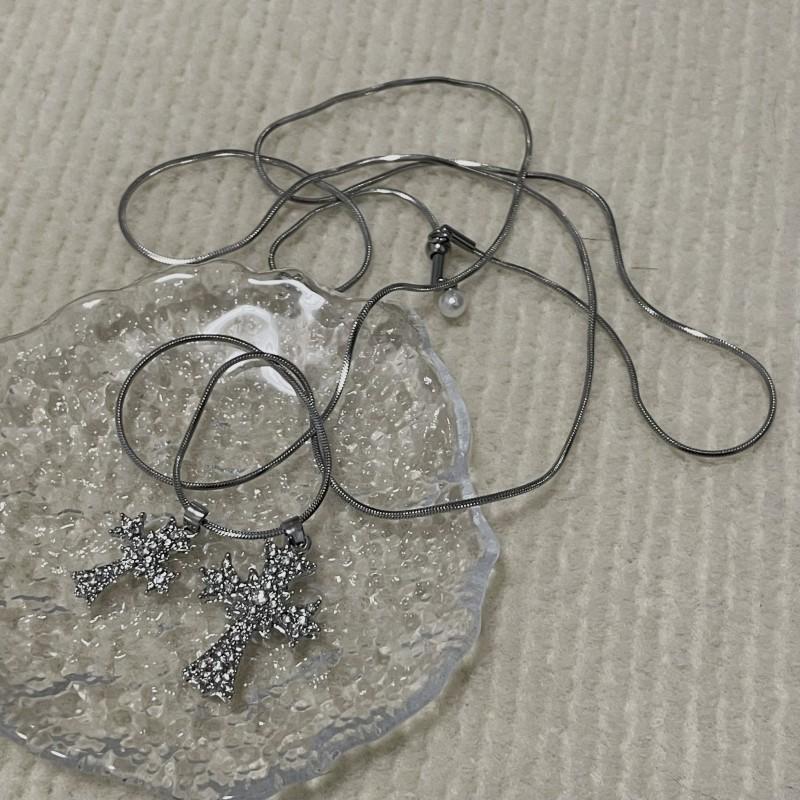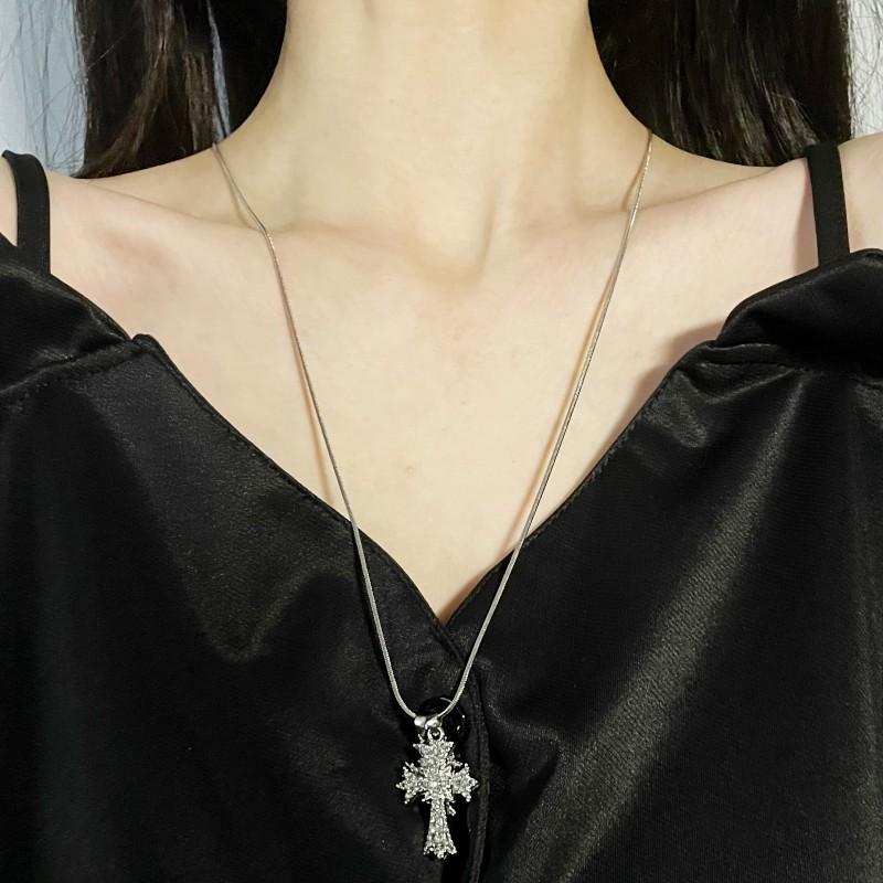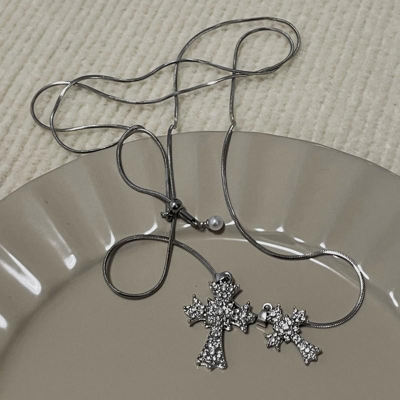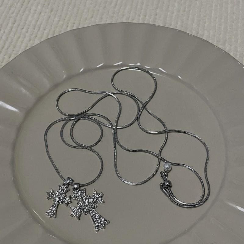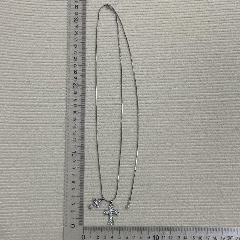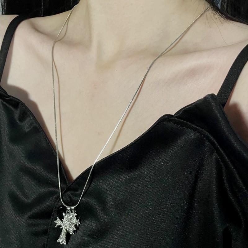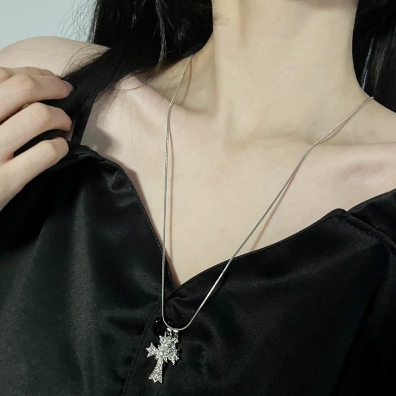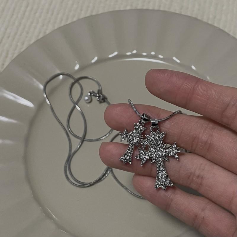 Collar elegante de estilo frío europeo y americano con doble cruz de diamantes de imitación y cadena de clavícula de lujo, moderno y de moda con diseño de nicho. Nuevo.