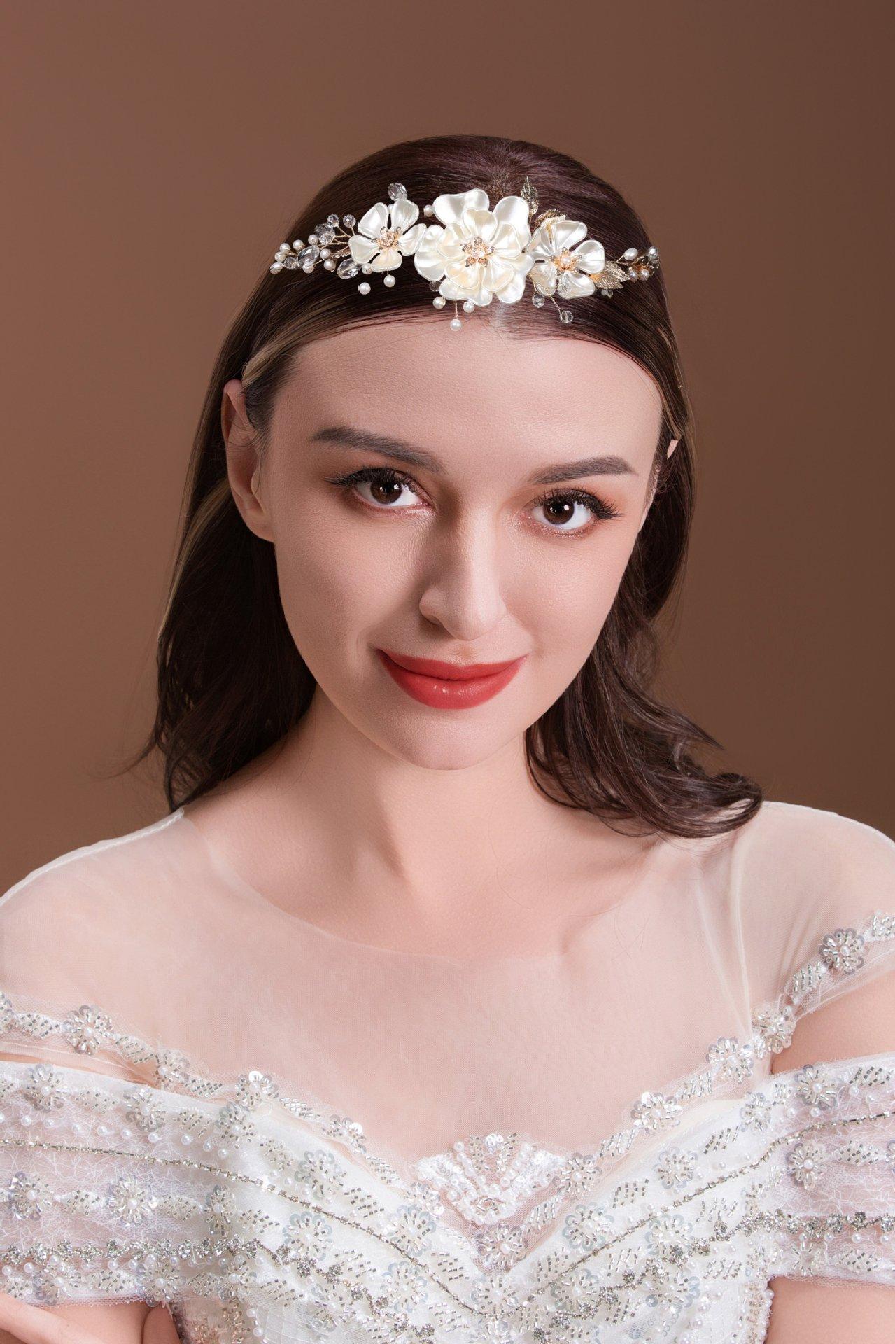 Diadema antigua de moda tejida a mano con flores de plástico y cristales de perlas, guirnalda para fotos de boda, tocado al por mayor