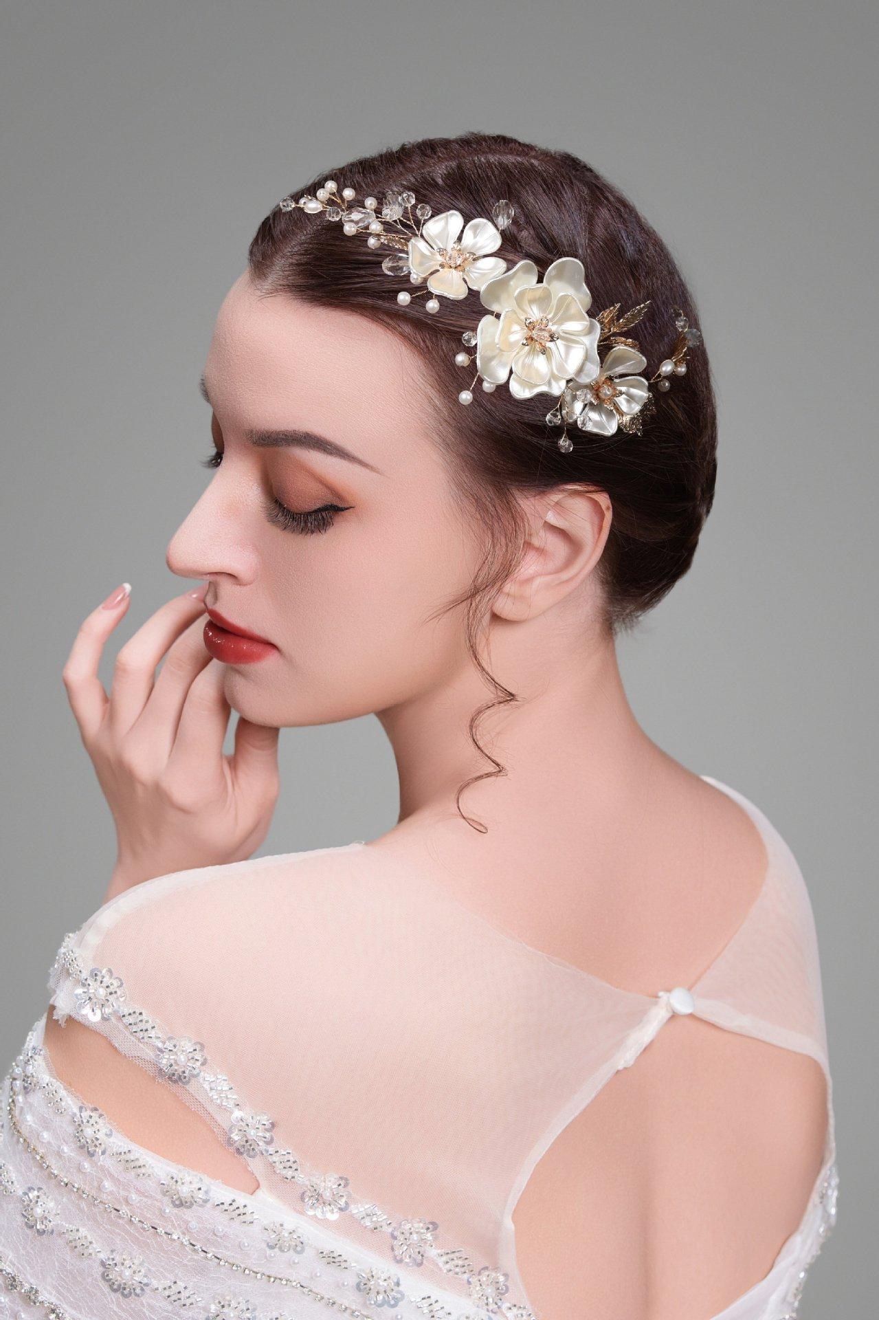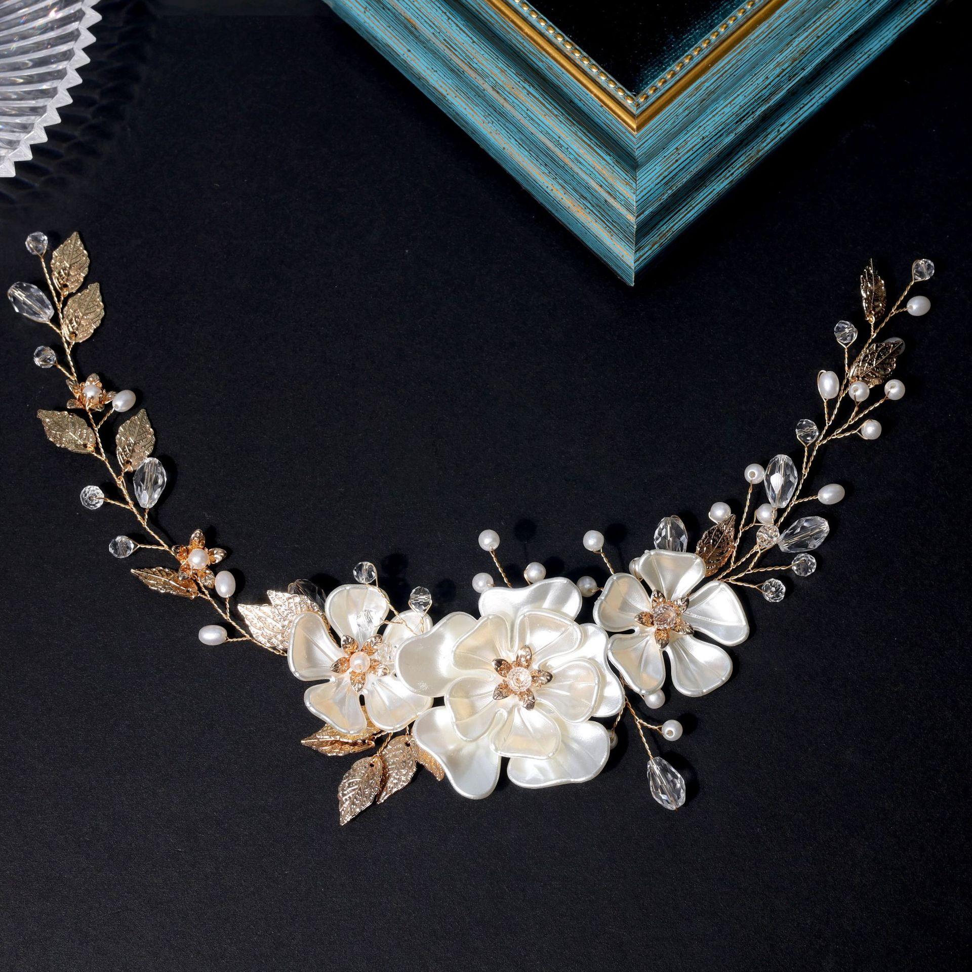 Horquillas de bosque hechas a mano para mujer, estilo retro, con flores doradas, para vestido de novia, horquillas para el pelo Xiuhe, venta al por mayor