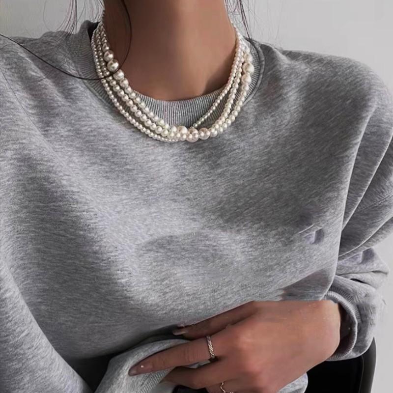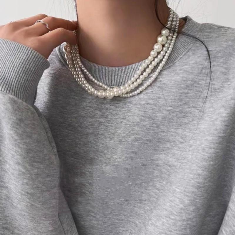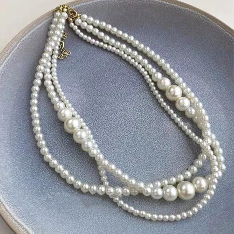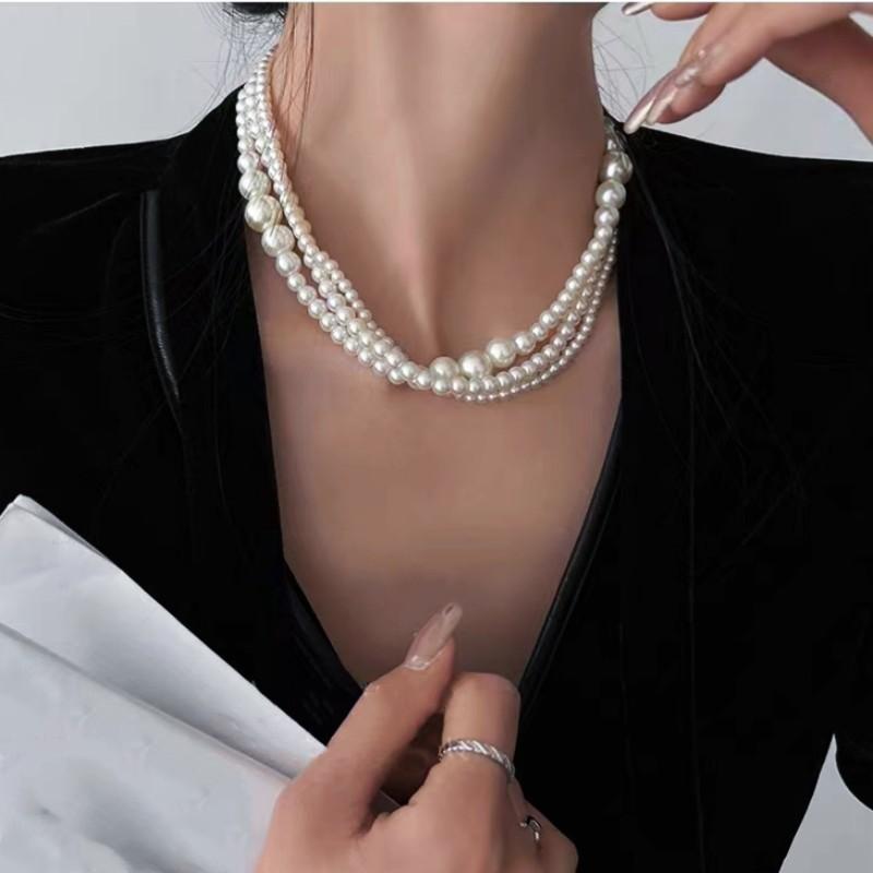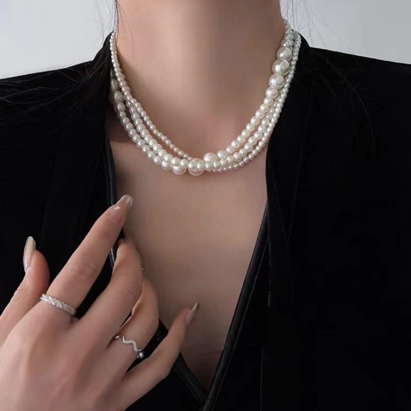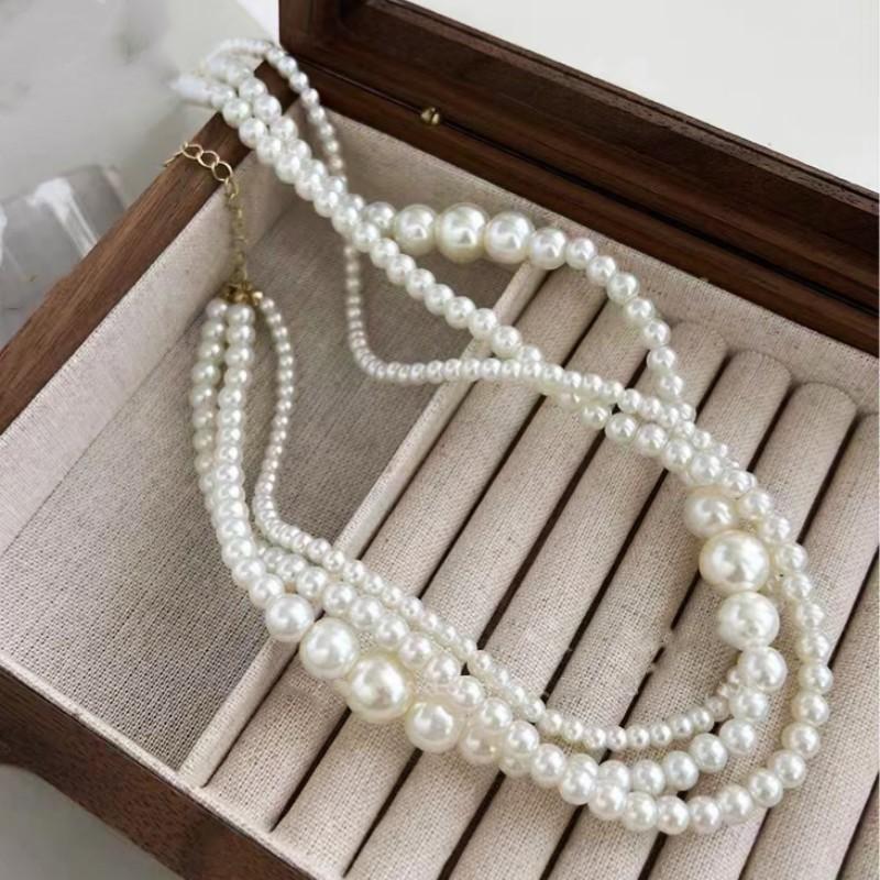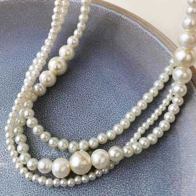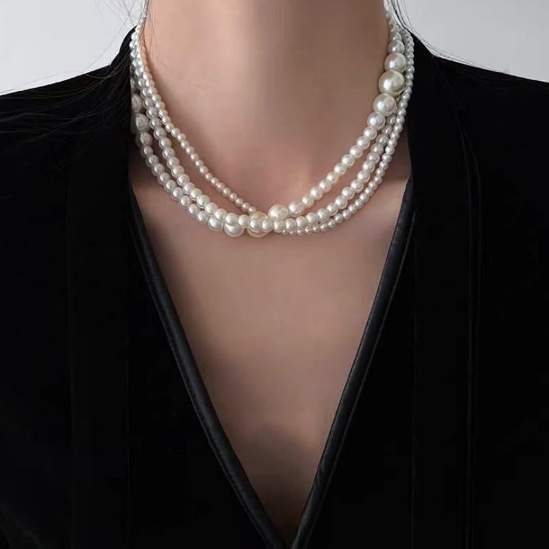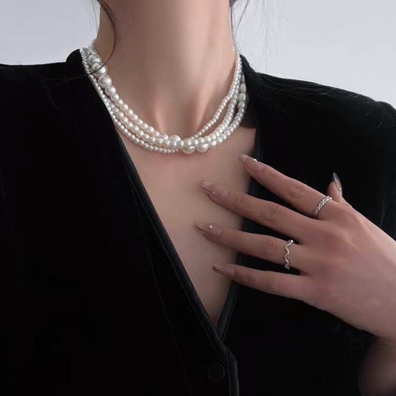 Cadena para Clavícula Redonda Retro Francesa de Perla Imitación Multicapa Moda Lujo Ligero Sencilla Dama Collar Elegante