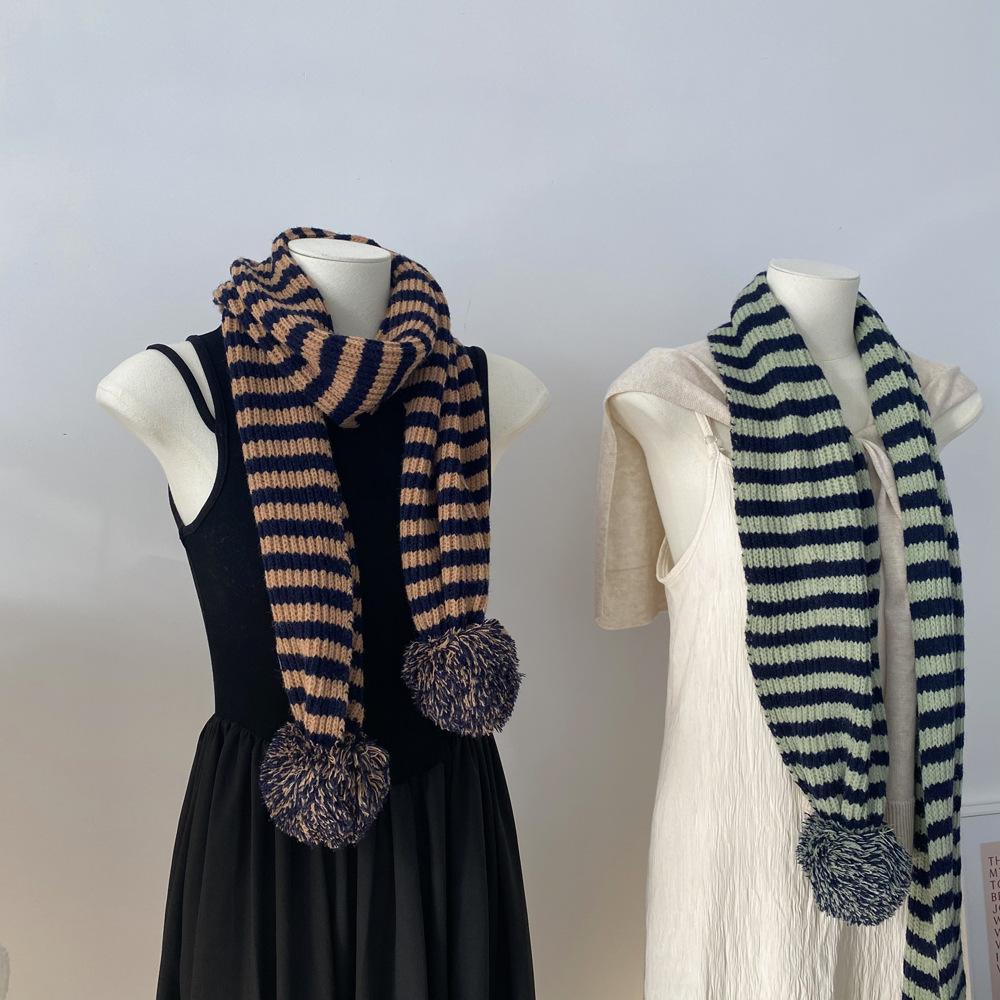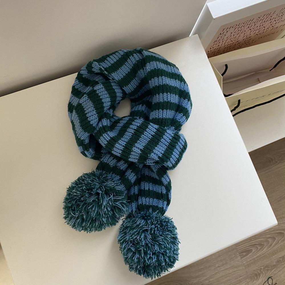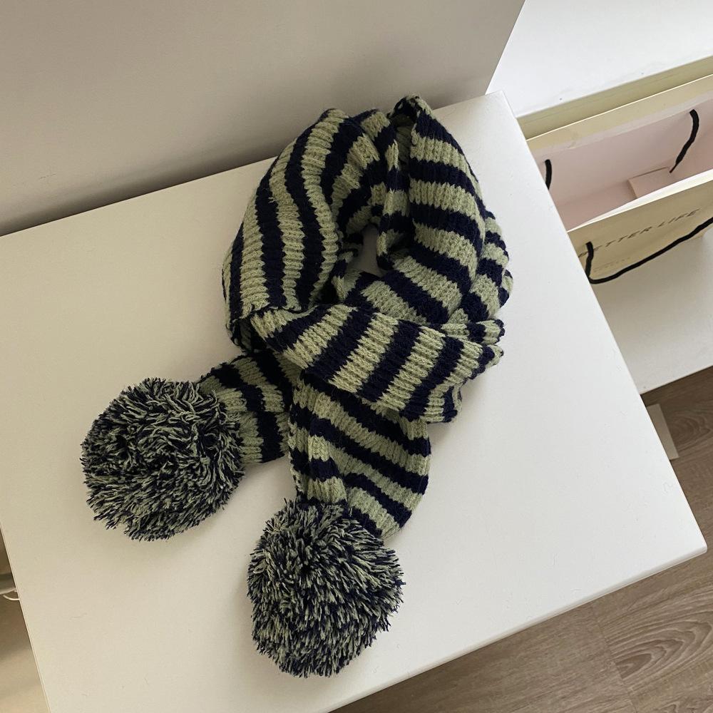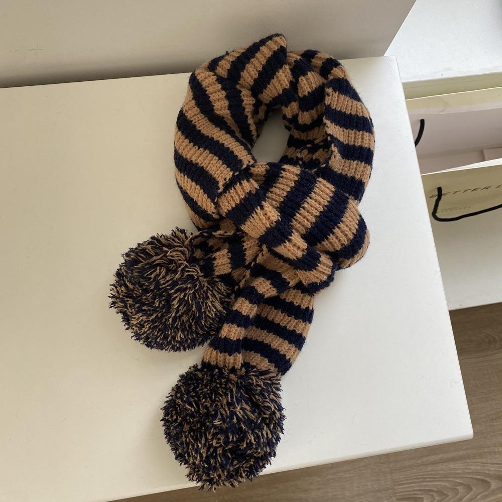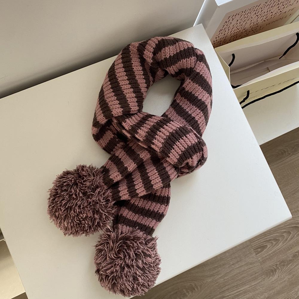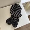 Bufanda pequeña de rayas de abeja, decoración de bola de pompón linda, variedad de uso, invierno, comodín, estudiante, tejida, cálida para el cuello, femenina