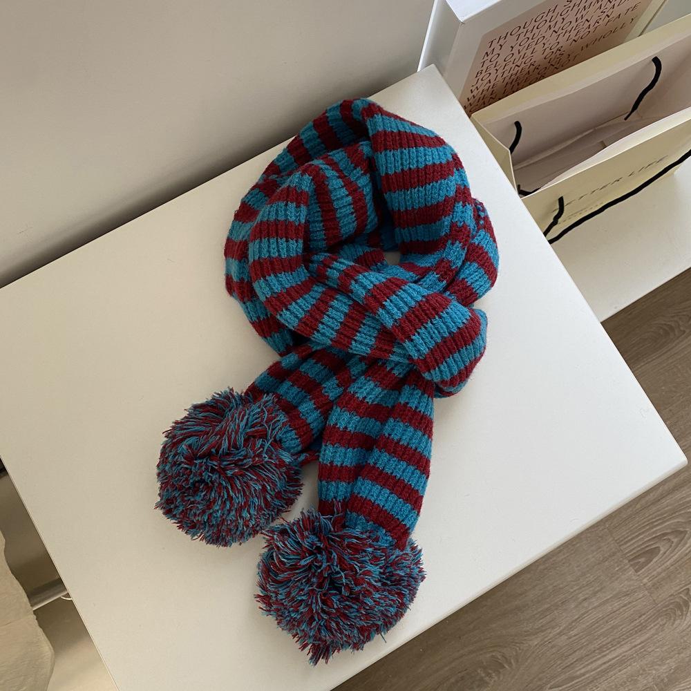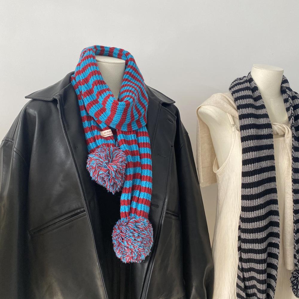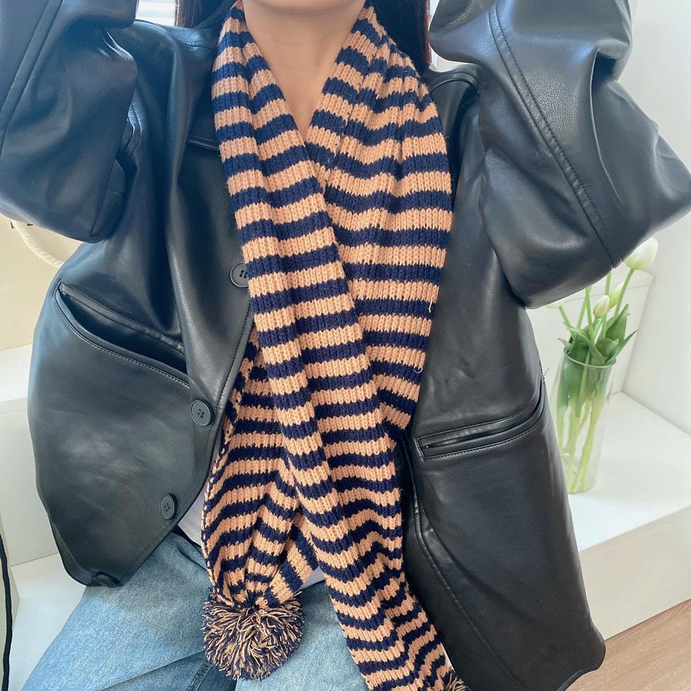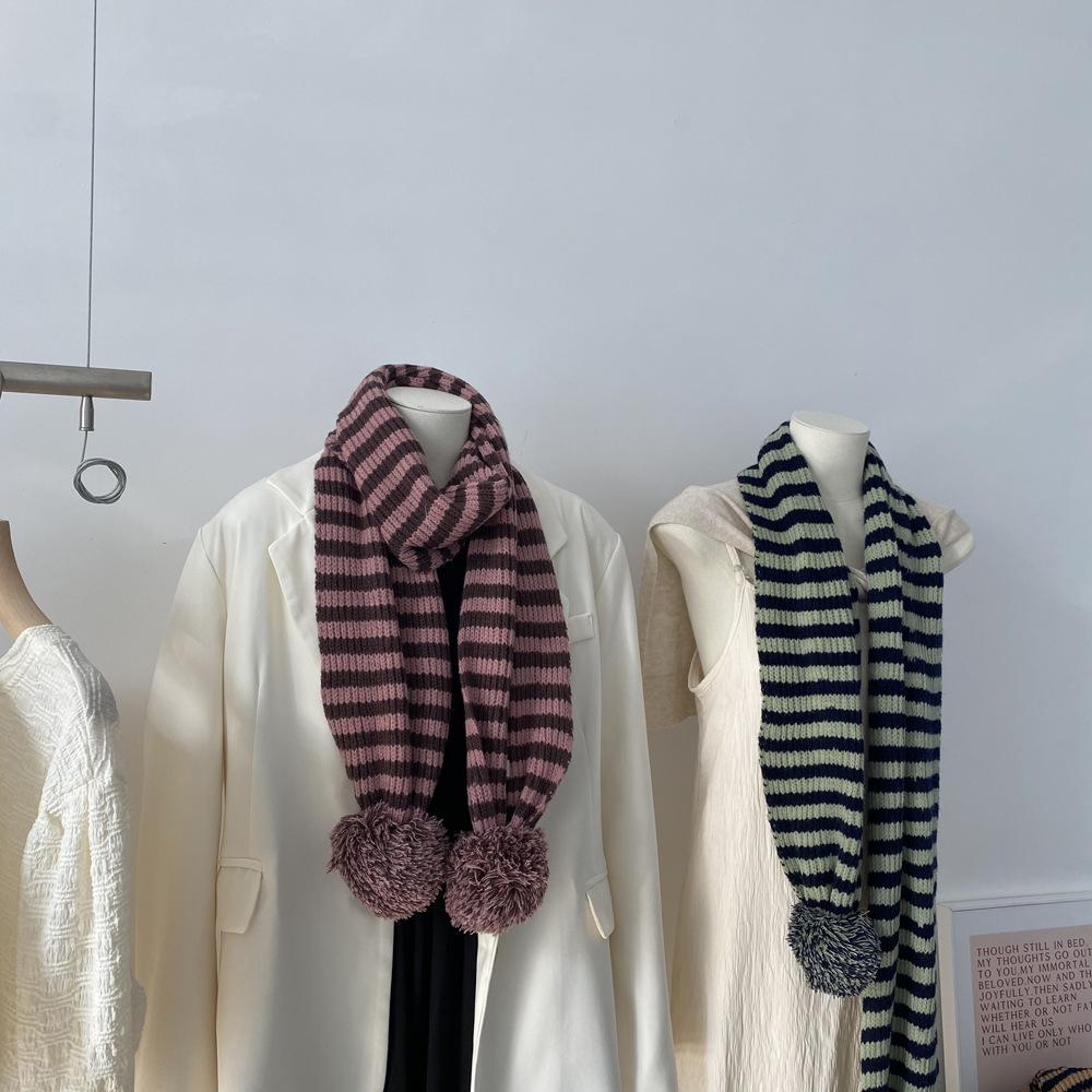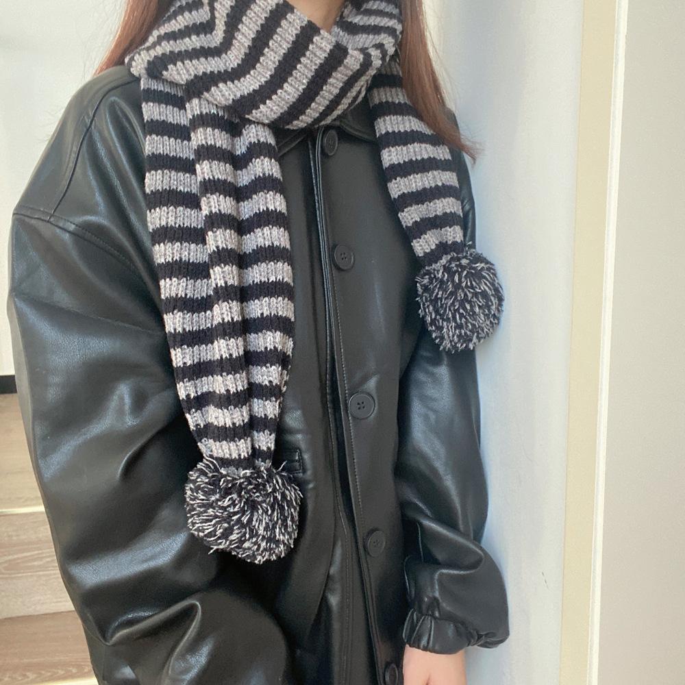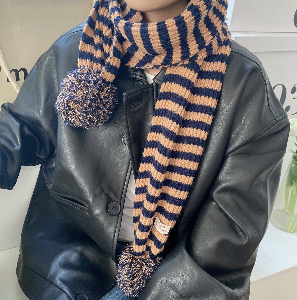 Bufanda pequeña de rayas de abeja, decoración de bola de pompón linda, variedad de uso, invierno, comodín, estudiante, tejida, cálida para el cuello, femenina