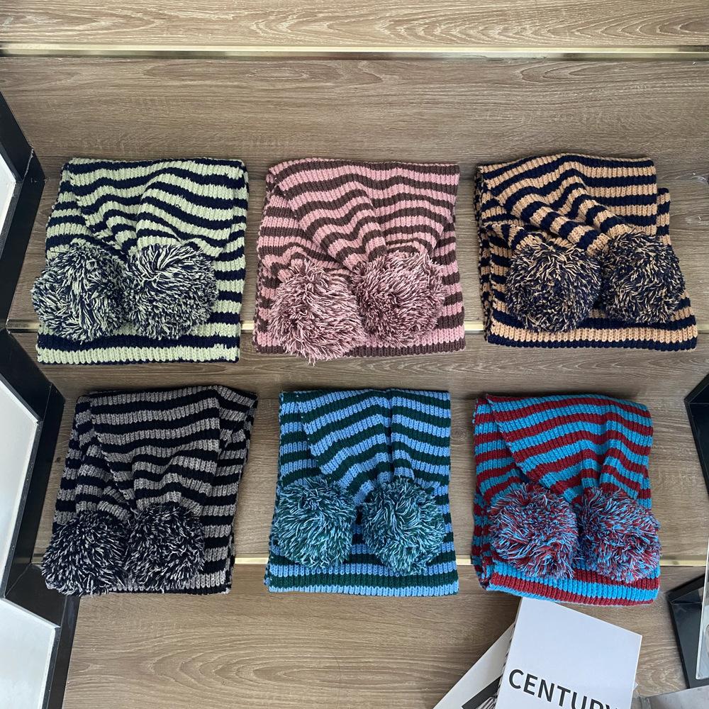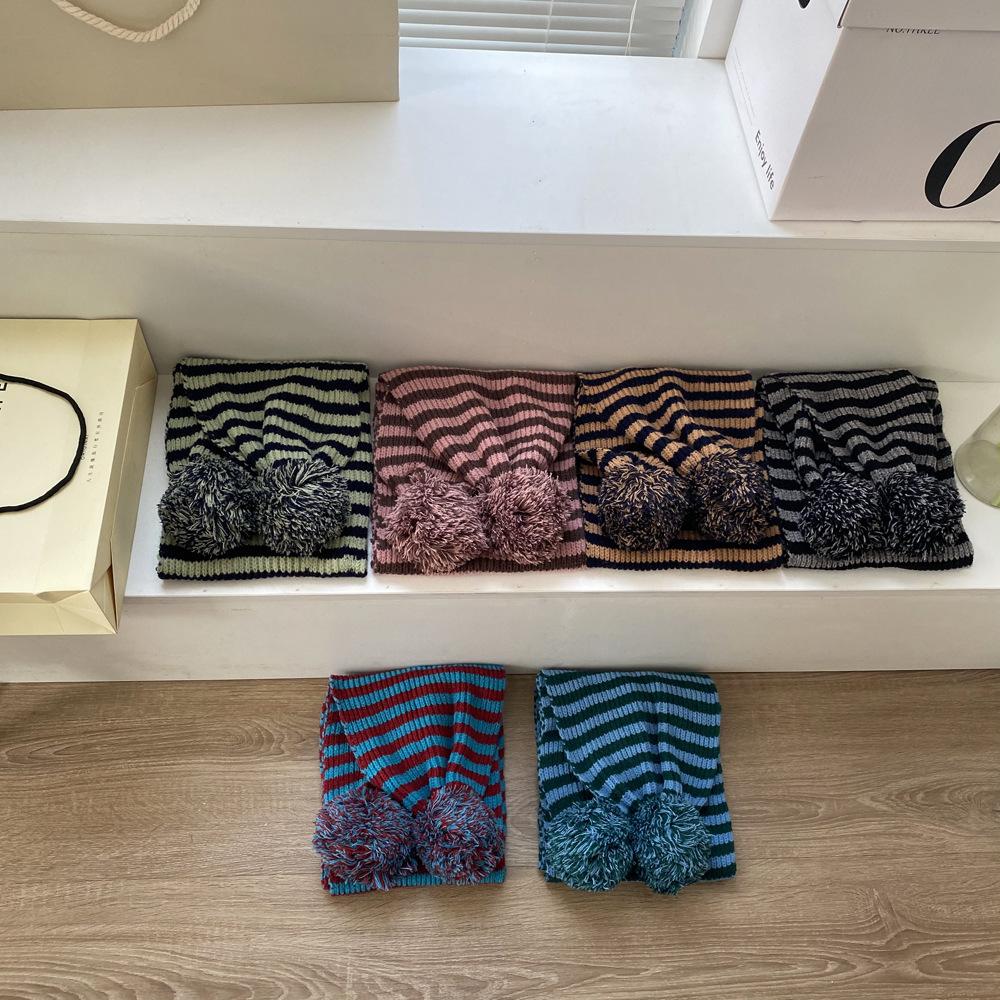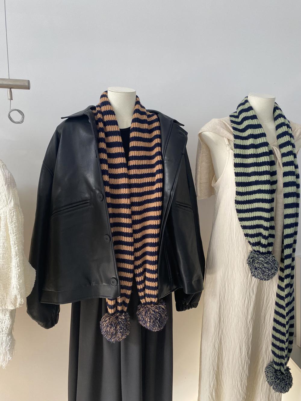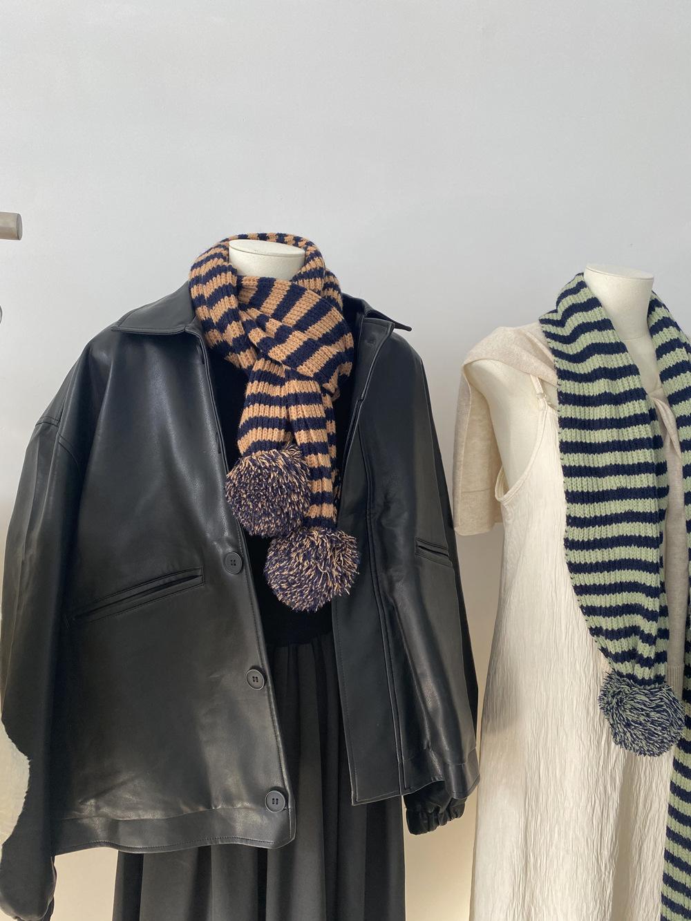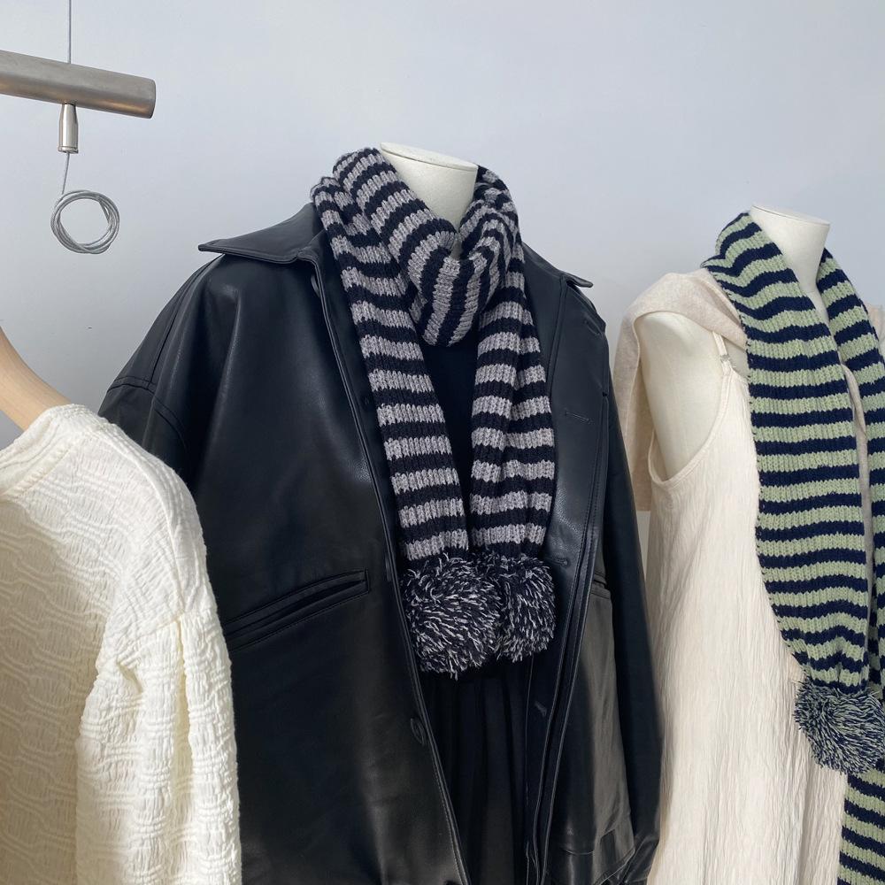 Bufanda pequeña de rayas de abeja, decoración de bola de pompón linda, variedad de uso, invierno, comodín, estudiante, tejida, cálida para el cuello, femenina